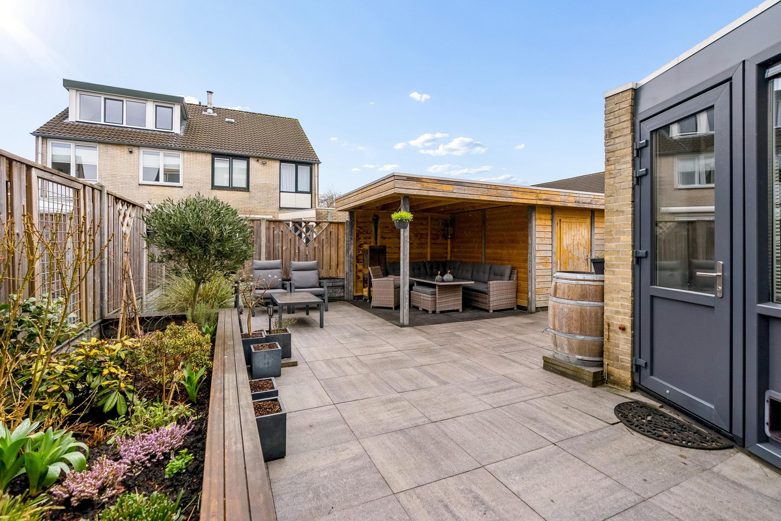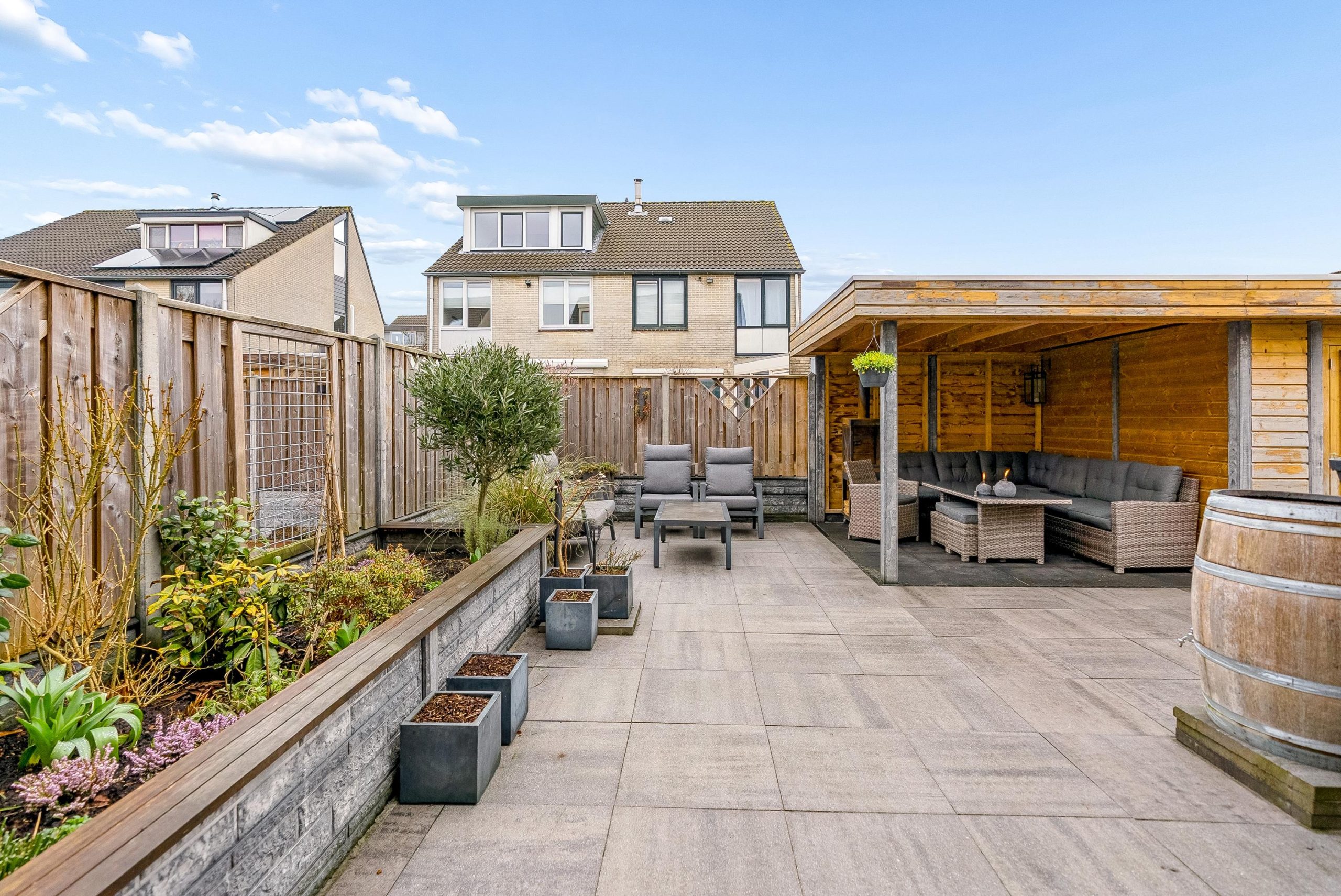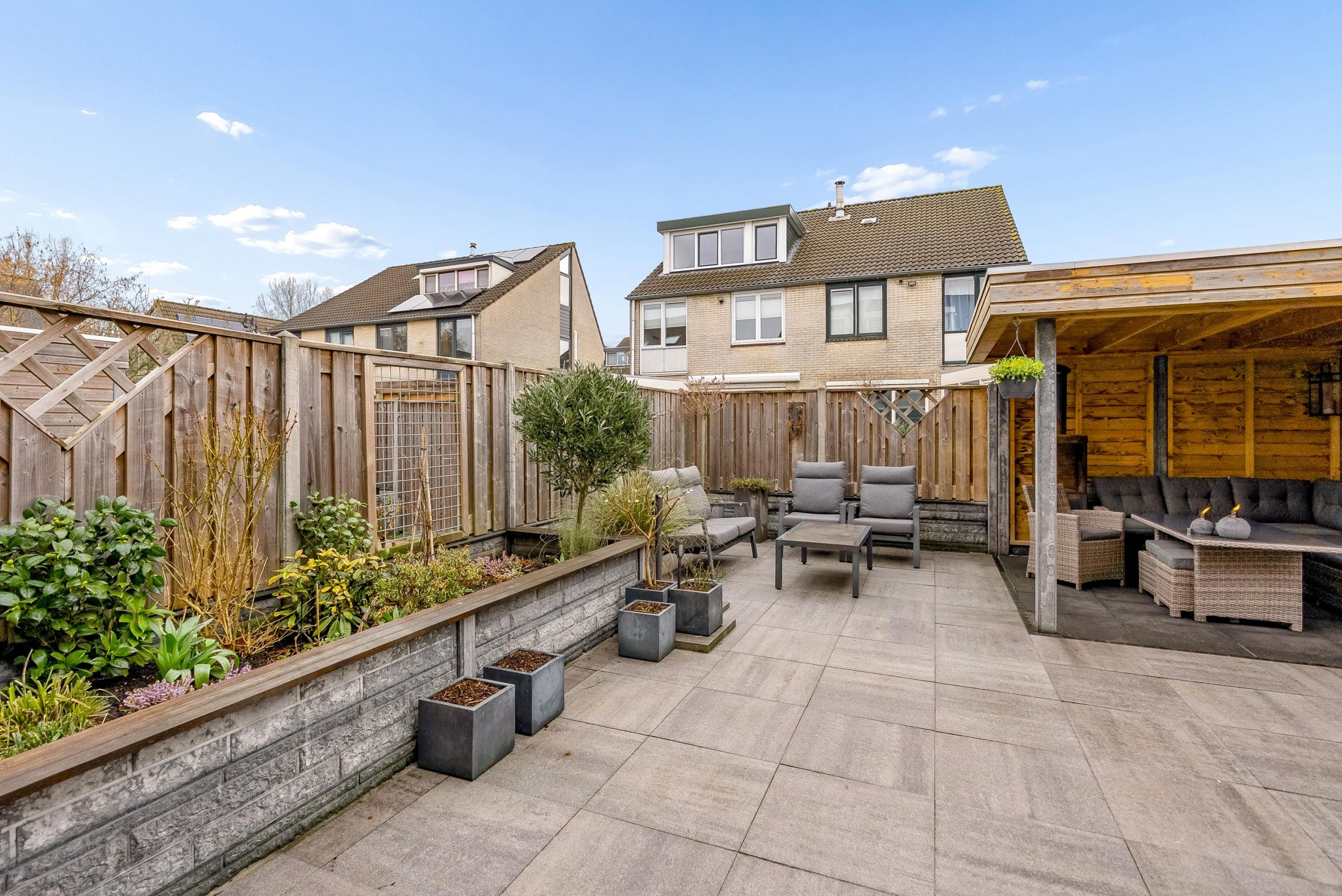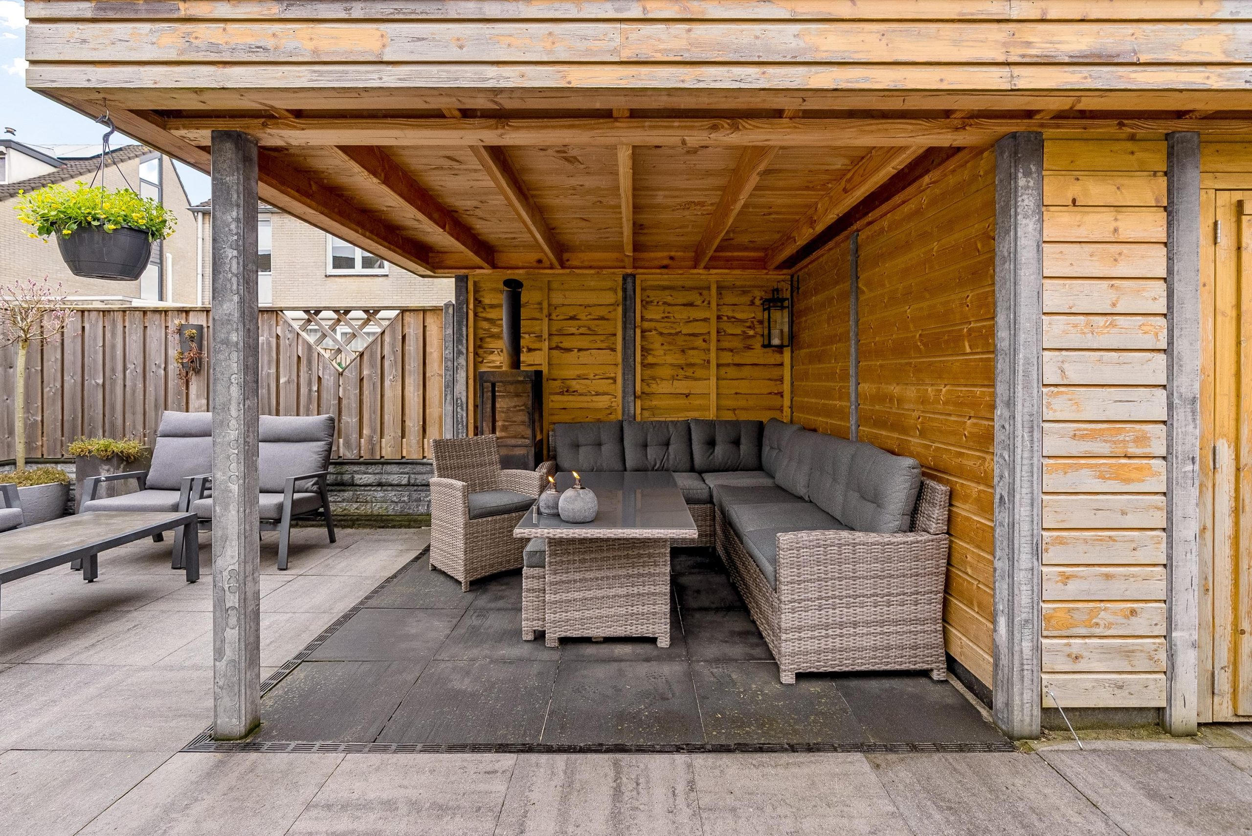 Via de schuifpui stap je de fraai aangelegde tuin in. De tuin is ruim van formaat (ca. 9 meter diep vanaf de schuifpui), waardoor je altijd een plekje in de zon of juist in de schaduw vindt. De overkapping achterin de tuin is de plek om lange zomeravonden door te brengen met vrienden en familie. Daarnaast is er een separate berging voor fietsen en tuinspullen en een handige achterom aan de zijkant van de woning.