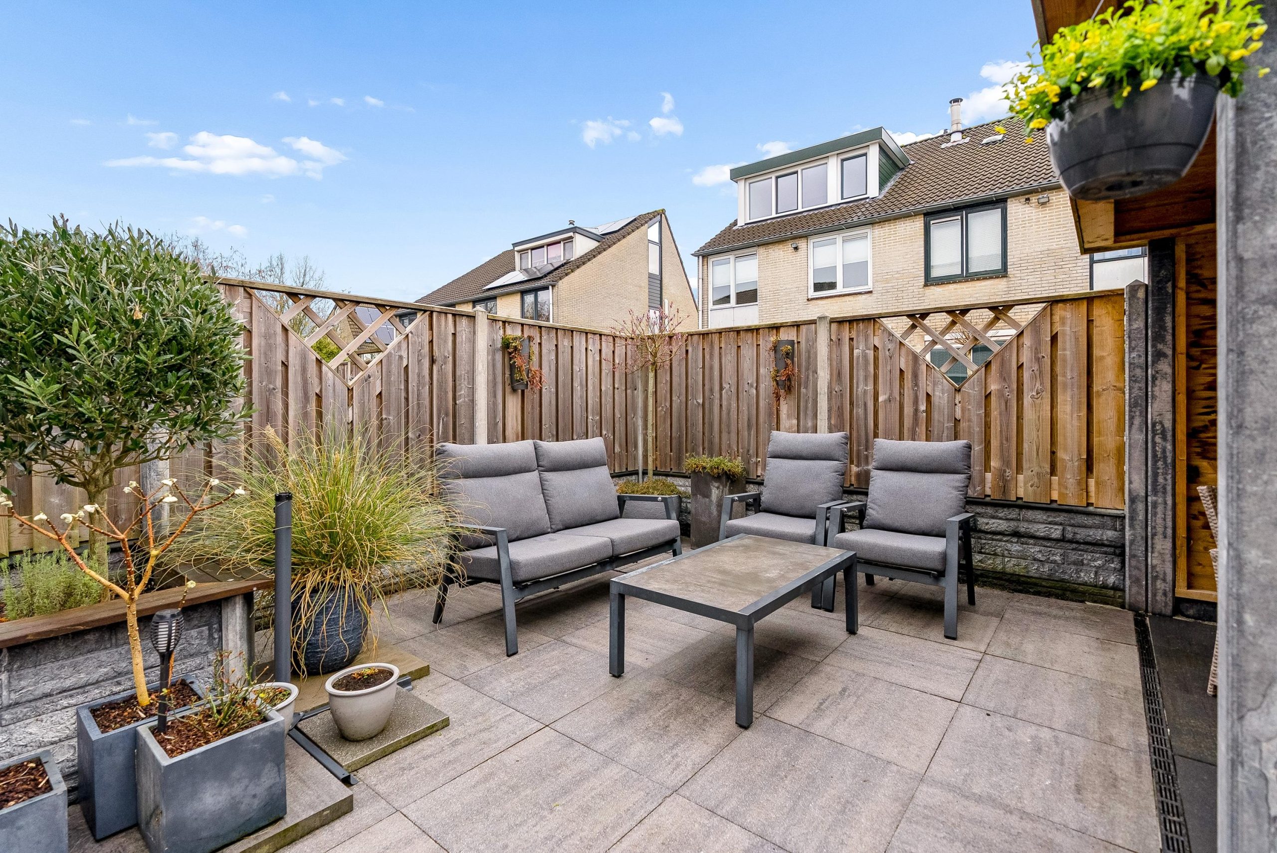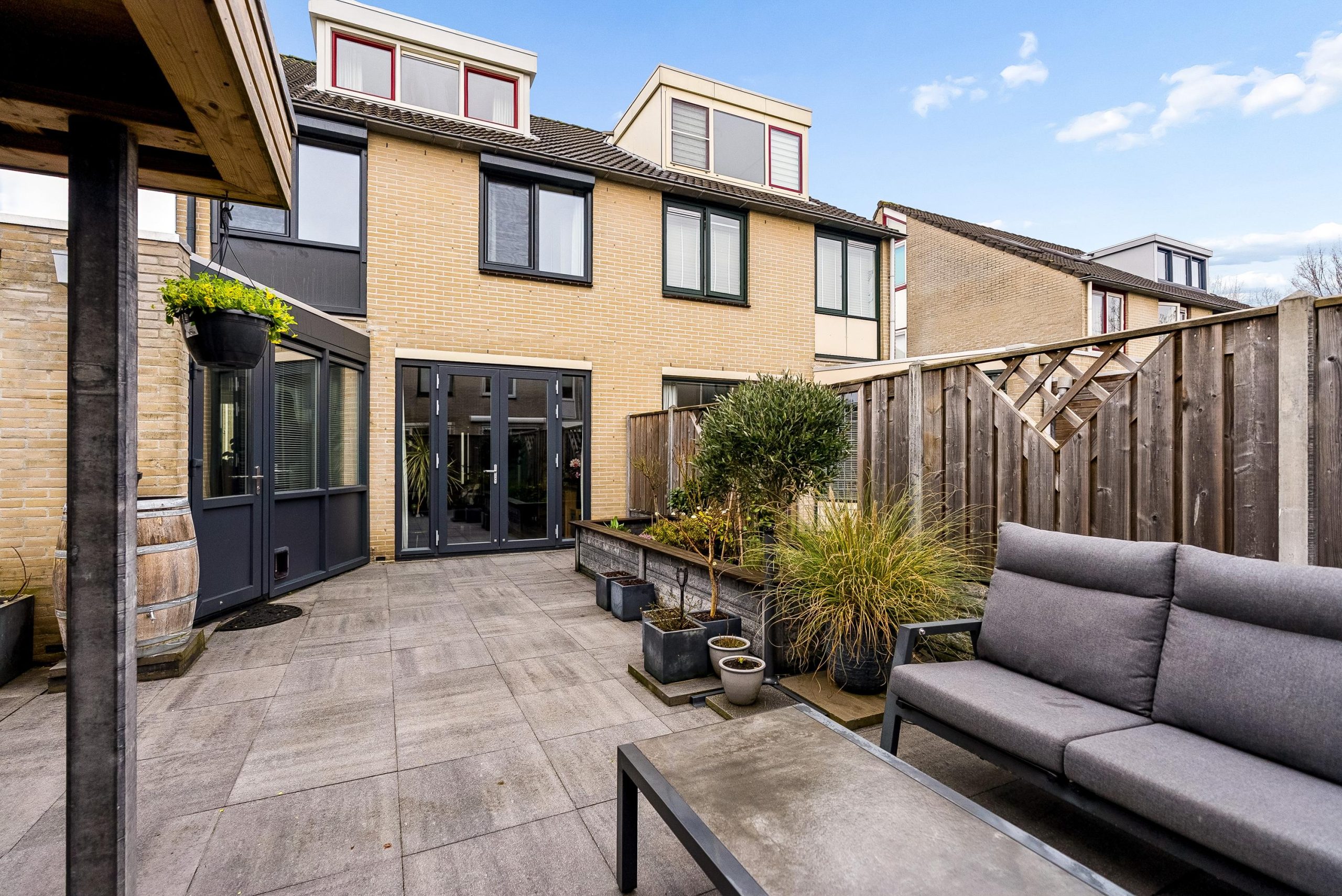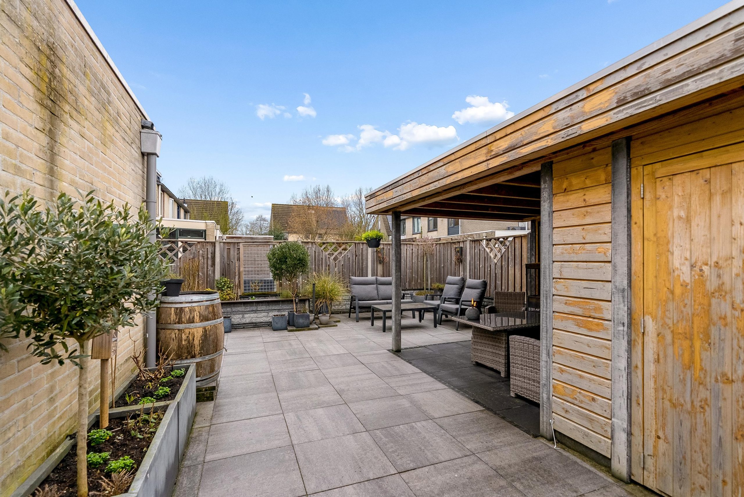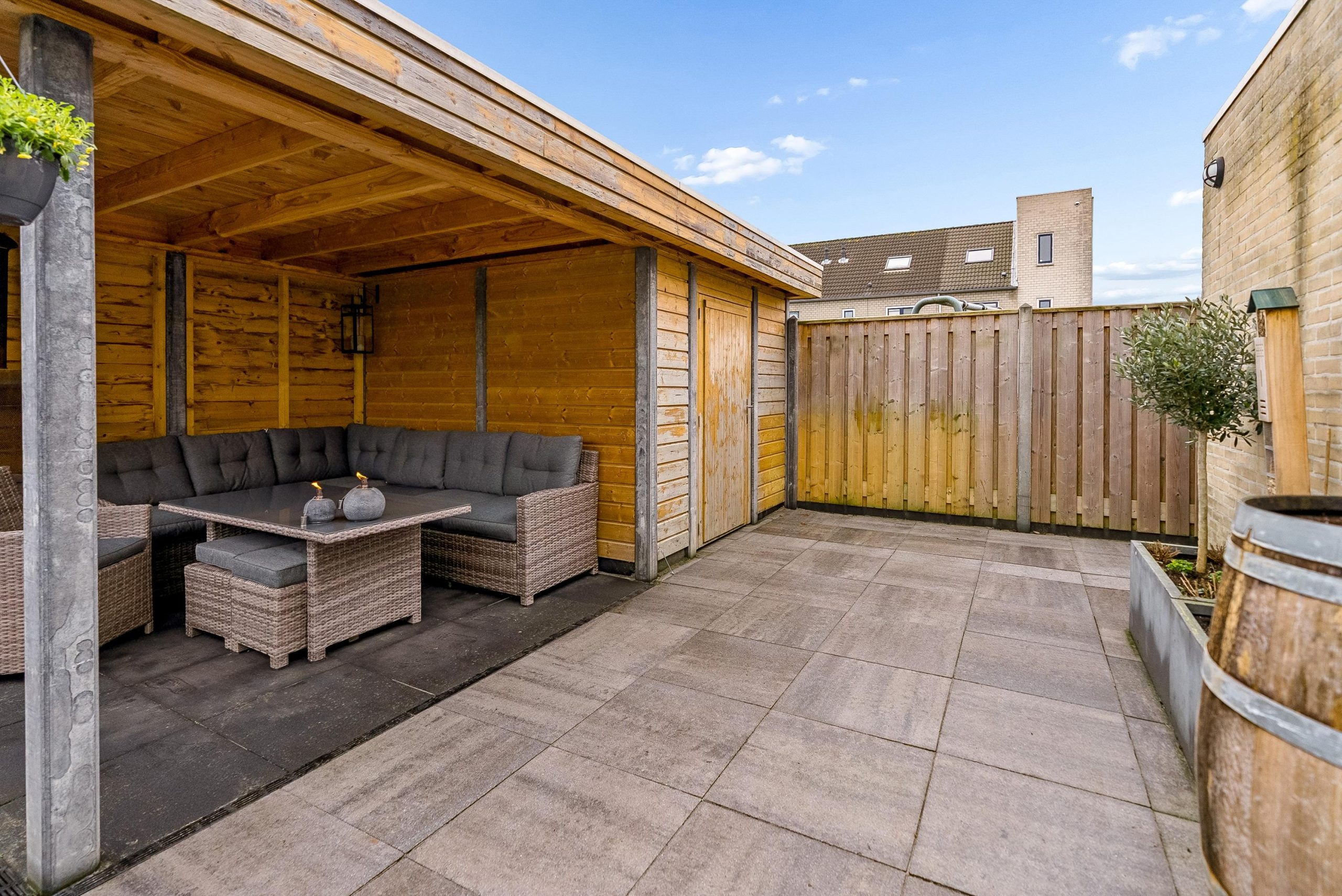 Via de schuifpui stap je de fraai aangelegde tuin in. De tuin is ruim van formaat (ca. 9 meter diep vanaf de schuifpui), waardoor je altijd een plekje in de zon of juist in de schaduw vindt. De overkapping achterin de tuin is de plek om lange zomeravonden door te brengen met vrienden en familie. Daarnaast is er een separate berging voor fietsen en tuinspullen en een handige achterom aan de zijkant van de woning.