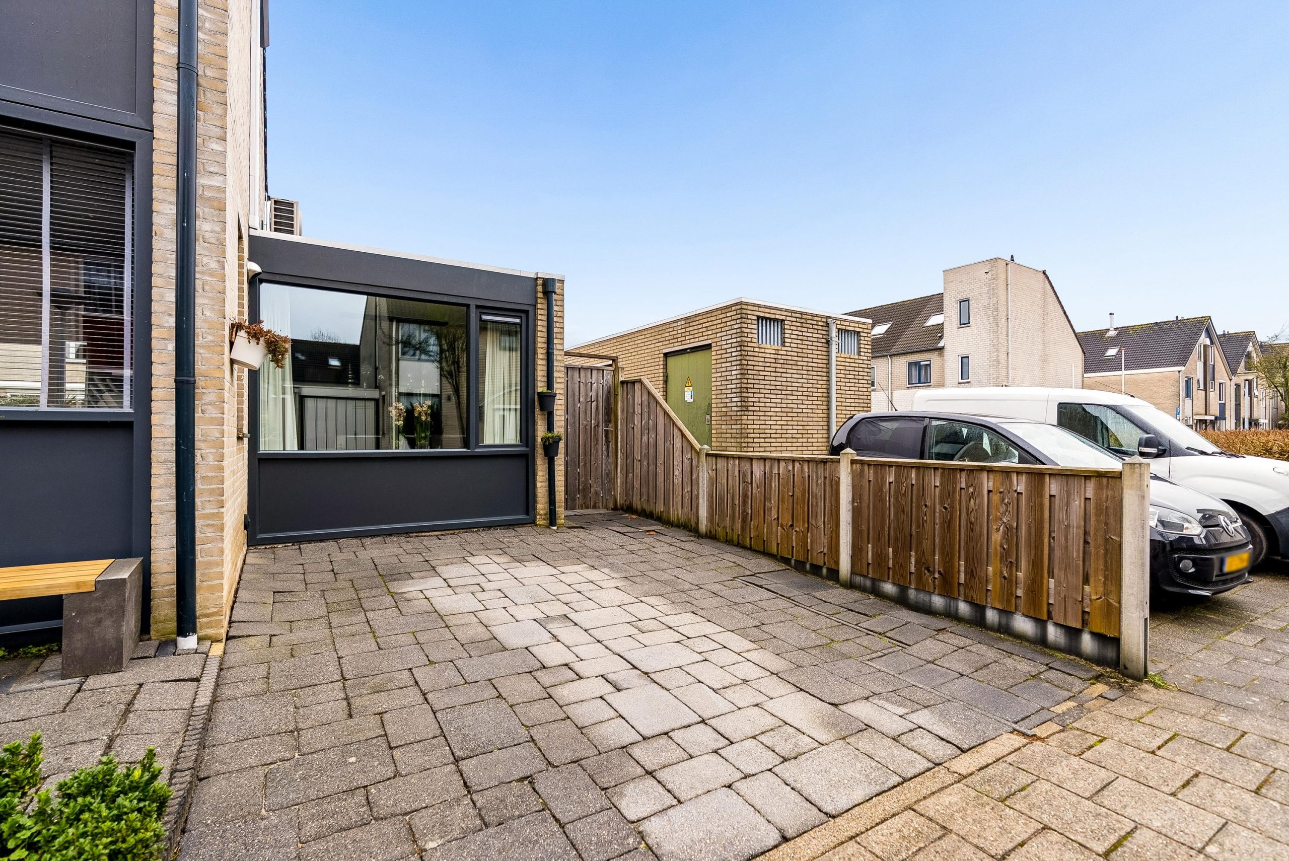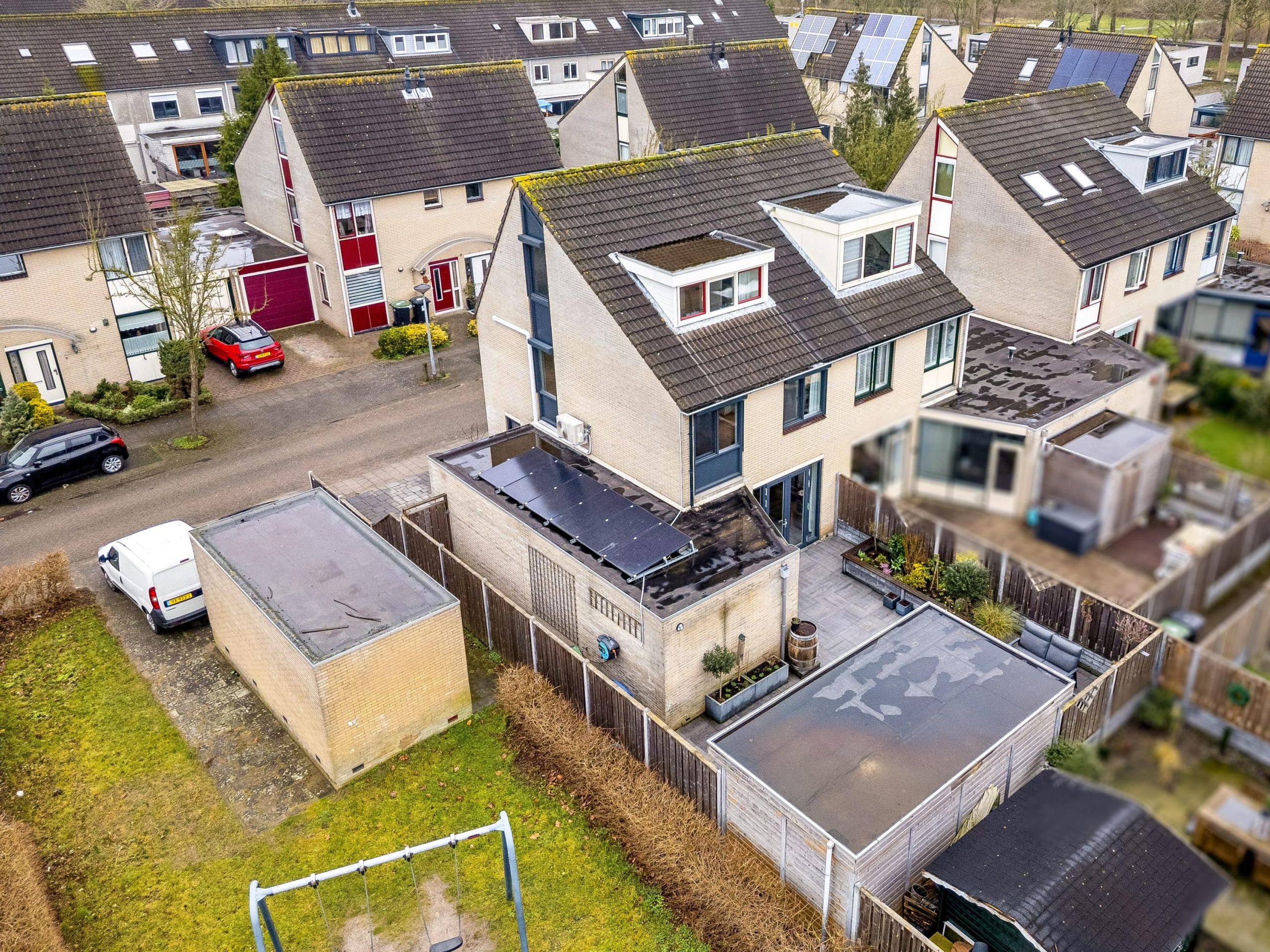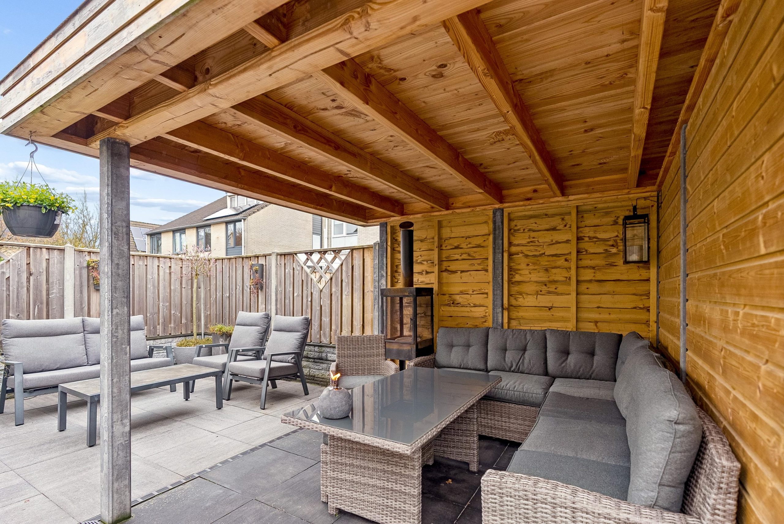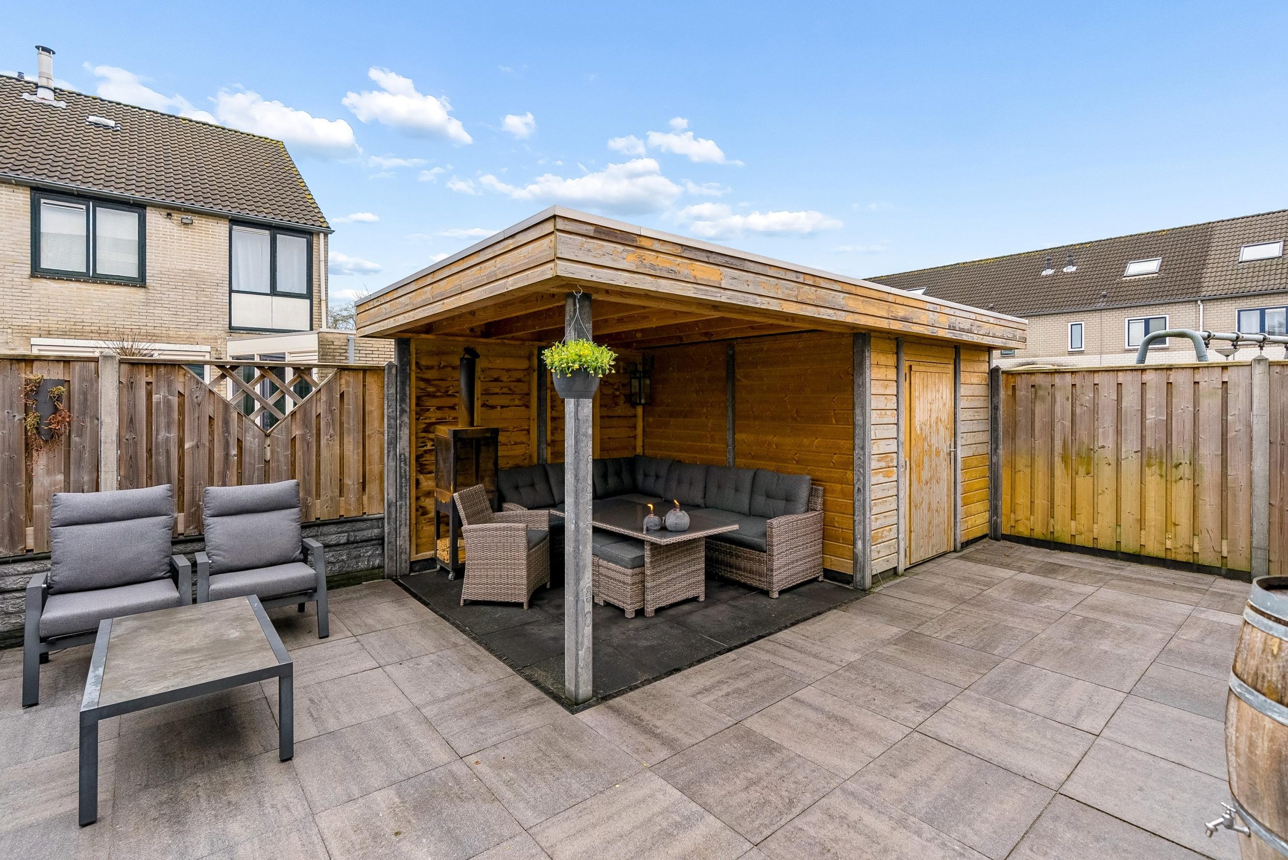 Via de schuifpui stap je de fraai aangelegde tuin in. De tuin is ruim van formaat (ca. 9 meter diep vanaf de schuifpui), waardoor je altijd een plekje in de zon of juist in de schaduw vindt. De overkapping achterin de tuin is de plek om lange zomeravonden door te brengen met vrienden en familie. Daarnaast is er een separate berging voor fietsen en tuinspullen en een handige achterom aan de zijkant van de woning.