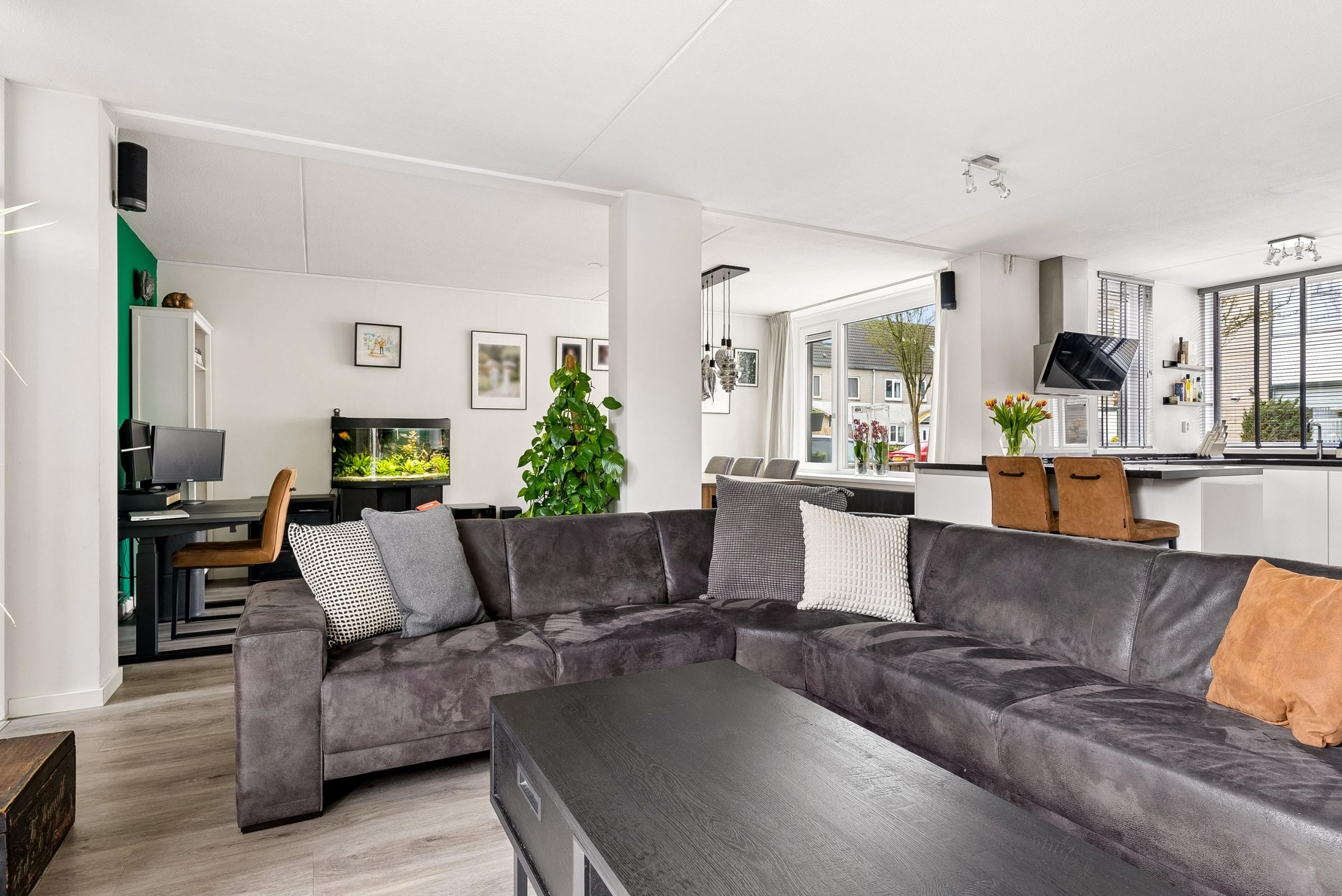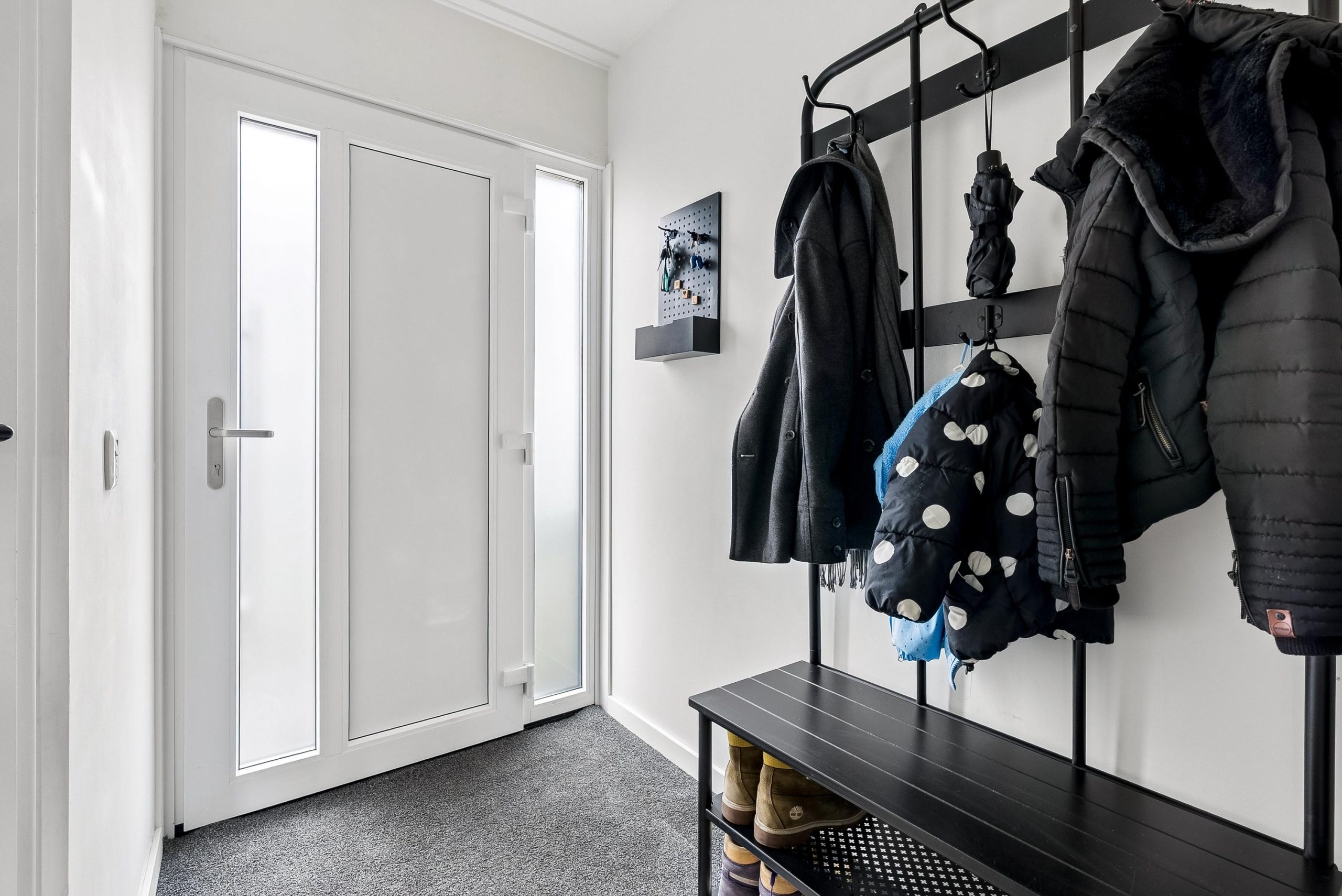 Via de entree kom je in de ruime hal met separaat toilet en toegang tot de woonkamer met open keuken. Zodra je de woonkamer binnenstapt, valt direct de royale breedte van bijna 8 meter op. Dit is een heerlijke leefruimte waar je alle kanten op kunt met de indeling.