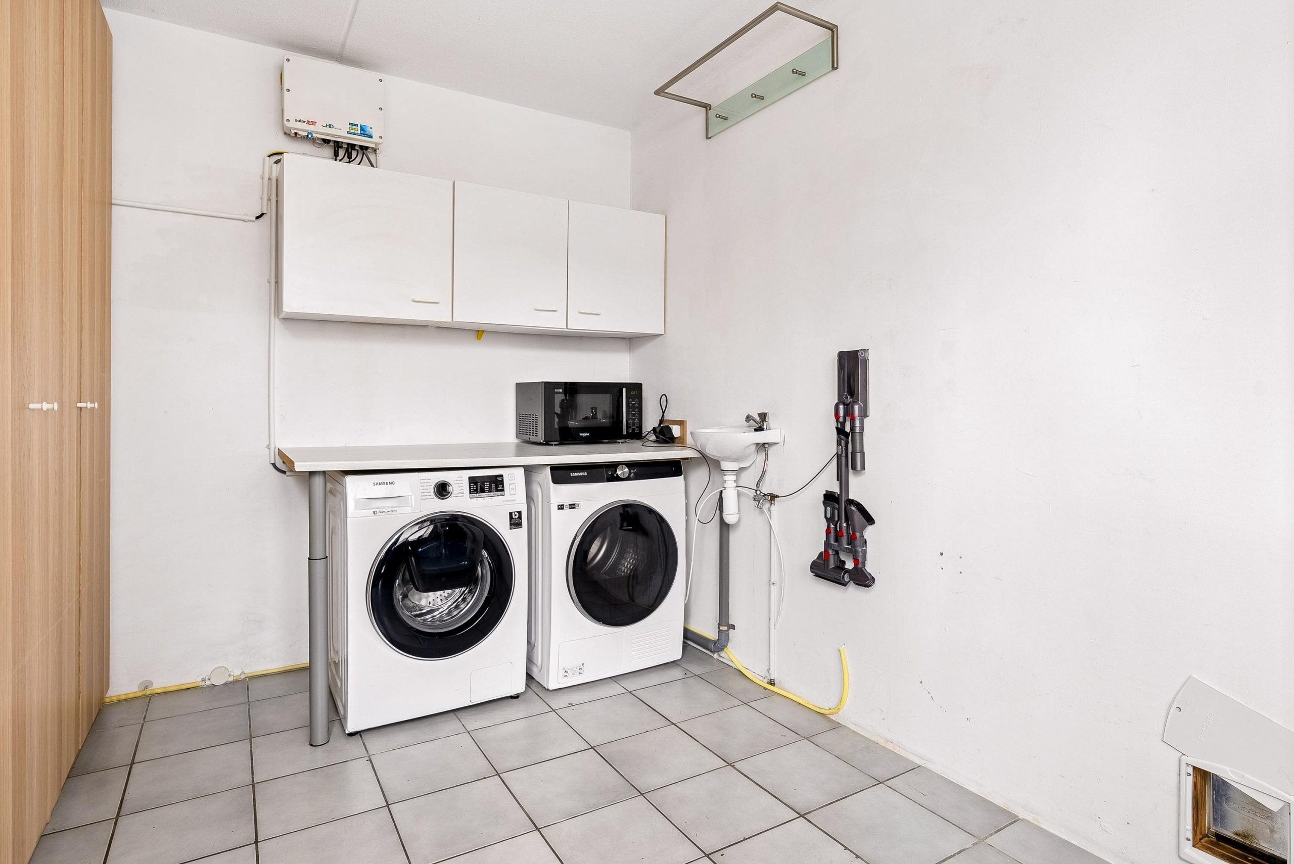 De woonkamer biedt volop ruimte voor een grote zithoek en een ruime eettafel. Vanuit hier heb je tevens toegang tot de praktische bijkeuken/wasruimte, ideaal voor extra opslag. De kozijnen op de begane grond zijn van kunststof en merendeel heeft triple glas, een enkele heeft HR++ glas. Daarnaast heb je vloerverwarming in de woonkamer, keuken, hal en toilet. Heerlijk comfortabel.