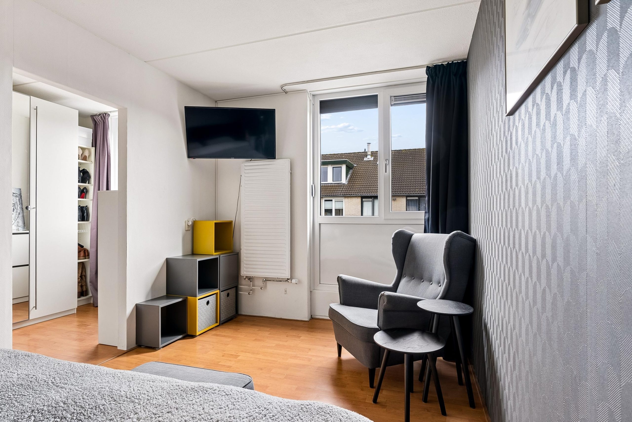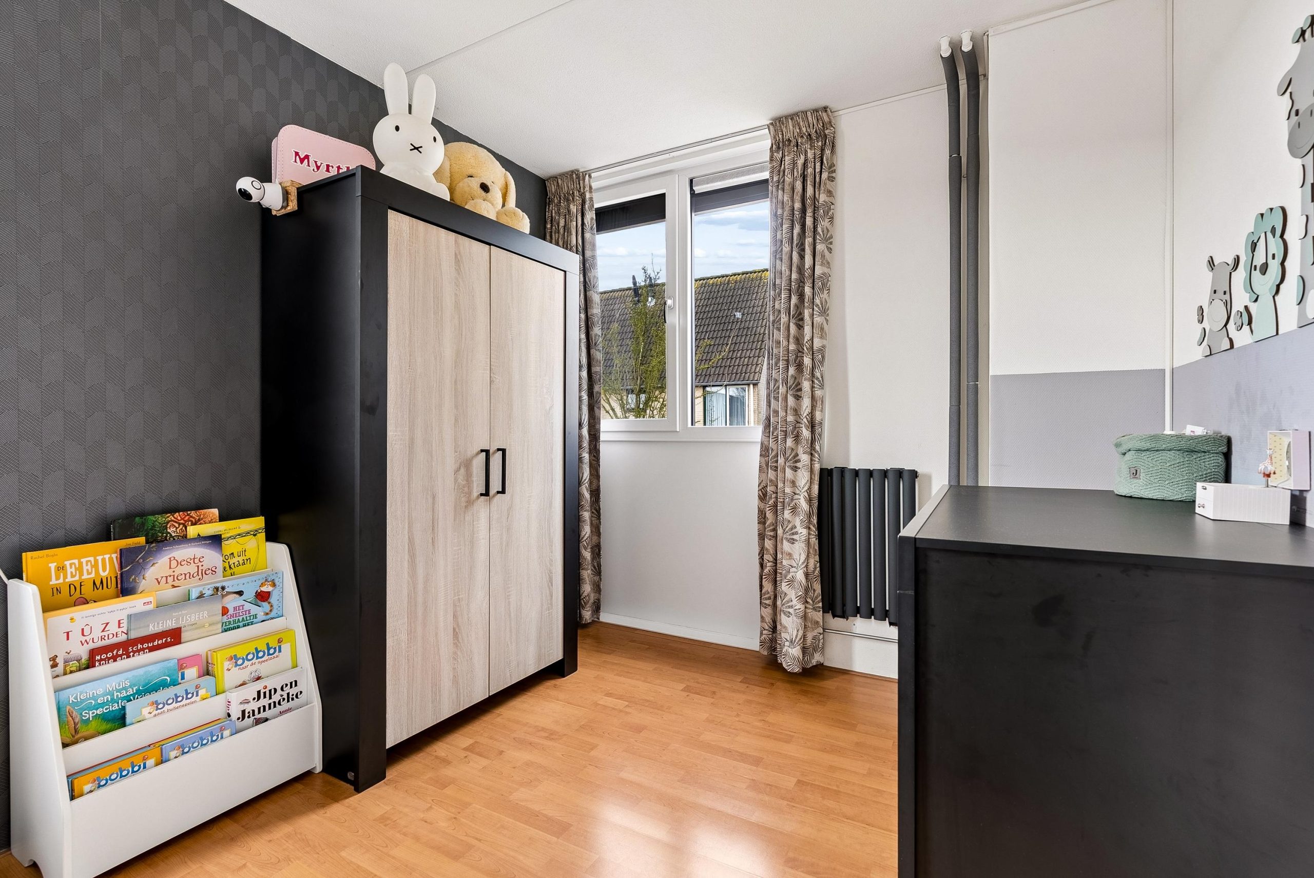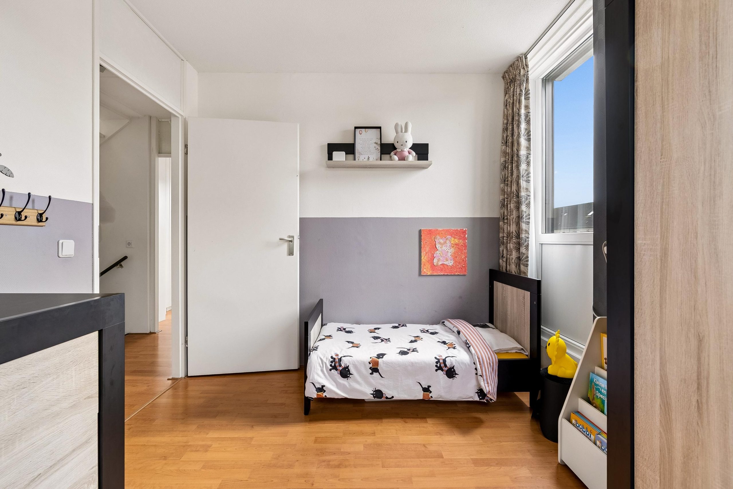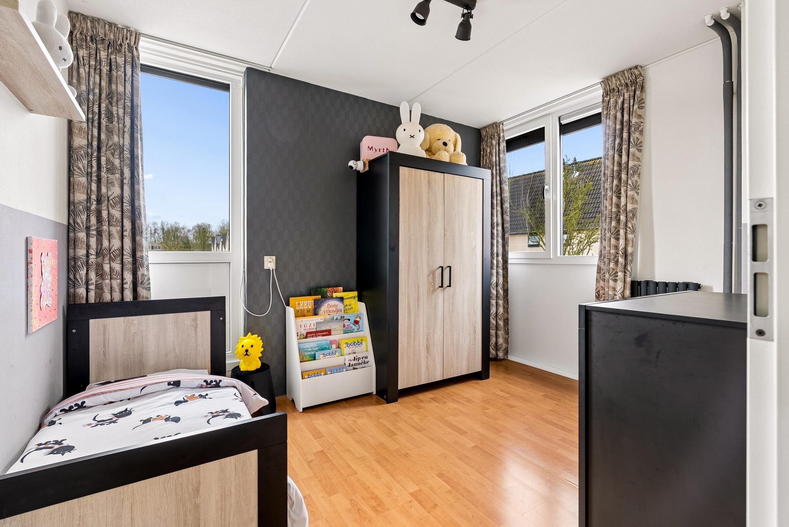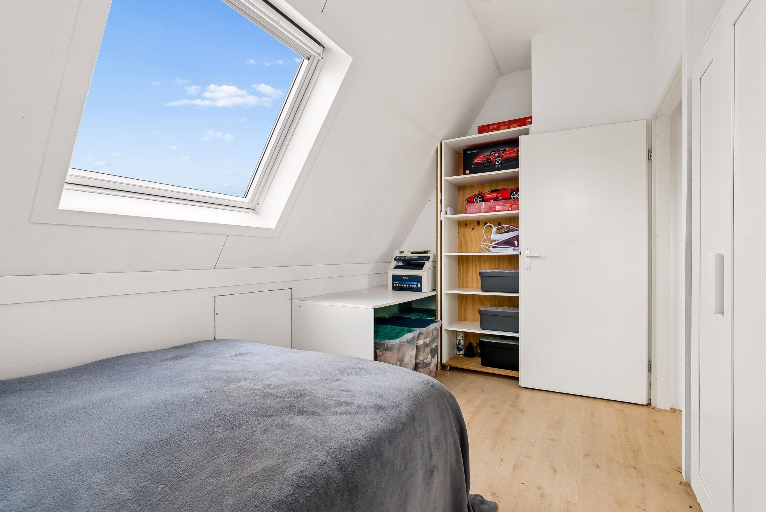 De derde slaapkamer ligt aan de voorzijde en profiteert van veel lichtinval dankzij de ramen aan de voor- en zijgevel. Alle slaapkamers op de verdieping zijn voorzien van elektrische verduisterende rolgordijnen.