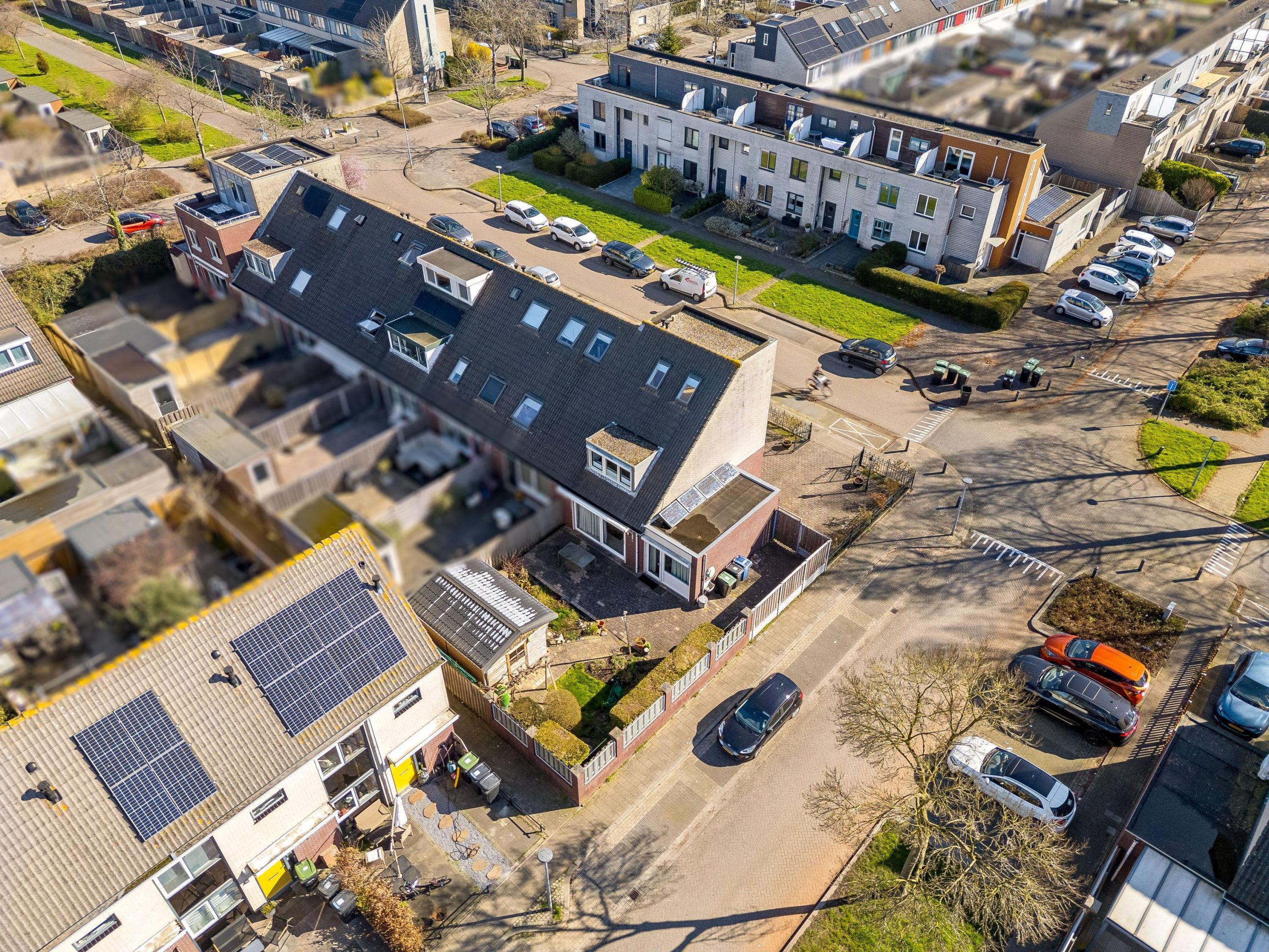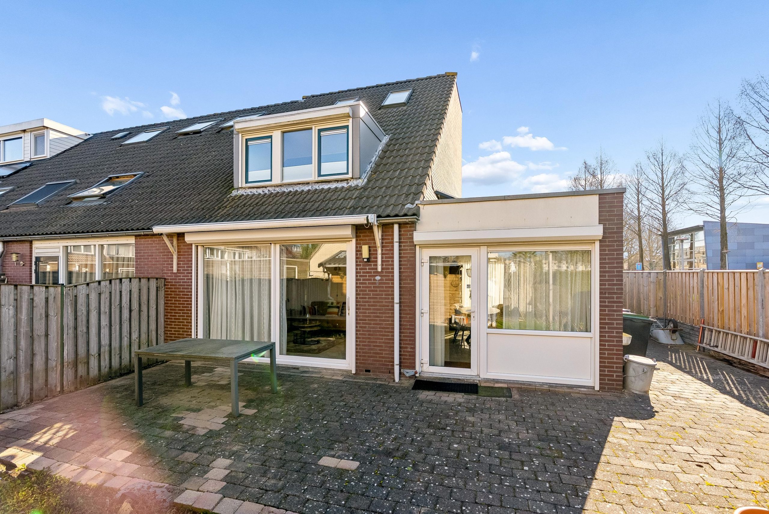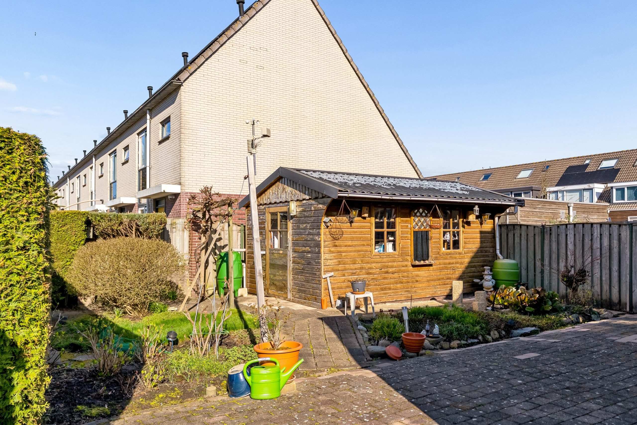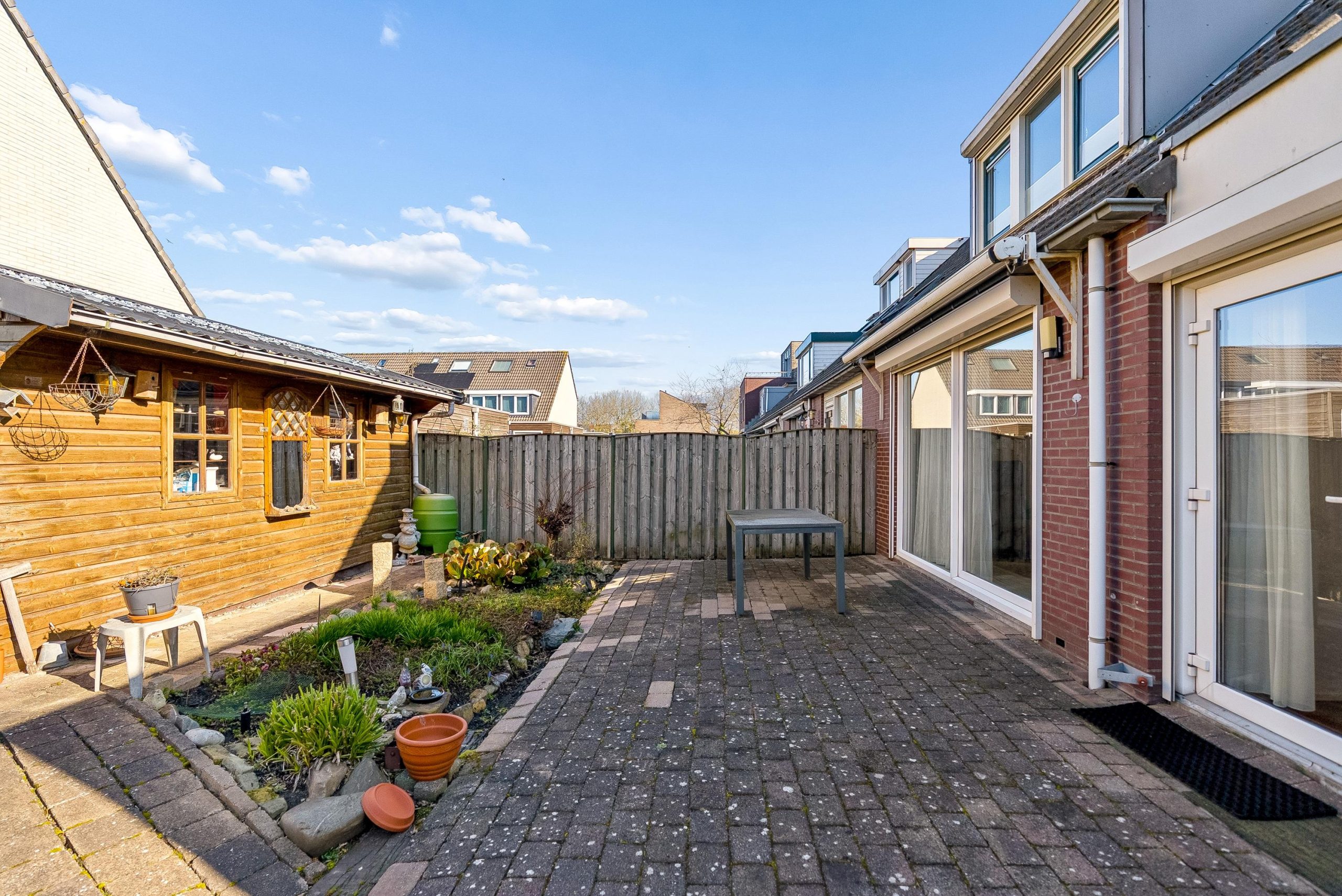 Via de tuindeur of schuifpui in de woonkamer stap je zo de eveneens ruime tuin in. De tuin heeft altijd wel een plekje waar je lekker in de zon of juist in de schaduw kan zitten. Via de zijkant bereik je eenvoudig de voortuin (achterom). Daarnaast is er een schuur aanwezig, ideaal voor fietsen en tuinspullen. Het elektrisch zonnescherm zorgt ervoor dat je ook op warme dagen comfortabel buiten kunt zitten.