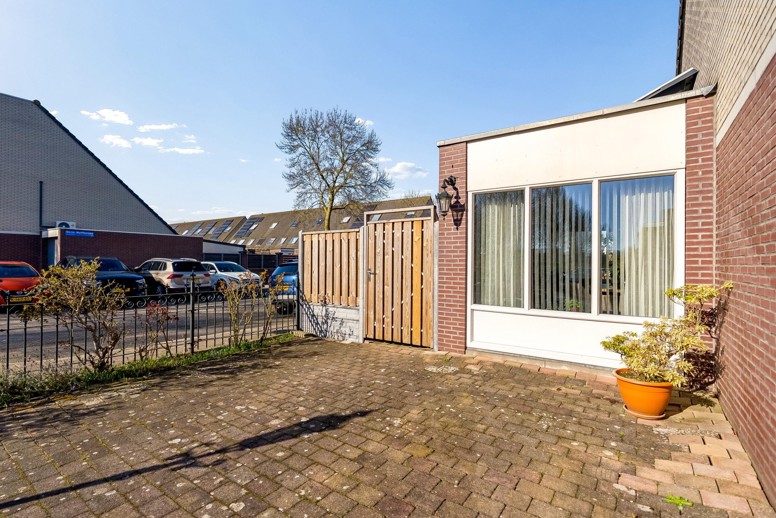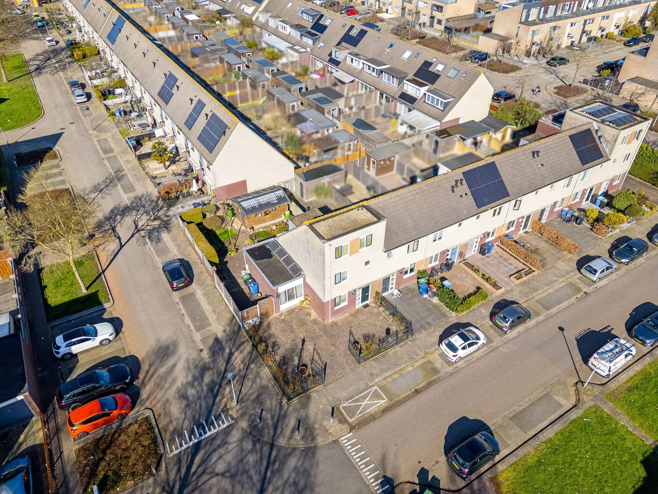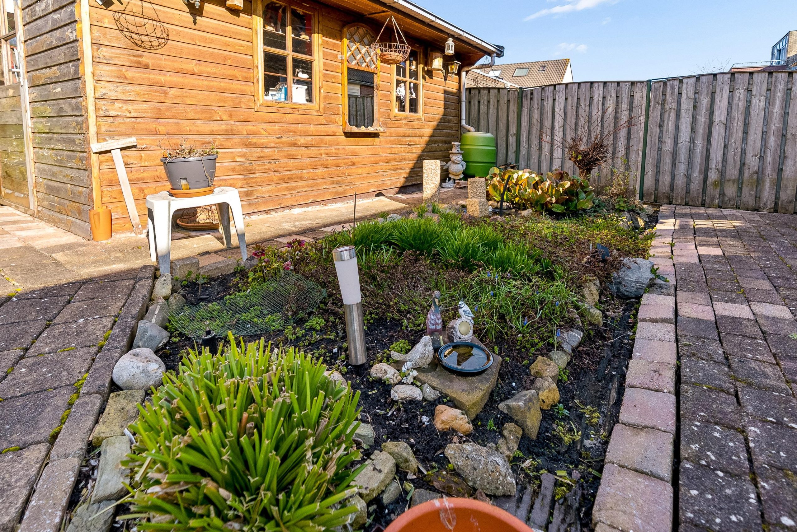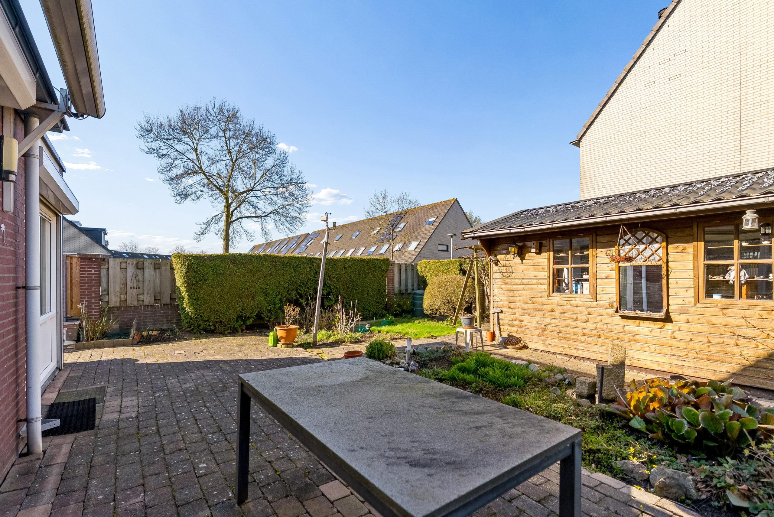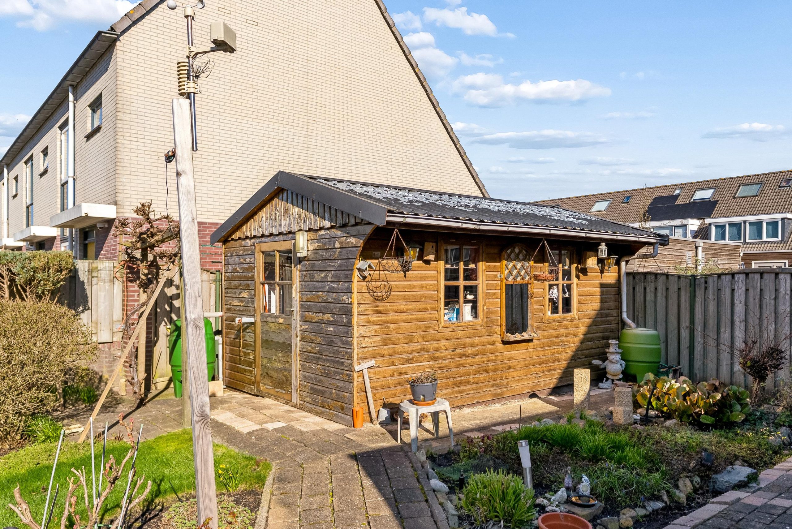 Via de tuindeur of schuifpui in de woonkamer stap je zo de eveneens ruime tuin in. De tuin heeft altijd wel een plekje waar je lekker in de zon of juist in de schaduw kan zitten. Via de zijkant bereik je eenvoudig de voortuin (achterom). Daarnaast is er een schuur aanwezig, ideaal voor fietsen en tuinspullen. Het elektrisch zonnescherm zorgt ervoor dat je ook op warme dagen comfortabel buiten kunt zitten.