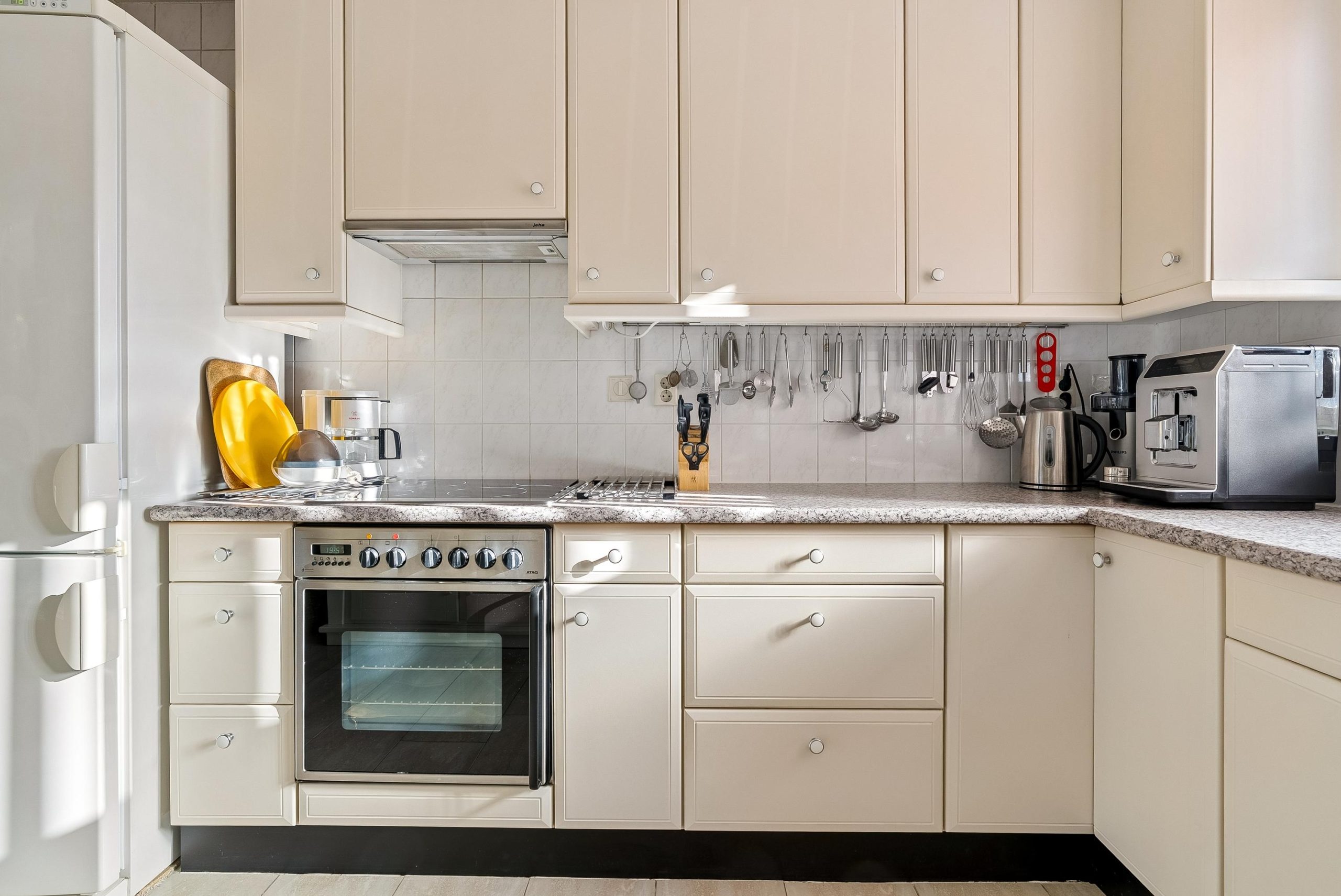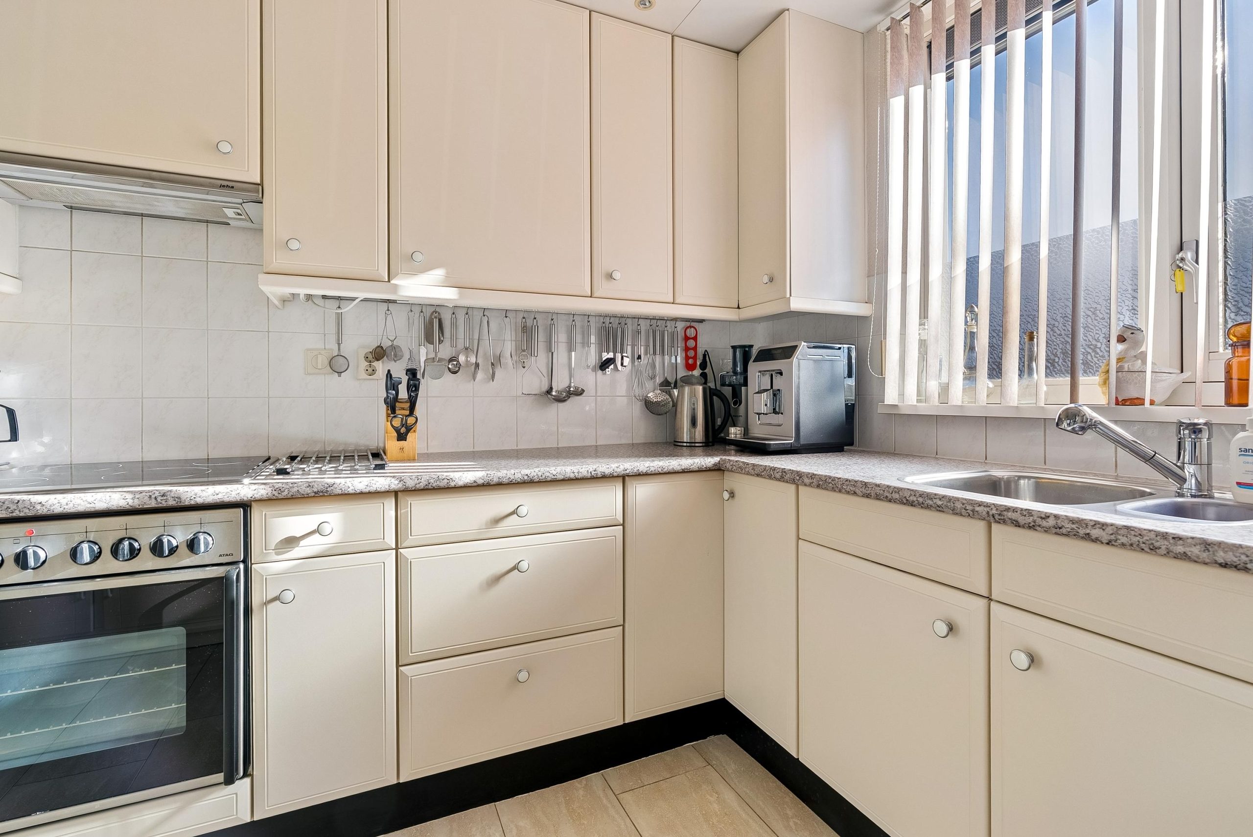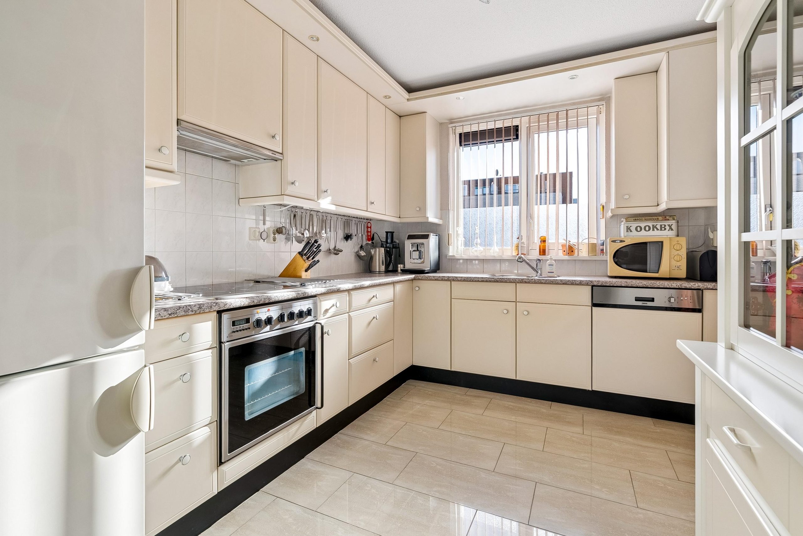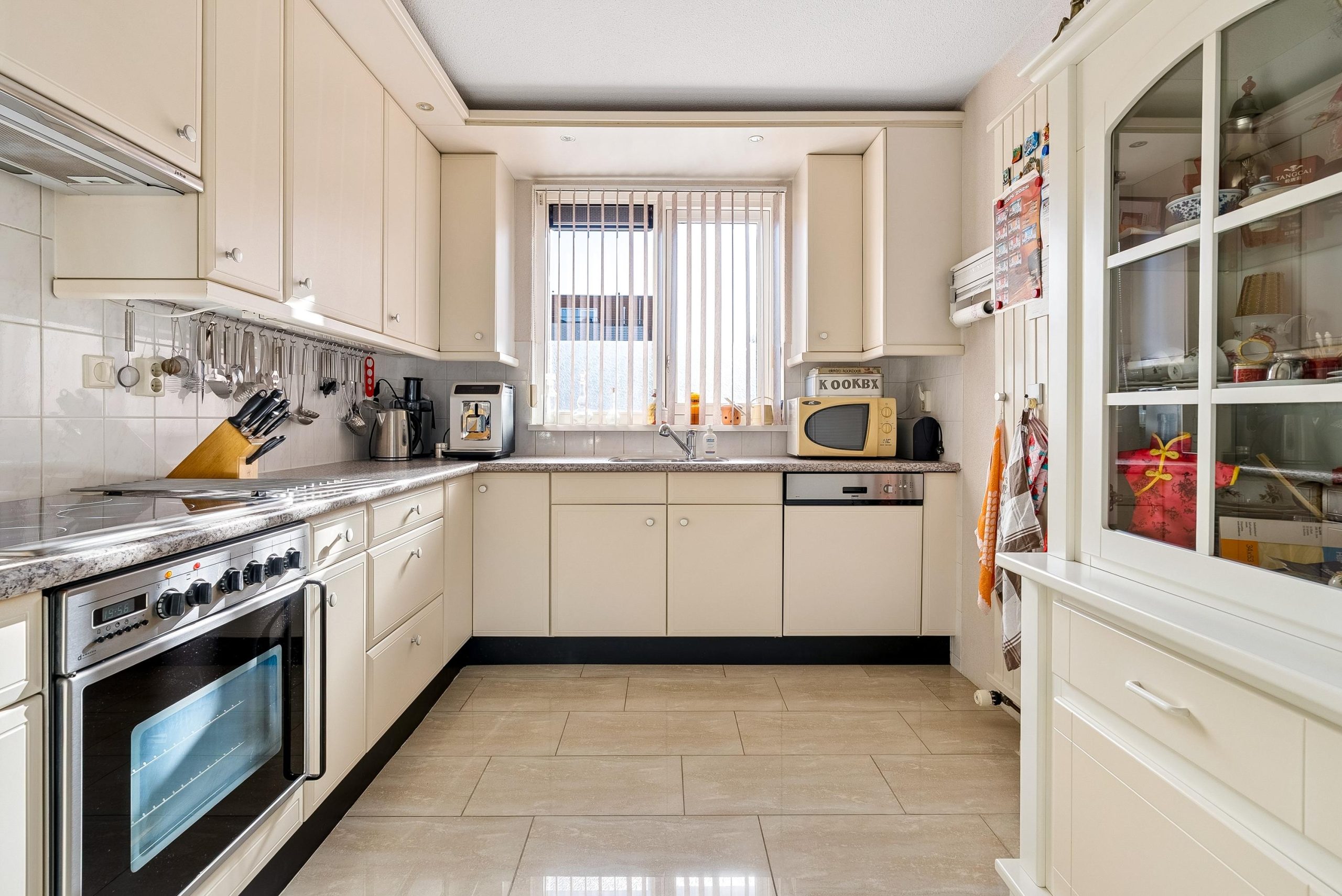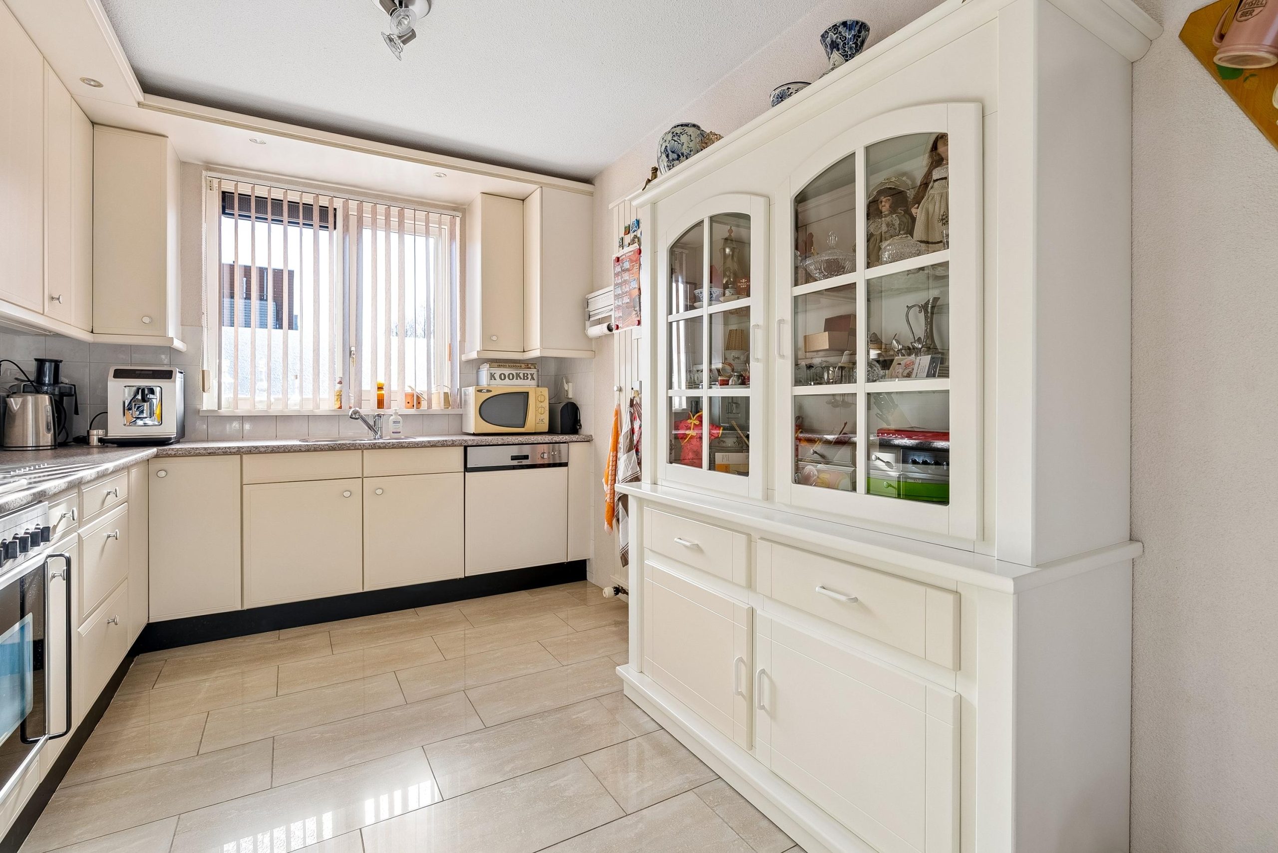 Aan de voorzijde bevindt zich de keuken, met voldoende werk- en kastruimte. De keuken is voorzien van diverse inbouwapparatuur, waaronder een oven, vaatwasser, inductiekookplaat en afzuigkap.