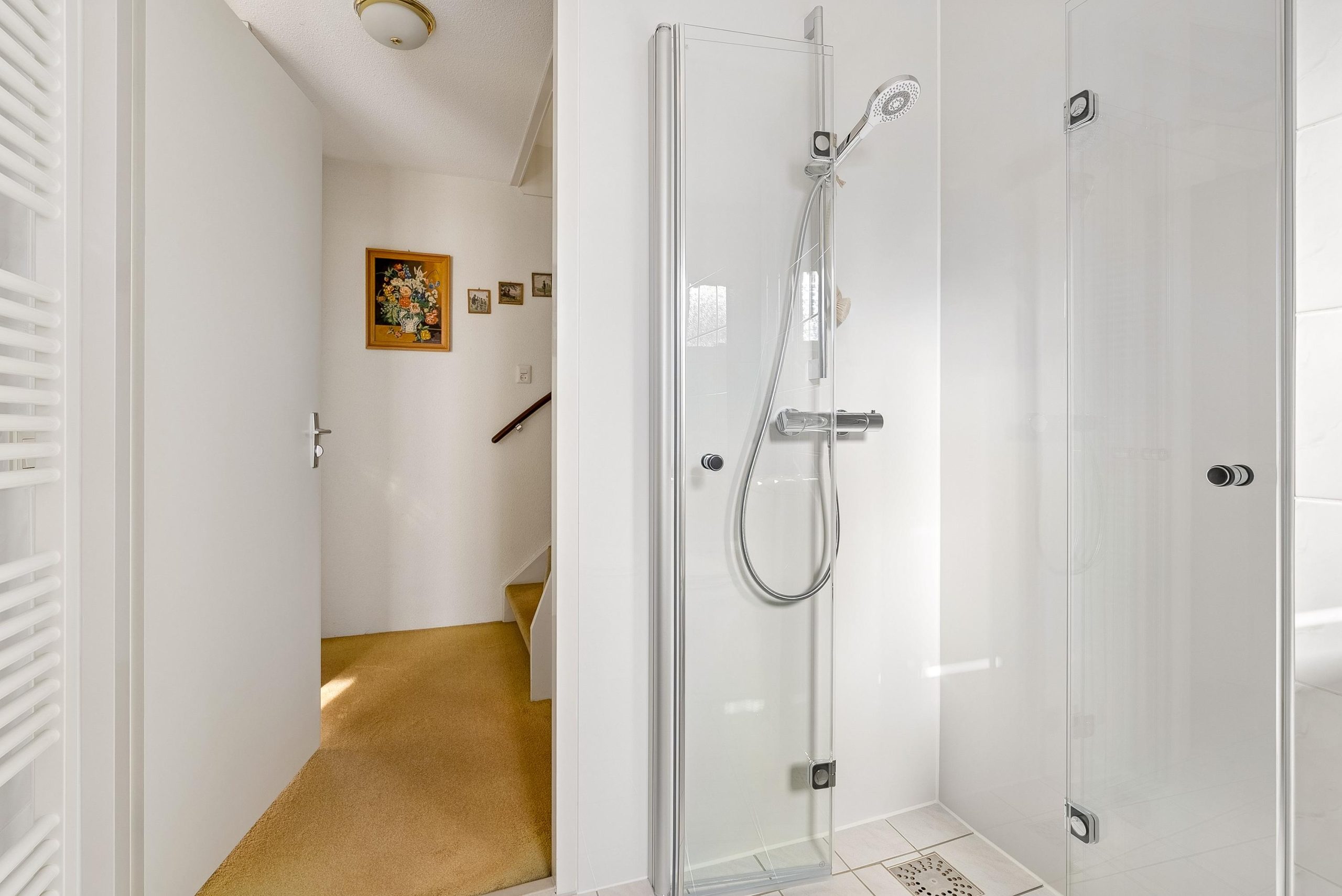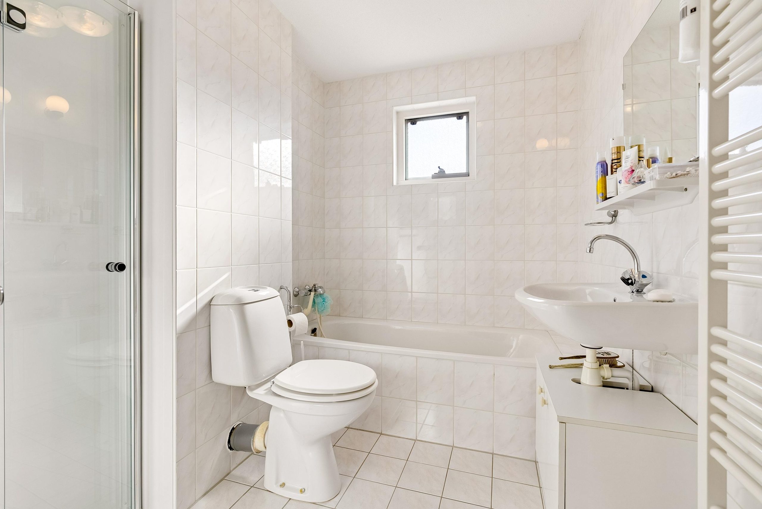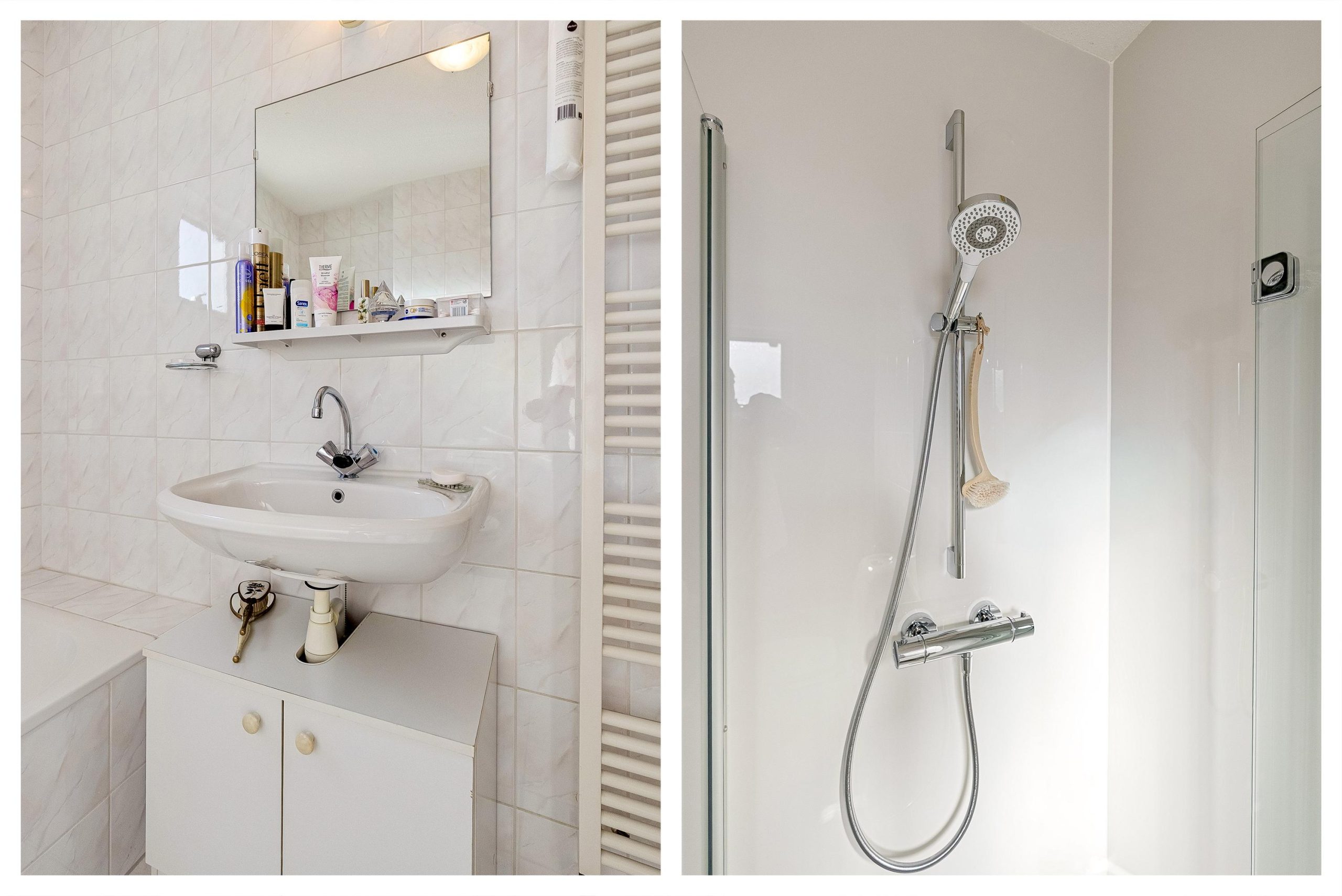 De badkamer in lichte kleurstelling is voorzien van een ligbad, tweede toilet, wastafel en douche. De douche is recent vernieuwd.