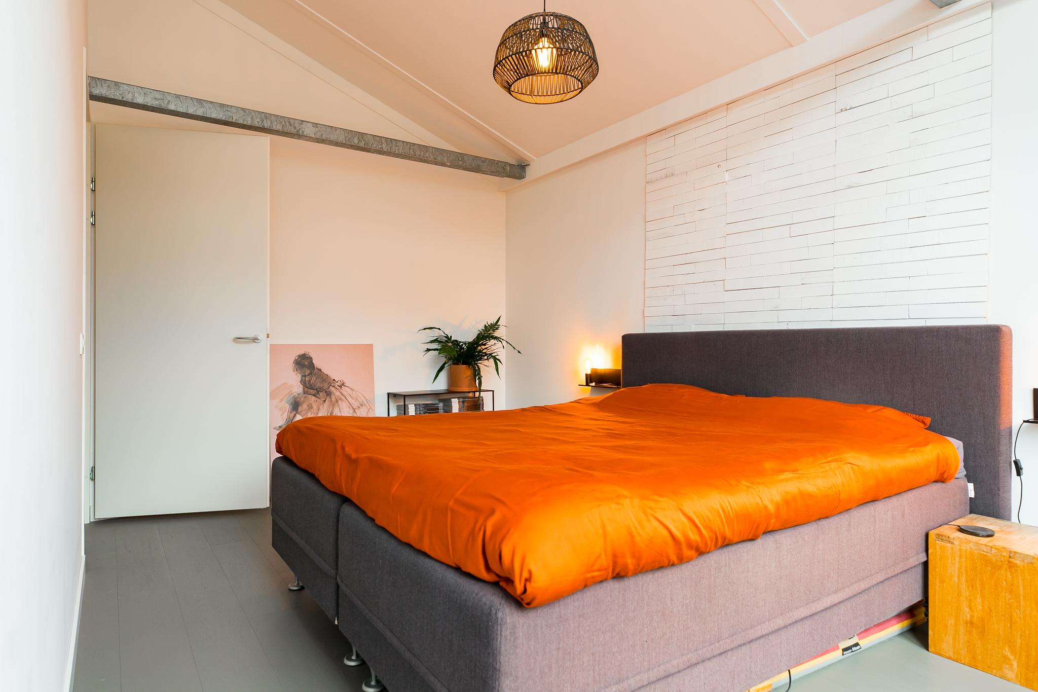 Het washok biedt veel opbergruimte en heeft mogelijkheden tot het creëren van een tweede badkamer (leidingen voor warm en koud water zijn aanwezig). Nog een fijn weetje is dat het raam hier open kan, dit was ook een extra optie vanuit de nieuwbouw. De omvormer van de zonnepanelen bevindt zich ook hier. Op het dak liggen 8 zonnepanelen (eigendom). Om optimaal van de ruimte gebruik te maken is er op deze verdieping een vliering gemaakt en zo op creatieve wijze extra bergruimte gecreëerd. De grote slaapkamer welke is gelegen aan de achterzijde heeft aansluitend een walk in closet. Tevens biedt deze slaapkamer toegang tot het terras. Vanaf hier kun je heerlijk genieten en ook hier heb je veel privacy. Een ideale plek om na een drukke dag even tot rust te komen.