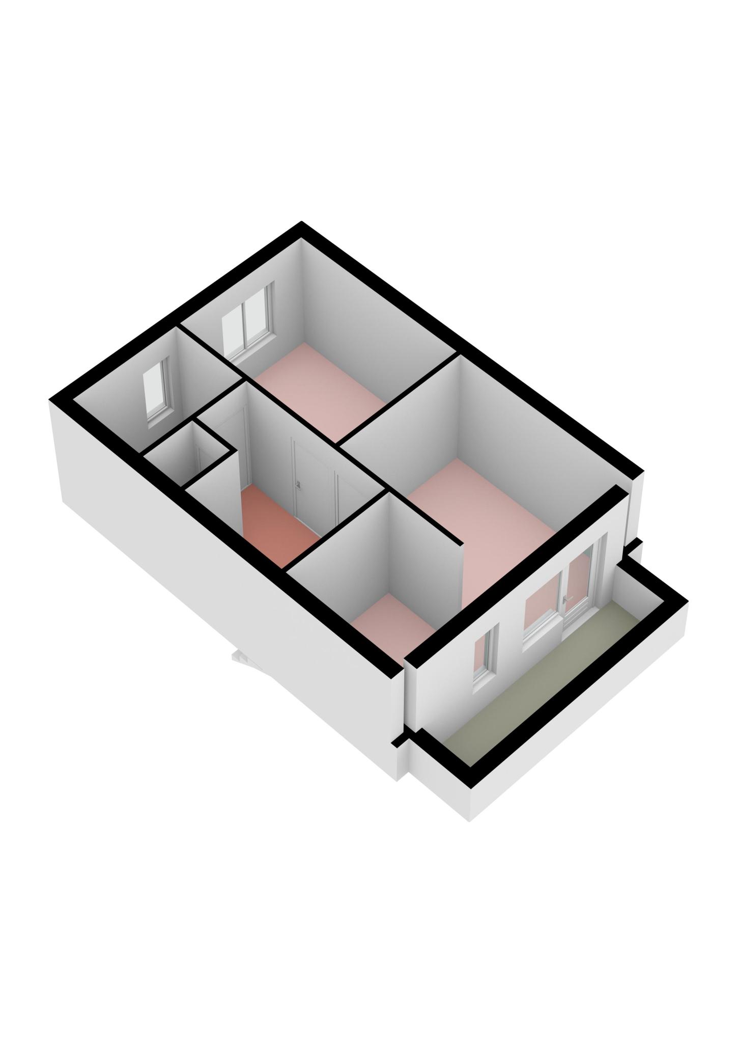 Ook deze verdieping is uitgebouwd wat zorgt voor extra woonoppervlakte. Op deze verdieping bevinden zich twee slaapkamers, separaat derde toilet, het washok en dakterras.