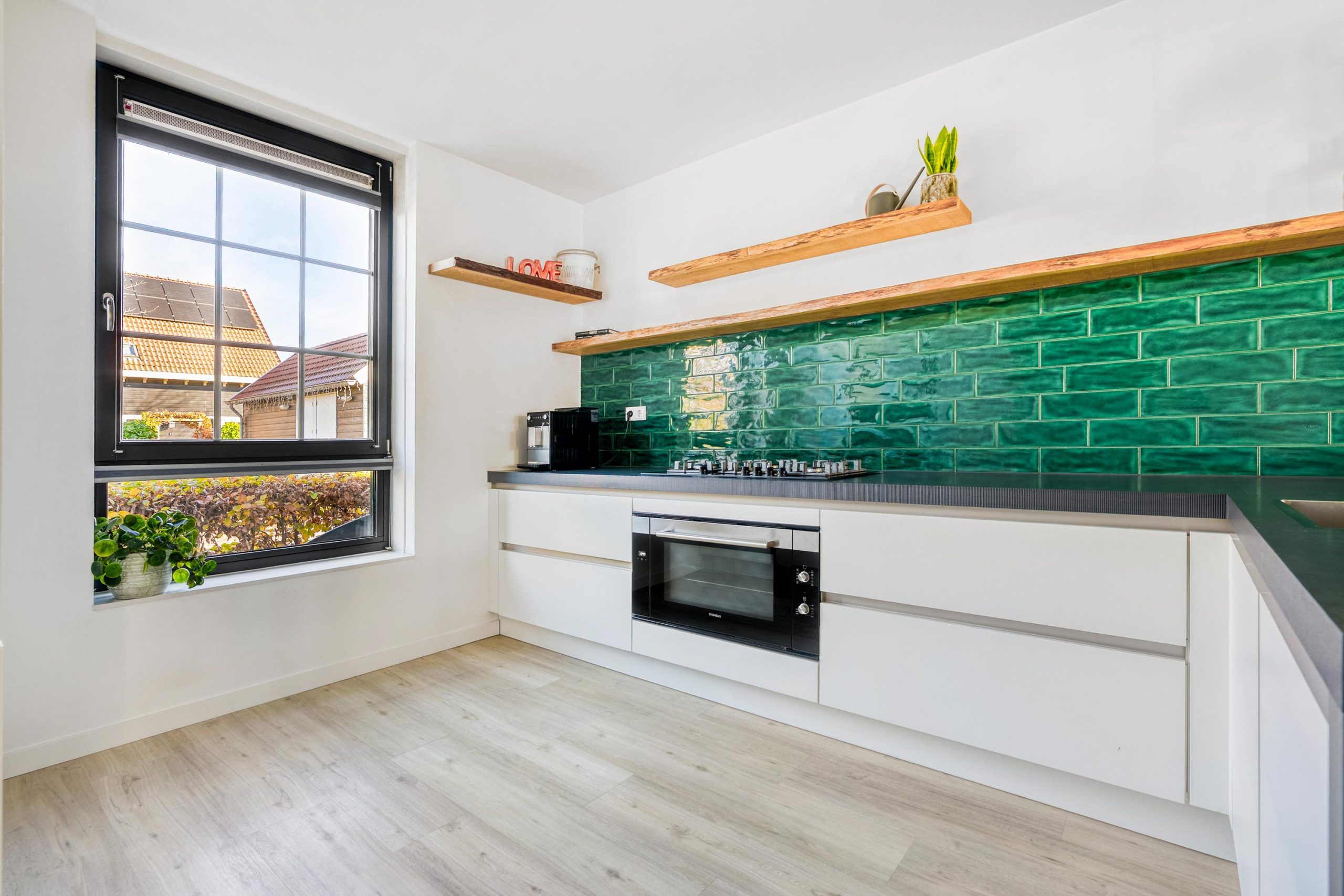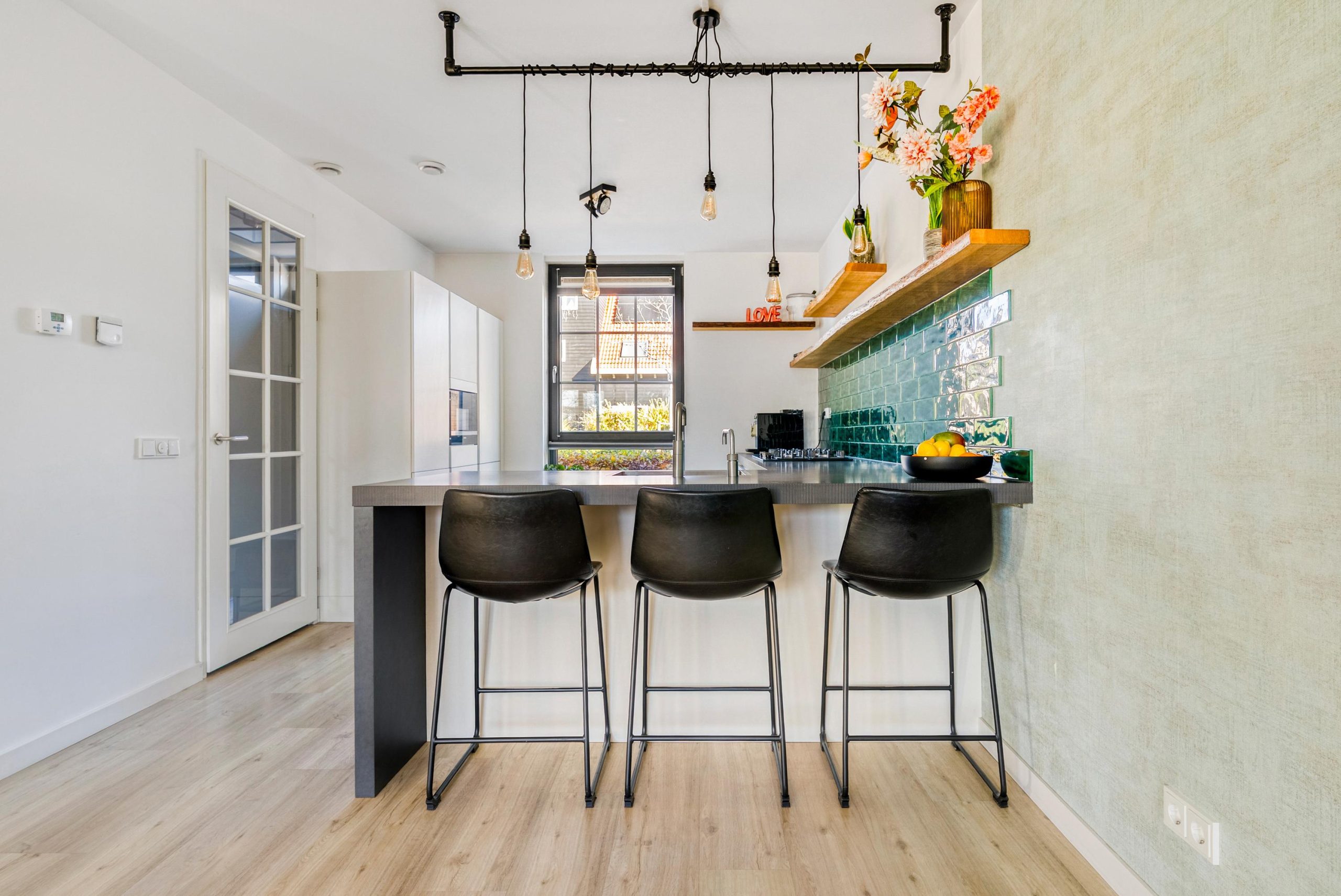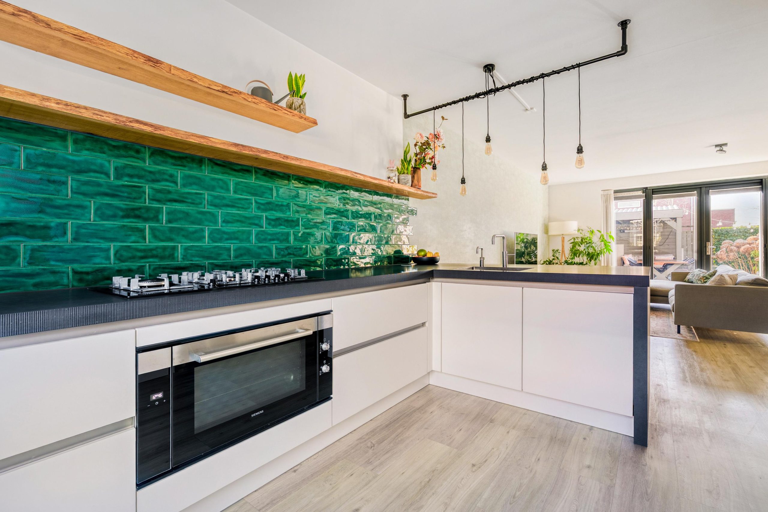 De woning is gelegen in een prachtige en rustige straat. Voor je woning heb je een eigen voortuin waar je heerlijk kan zitten met een kopje koffie in de ochtendzon. Via de entree kom je in de hal, met de meterkast en separaat modern toilet. Je hebt een handige nis voor de garderobe in de hal. Je komt daarna binnen in de woonkamer met open keuken. De moderne en luxe keuken is gelegen aan de voorzijde van de woning en is ruim. Je hebt veel opbergruimte en natuurlijk alle inbouwapparatuur die je mag verwachten van een hedendaagse keuken, denk aan: koel-vriescombinatie, combi-magnetron, vaatwasser, extra brede oven, 5-pits gasfornuis en kokend waterkraan (Quooker). Daarnaast heeft de keuken een bar gedeelte waar je gezellig aan kan zitten.