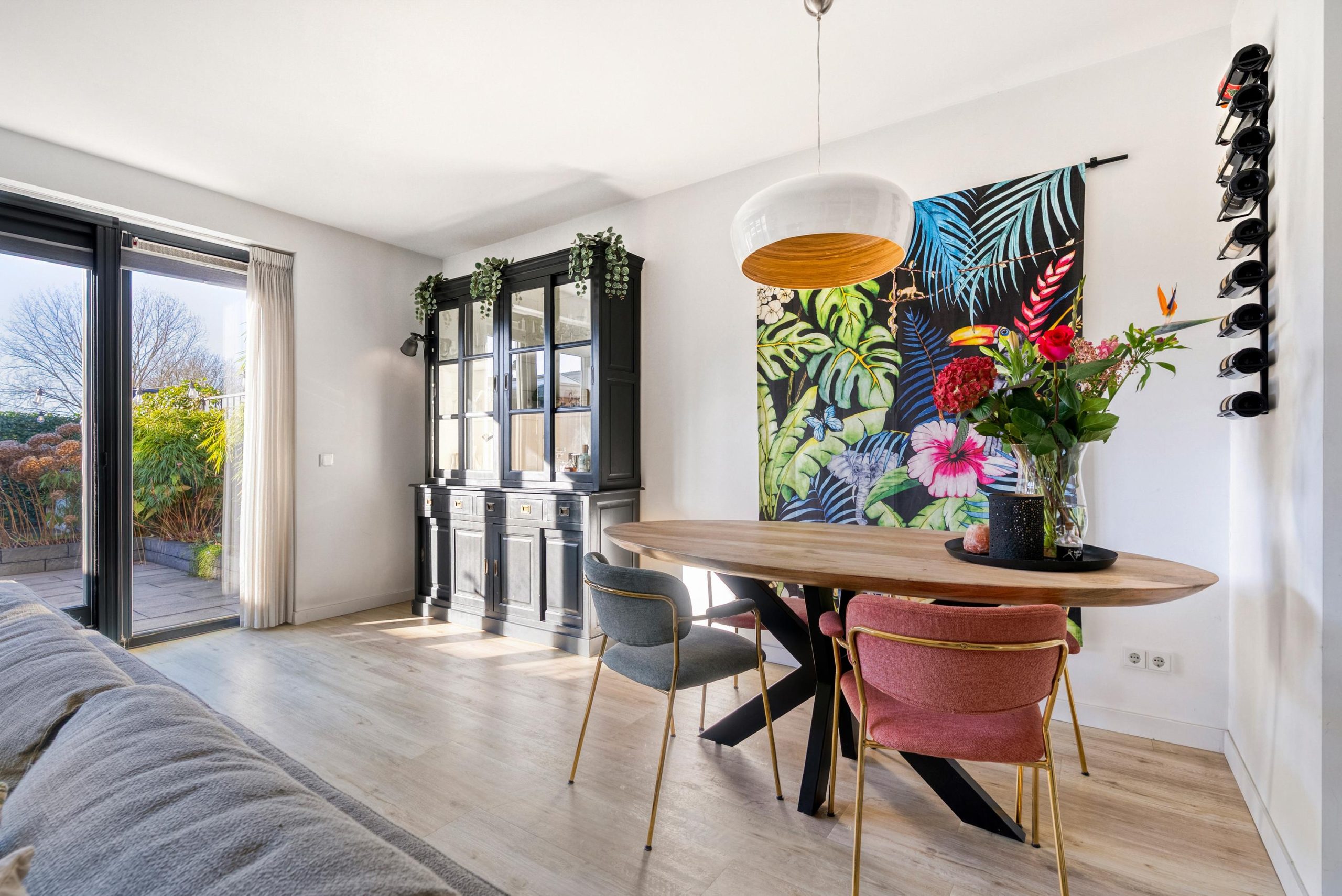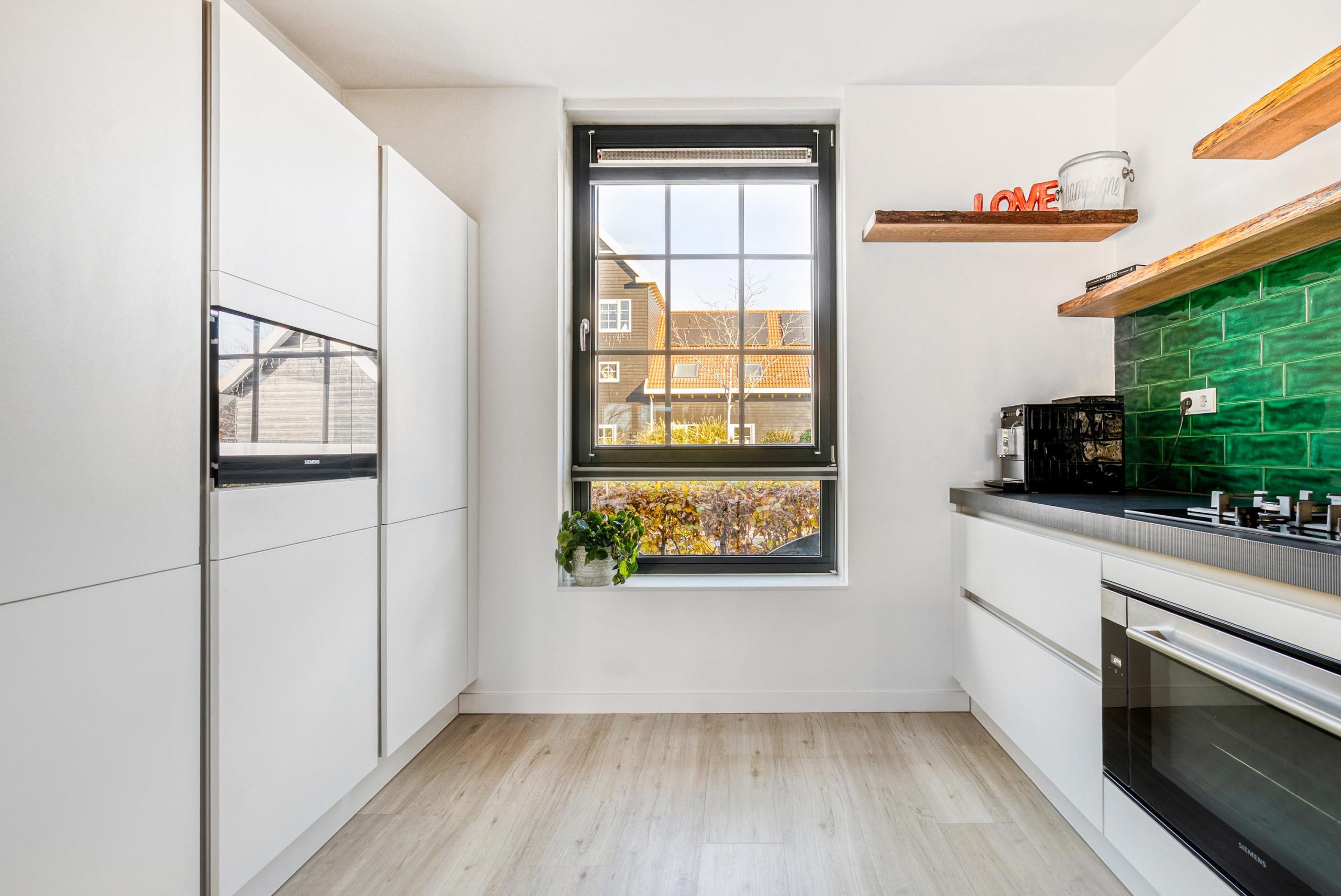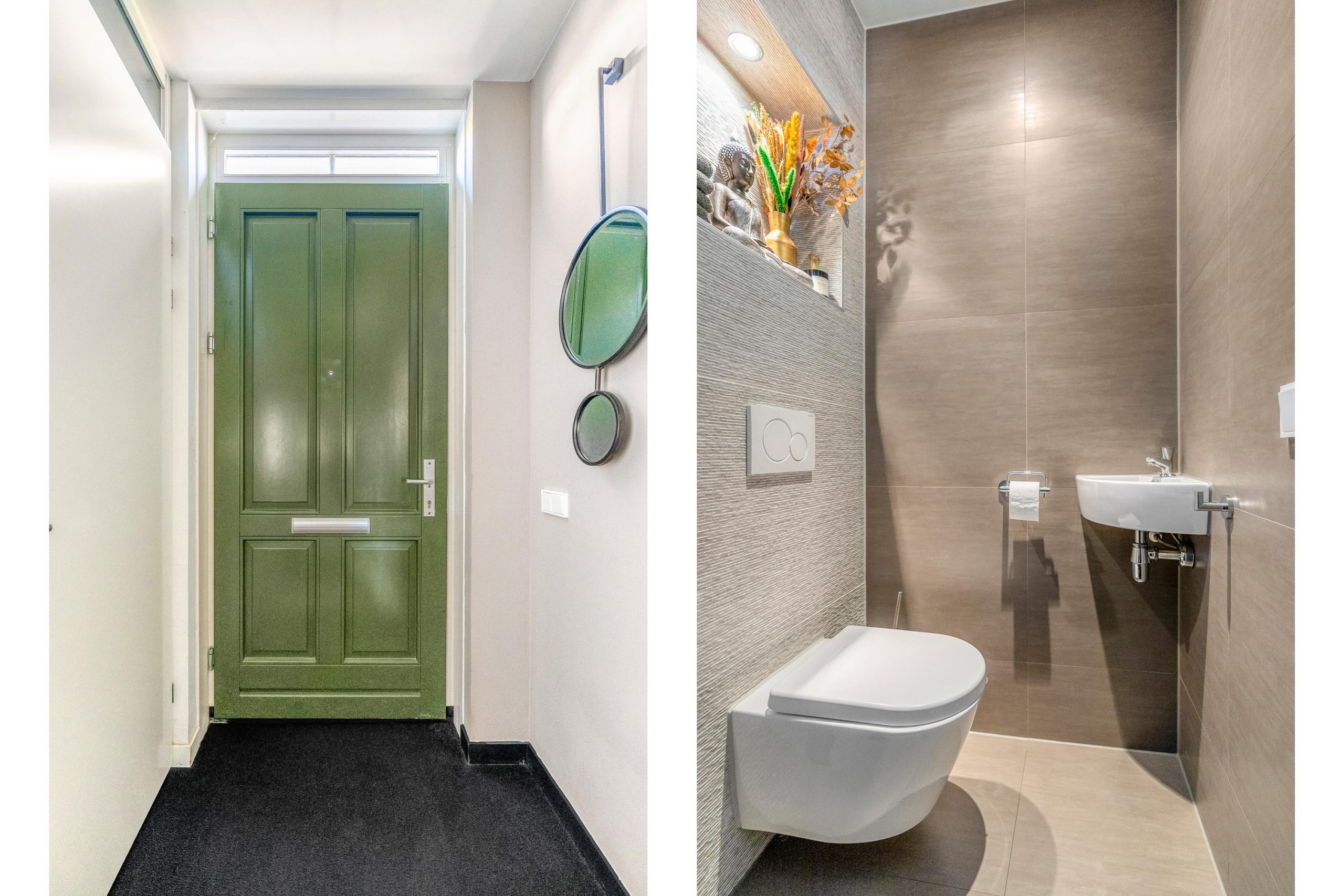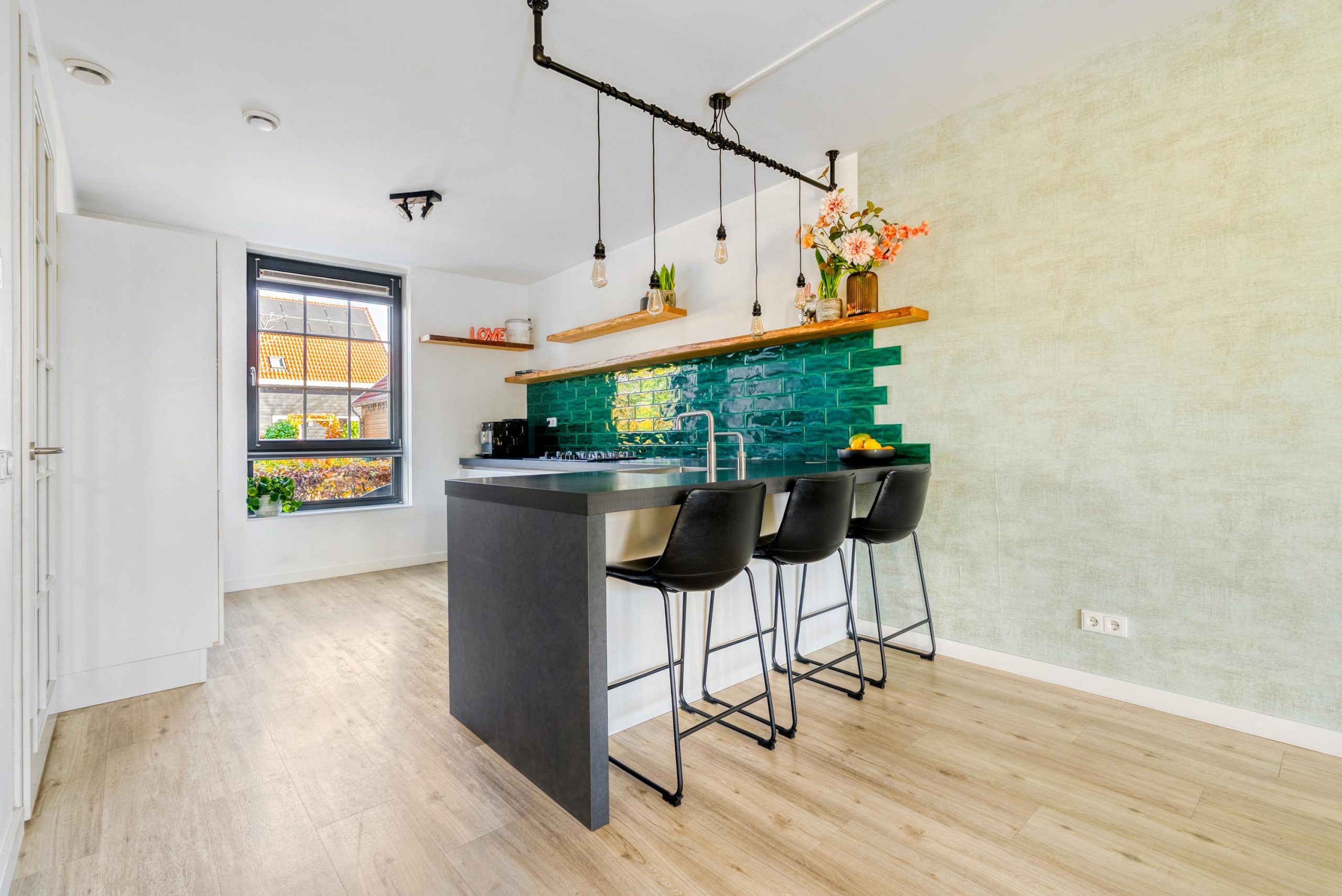 De woning is gelegen in een prachtige en rustige straat. Voor je woning heb je een eigen voortuin waar je heerlijk kan zitten met een kopje koffie in de ochtendzon. Via de entree kom je in de hal, met de meterkast en separaat modern toilet. Je hebt een handige nis voor de garderobe in de hal. Je komt daarna binnen in de woonkamer met open keuken. De moderne en luxe keuken is gelegen aan de voorzijde van de woning en is ruim. Je hebt veel opbergruimte en natuurlijk alle inbouwapparatuur die je mag verwachten van een hedendaagse keuken, denk aan: koel-vriescombinatie, combi-magnetron, vaatwasser, extra brede oven, 5-pits gasfornuis en kokend waterkraan (Quooker). Daarnaast heeft de keuken een bar gedeelte waar je gezellig aan kan zitten.