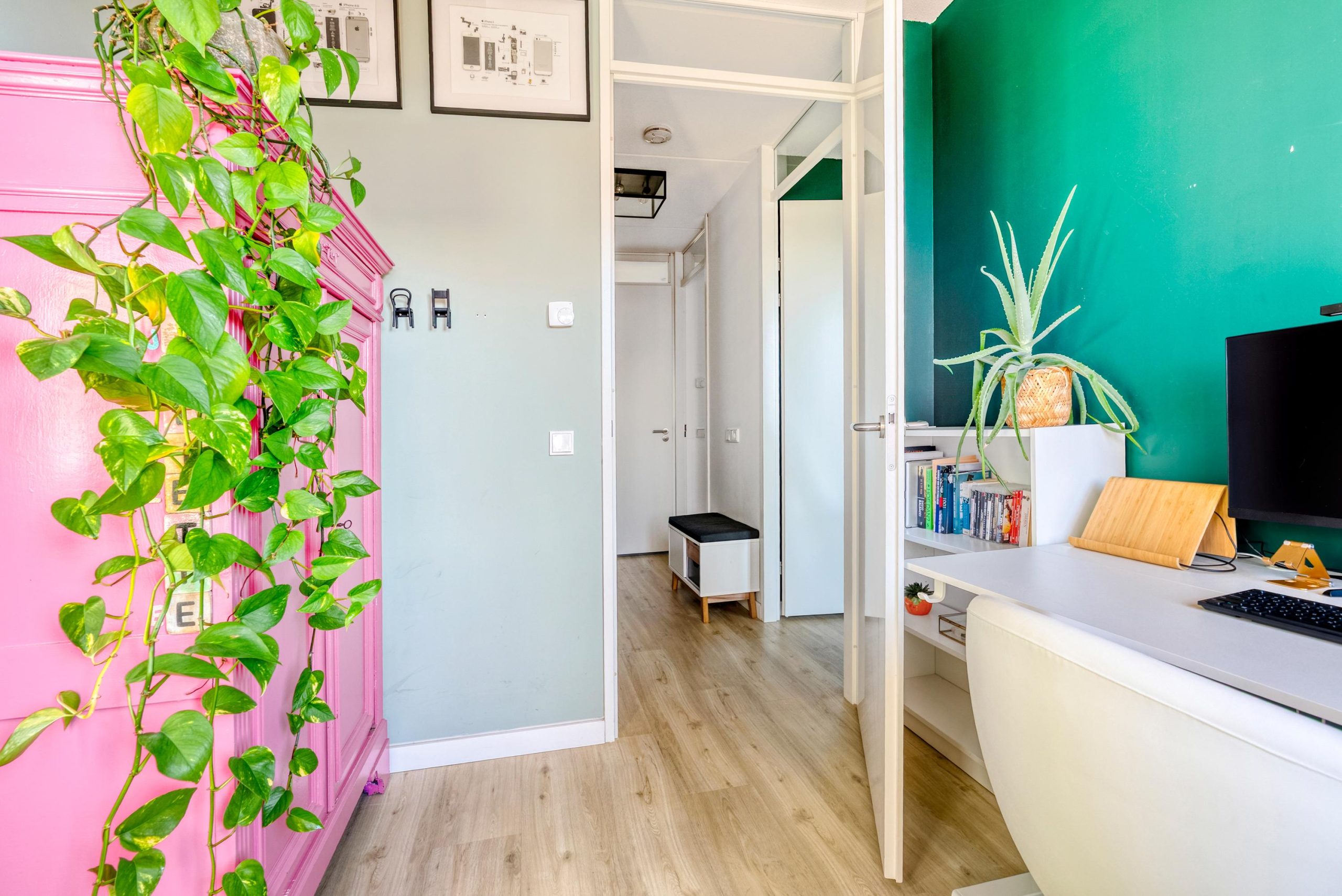 De woonkamer is ruim, alle wanden zijn keurig strak gestuct eveneens als het plafond. Je beschikt over een trapkast en daarnaast heb je een handige ingebouwde kast met bureau, zodat je optimaal van de ruimte gebruik maakt.