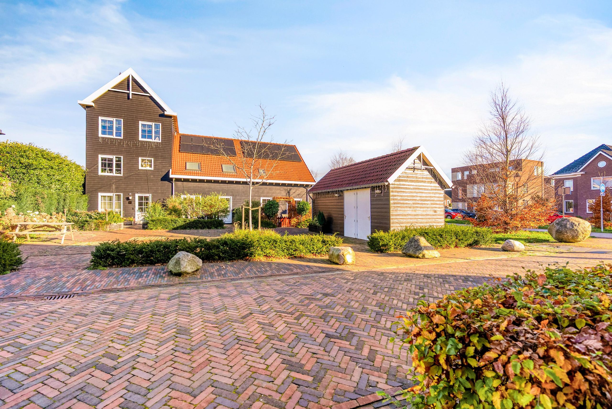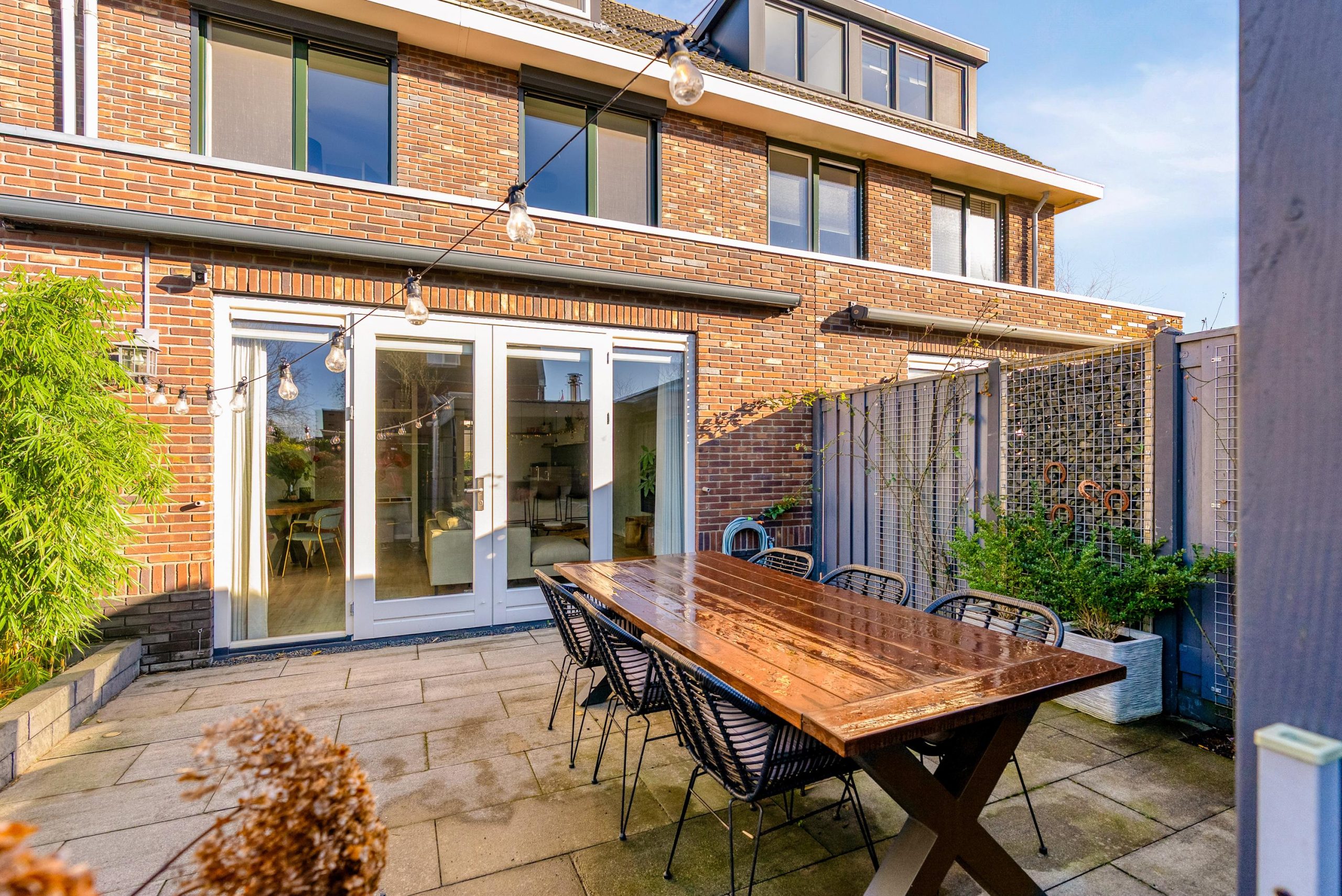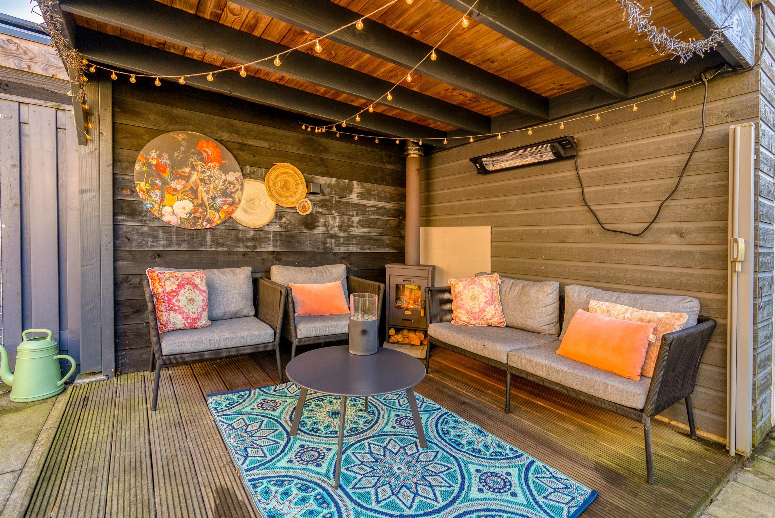Middels de openslaande deuren kom je in de prachtig aangelegde tuin. De overkapping achterin de tuin is een fijne plek om vroeg zomer tot laat in het najaar heerlijk nog te zitten met de openhaard aan. Ook op warme dagen is dit een fijne plek die schaduw biedt. De tuin is namelijk gelegen op het zonnige zuidwesten waardoor je het merendeel van de dag kan genieten van de zon in je tuin. Een tuin is niet compleet zonder berging, deze is gelegen achterin de tuin en tevens beschik je over een achterom.
