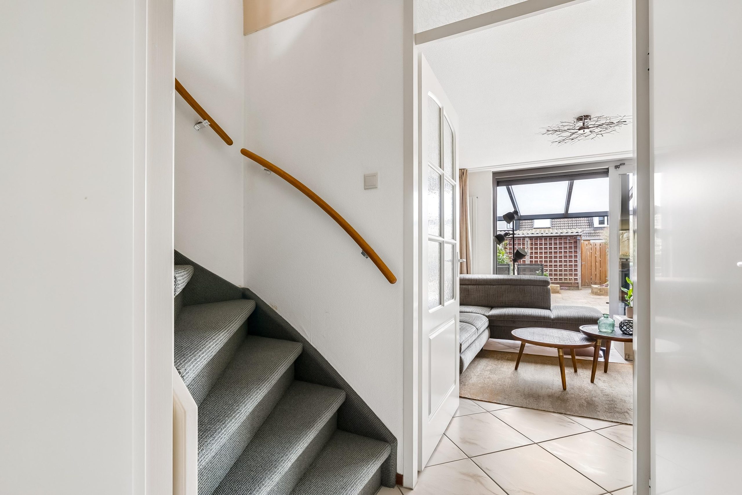 Via de entree kom je in de hal met meterkast en toilet. Je komt vervolgens binnen in de lichte woonkamer met een mooie grote schuifpui. Je kijkt vanuit hier heerlijk weg je tuin in. De benedenverdieping is voorzien van vloerverwarming.
