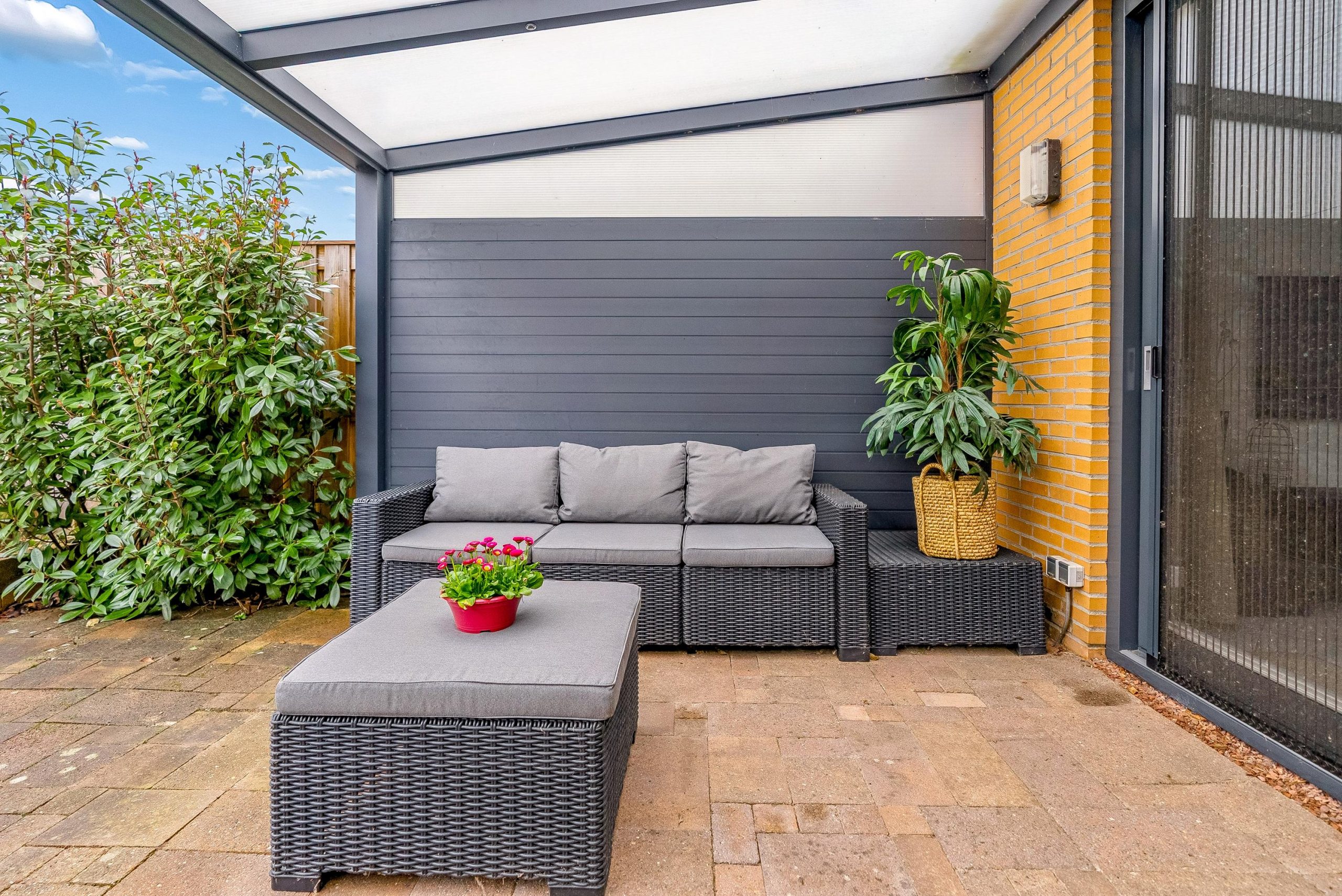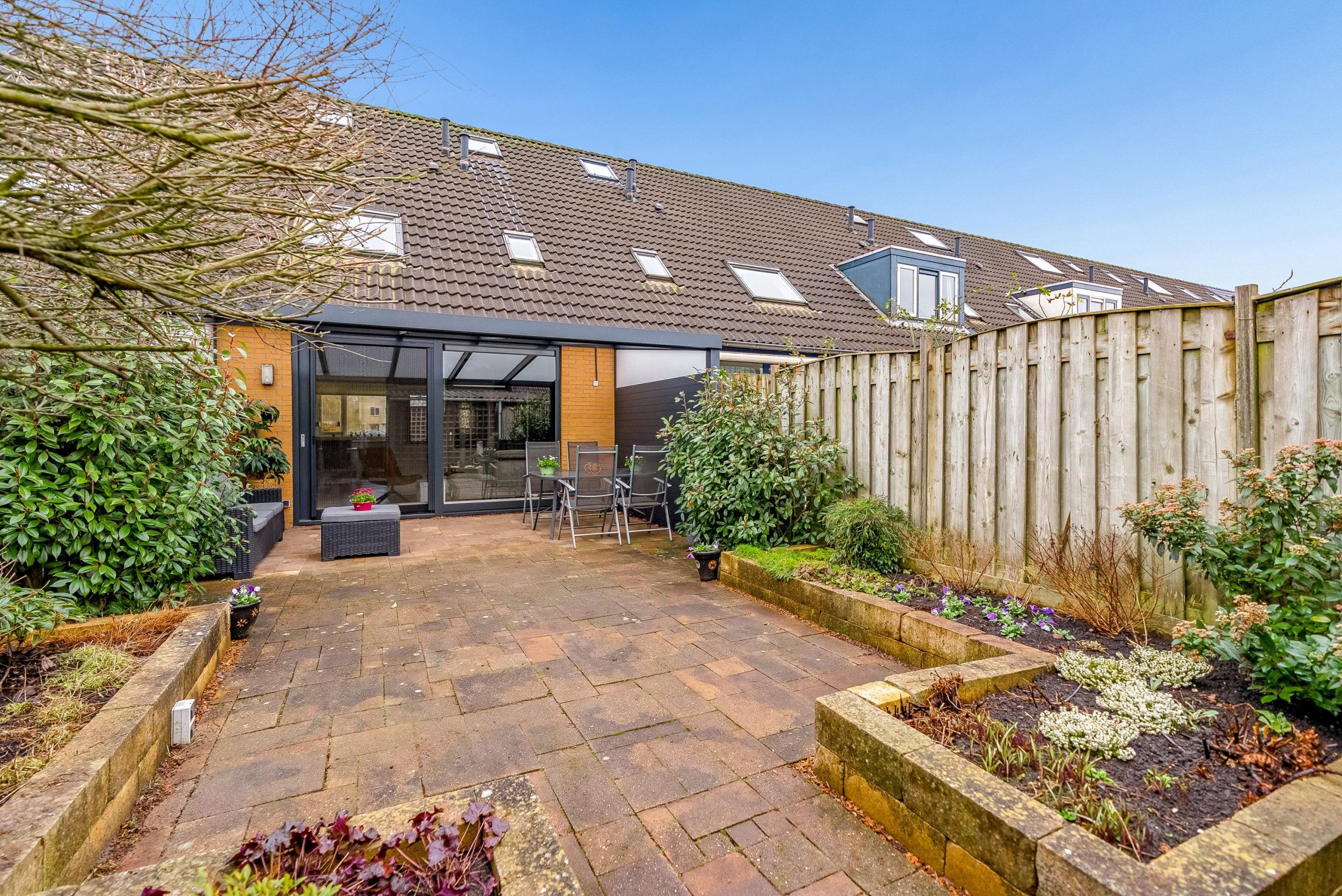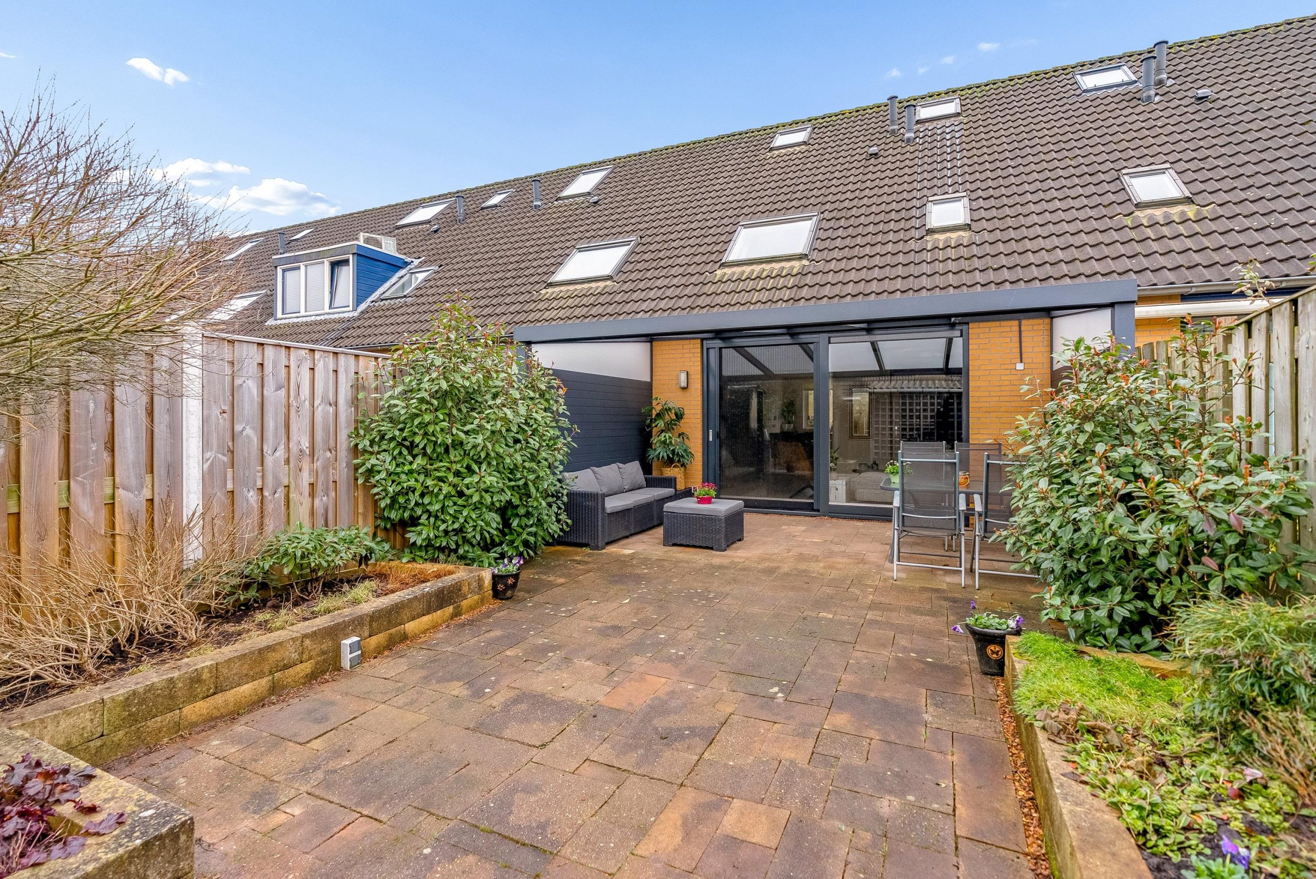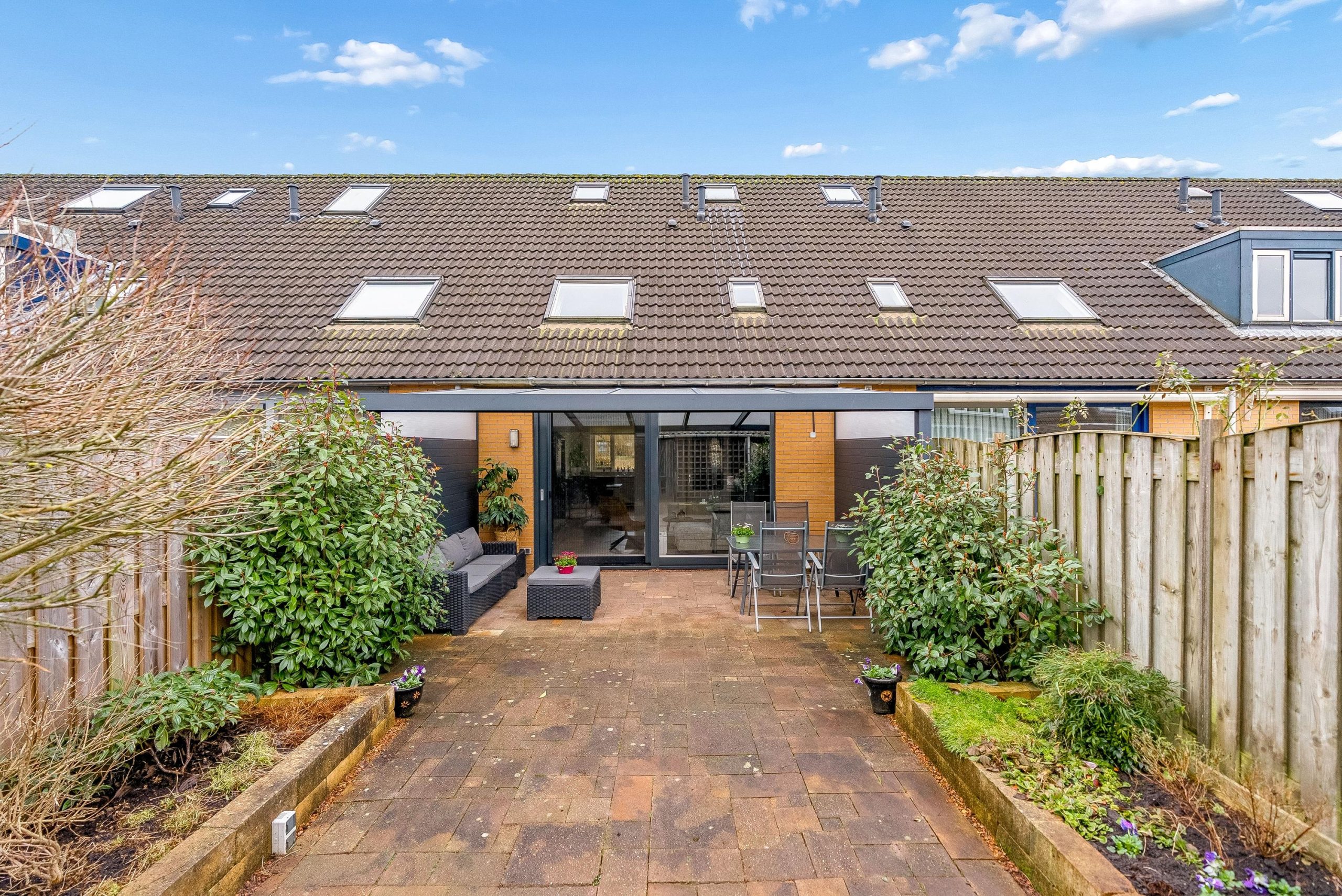 In 2023 is de overkapping aan de achterzijde geplaatst, compleet met sfeervolle inbouwspots. Dit vormt een prachtig verlengstuk van de woning en maakt het mogelijk om ook op minder zonnige dagen heerlijk buiten te zitten en te genieten met familie en vrienden.
