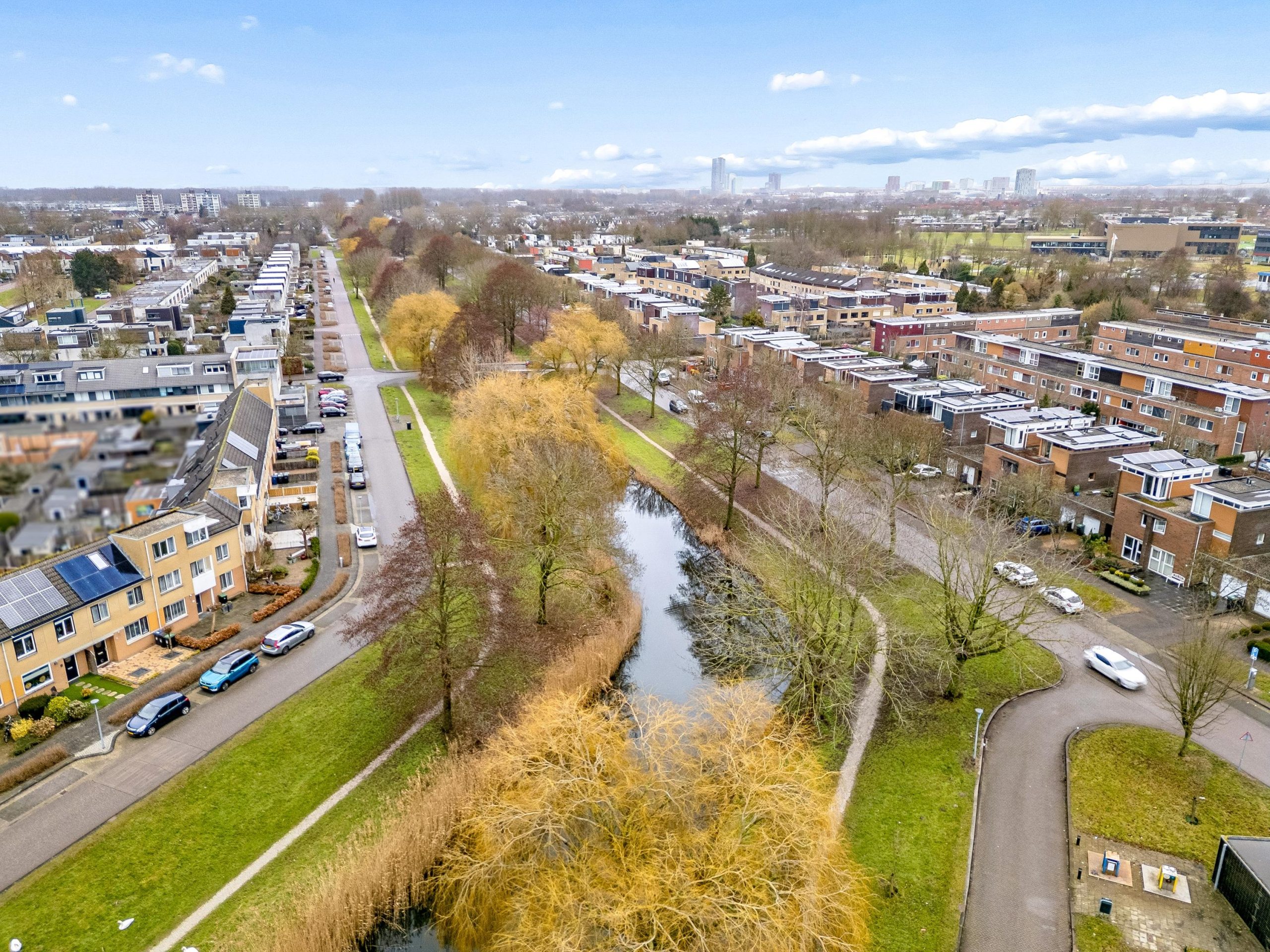 De Literatuurwijk is een groene, ruim opgezette wijk. Qua ligging en bereikbaarheid ideaal. Zo ben je snel op de A6 richting Amsterdam, Het Gooi of Utrecht. De bus aansluitingen zijn op 2 minuten lopen en ook de trein en het stadshart van Almere zijn dichtbij. Op de fiets zal dit niet meer dan 10 minuten kosten. Ook het winkelcentrum en NS station van Almere Muziekwijk zijn met 10 minuten fietsen te bereiken.