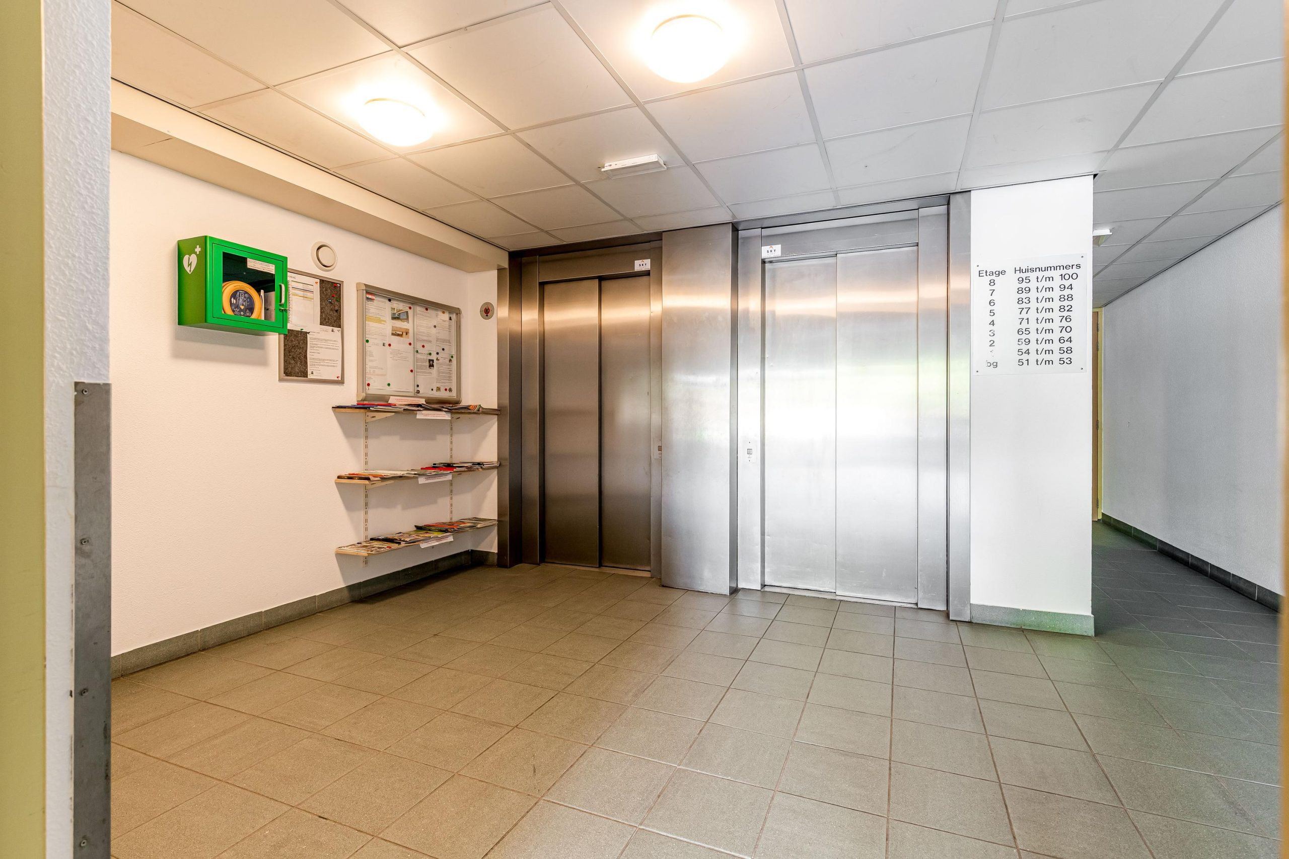 Nette centrale hal met brievenbussen, videofoon installatie, trappenhuis en twee liften. Op de begane grond is een gemeenschappelijke ruimte aanwezig voor de fietsen. Op het afgesloten parkeerterrein heb je de beschikking over een privé parkeerplaats. Bij de parkeerplaats zijn de voorbereidingen voor het plaatsen van een elektrische laadpaal al gedaan. Het is enkel nog het plaatsen van een laadpaal voor de elektrische auto.