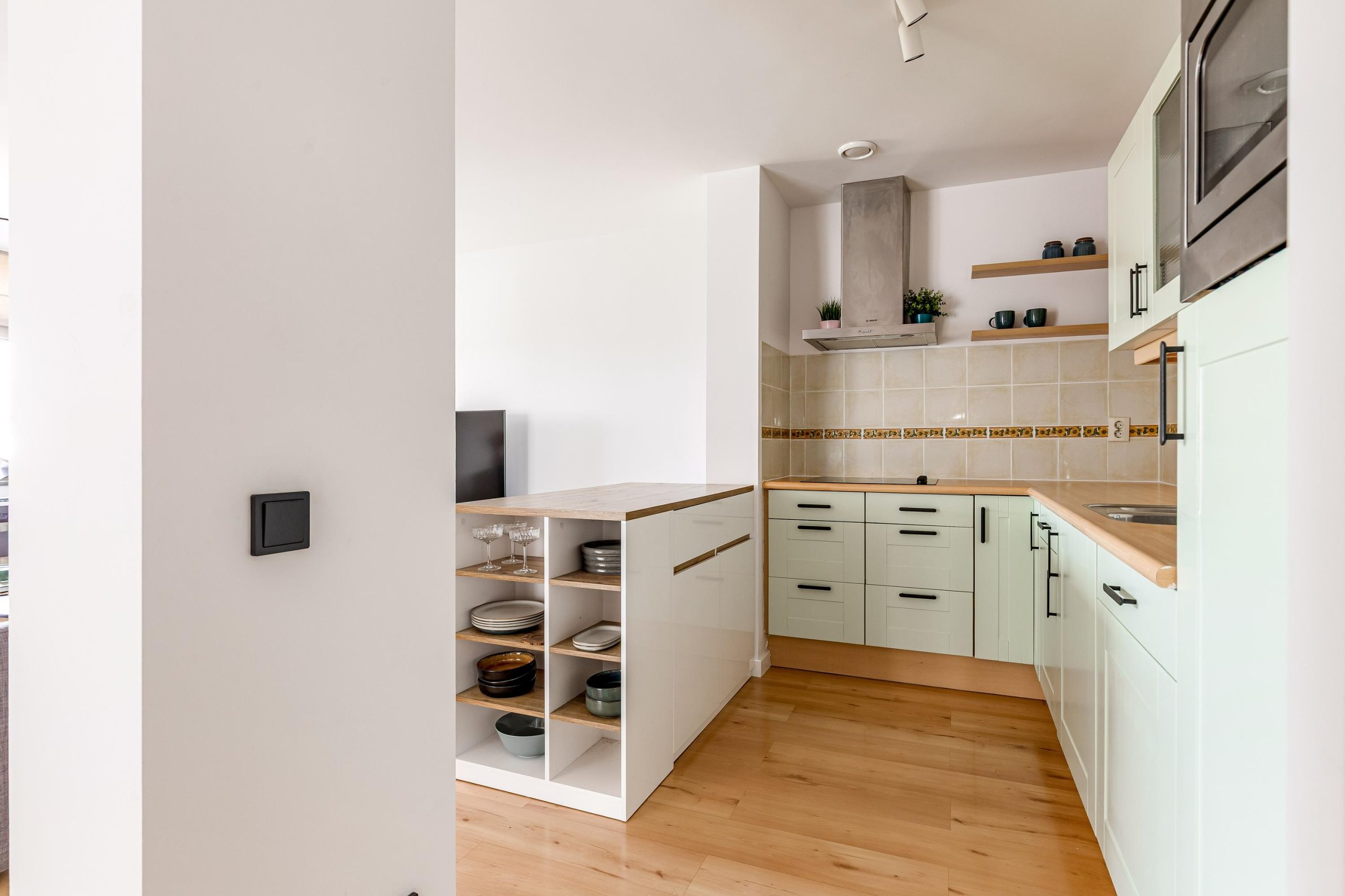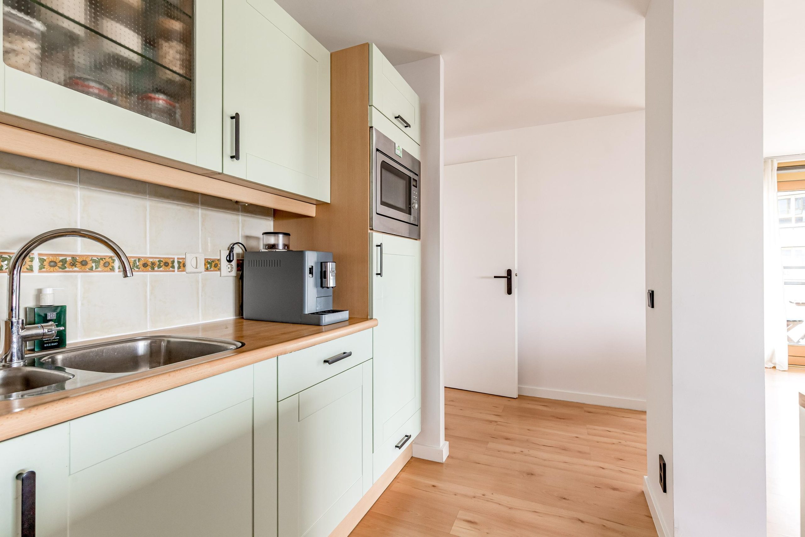 From the living room you have access to the balcony. This spacious balcony is a lovely place to start the day with a cup of coffee or to end it with a drink with family and friends. The balcony faces northwest, so you have sun from the afternoon until the evening.