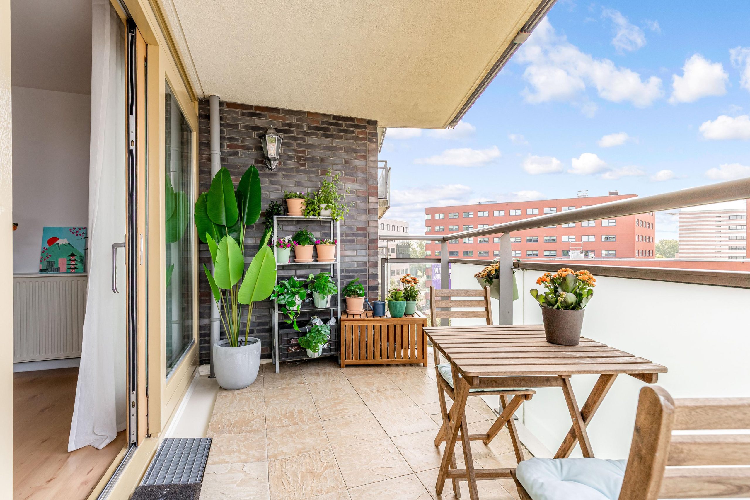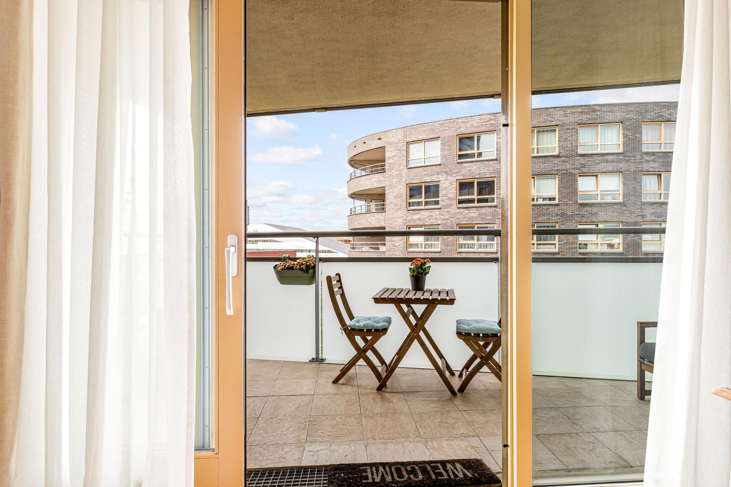 Via de woonkamer heb je toegang tot het balkon. Dit ruime balkon is een heerlijke plek om de dag te starten met een kopje koffie of te eindigen met een gezellig borrel met familie en vrienden. Het balkon is gelegen op het noord-westen. Je hebt hier vanaf de middag tot de avond de zon.