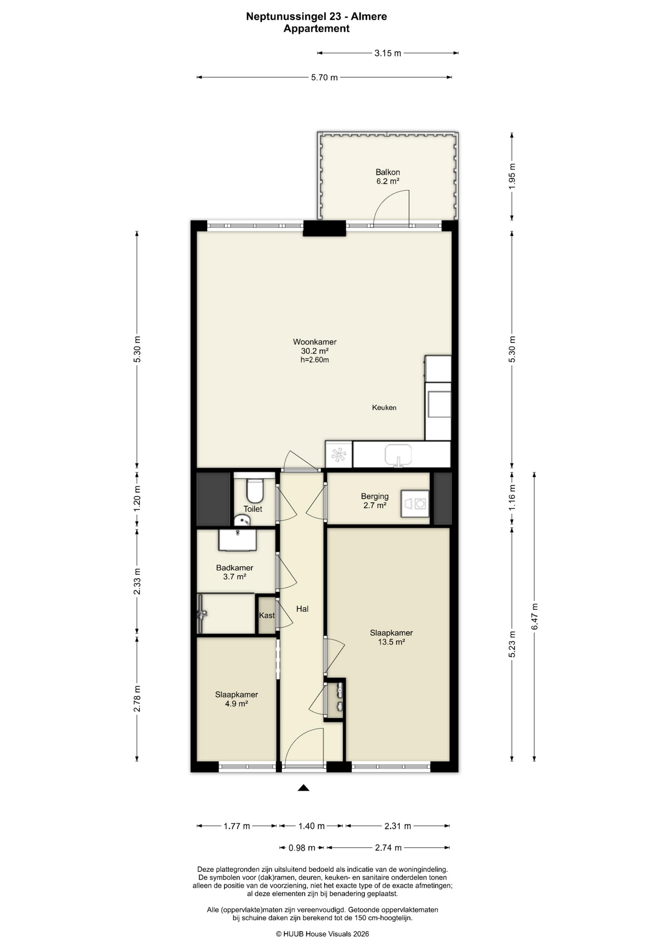 - Woonoppervlakte ca. 66m2