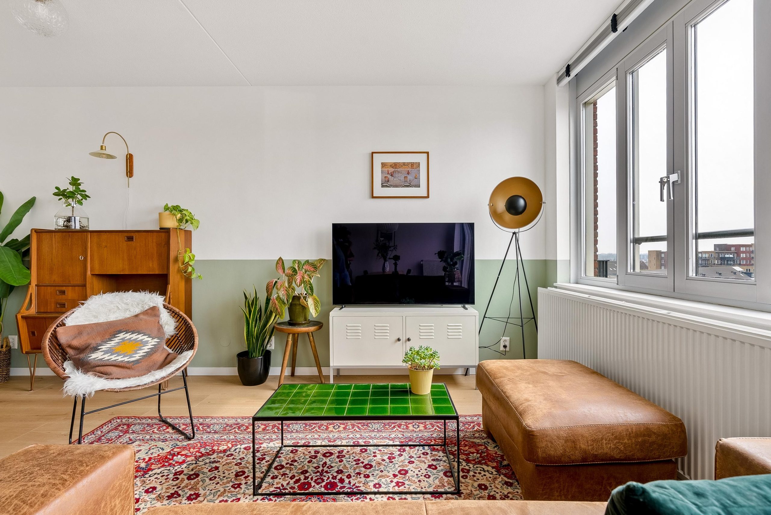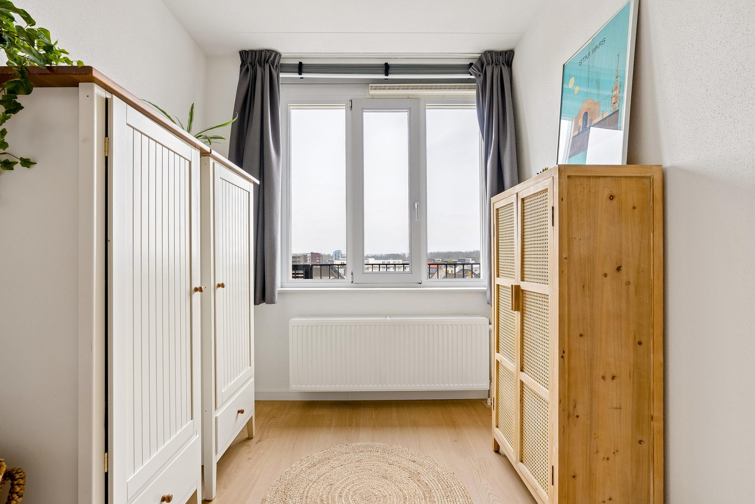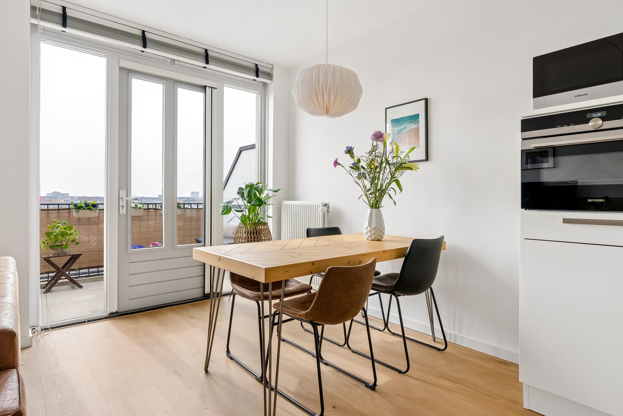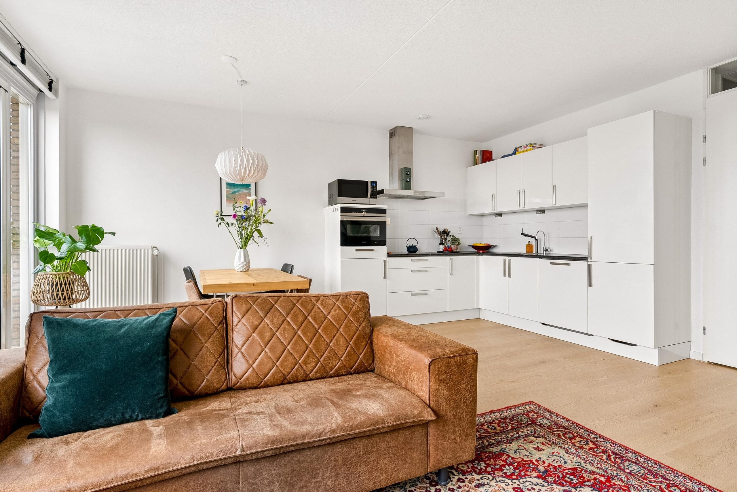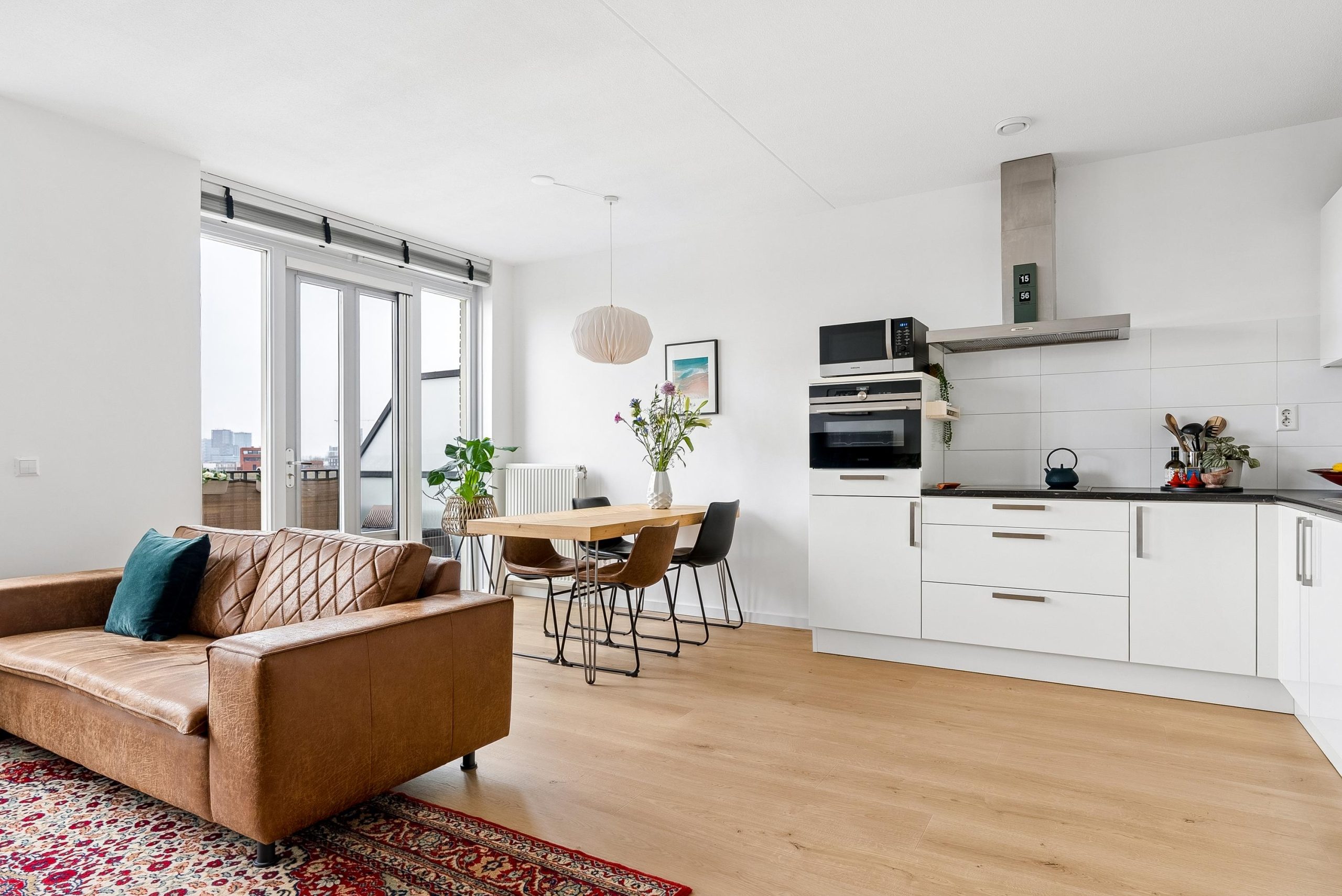 De woonkamer is een lichte en fijne leefruimte, dankzij de grote raampartijen en de gunstige ligging op de zon. Hier geniet je de hele dag van een prettige lichtinval. De ruimte is goed in te delen met een ruimte eettafel en gezellig zithoek. Via de woonkamer stap je zo het balkon op, welke is gelegen op het zuidwesten. Een heerlijke plek om zowel overdag als in de avond te ontspannen in de zon, met veel privacy en een mooi uitzicht over Poort.