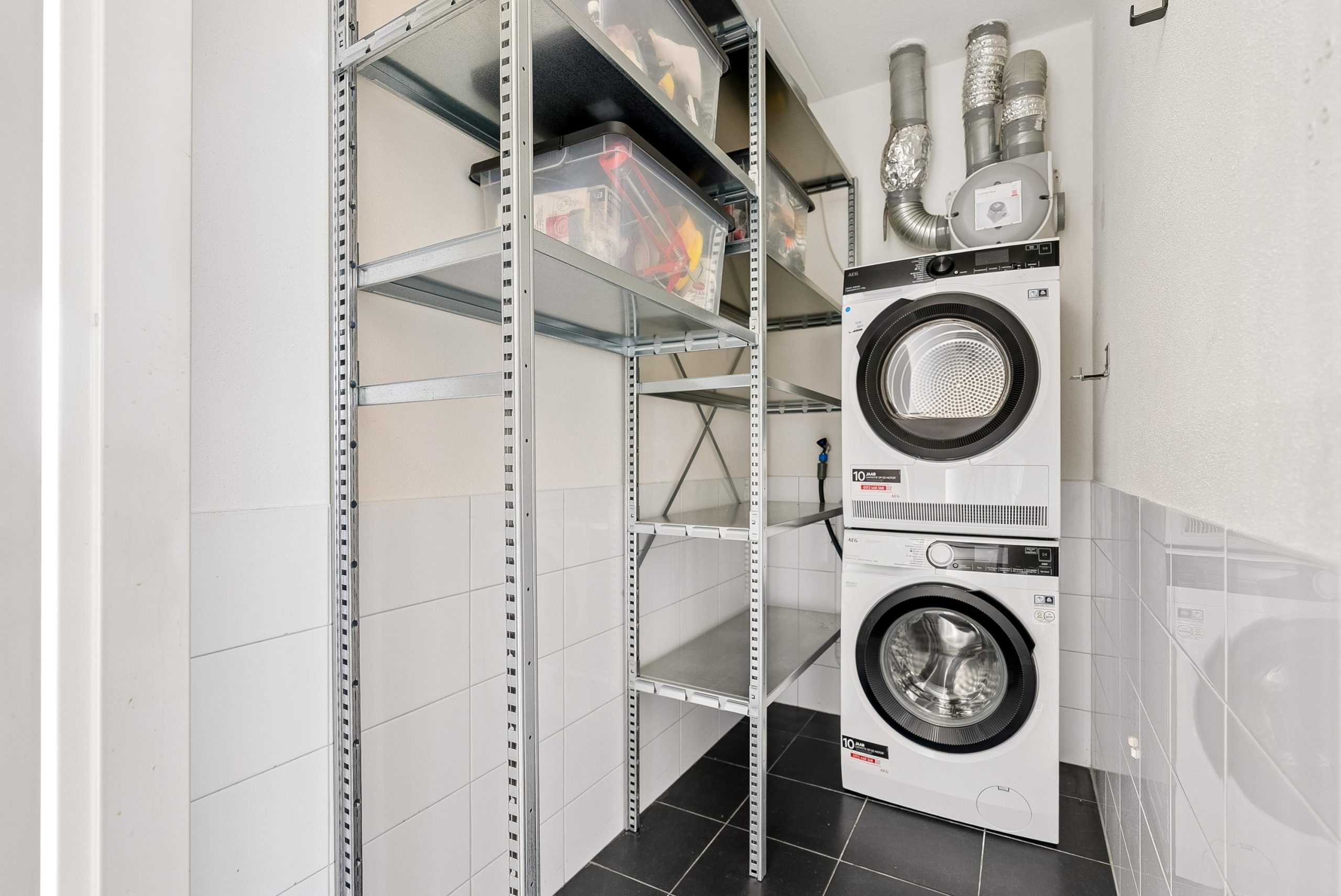 Het separate washok biedt ruimte voor de wasmachine en droger, en hier vind je tevens de mechanische ventilatiebox en extra bergruimte.