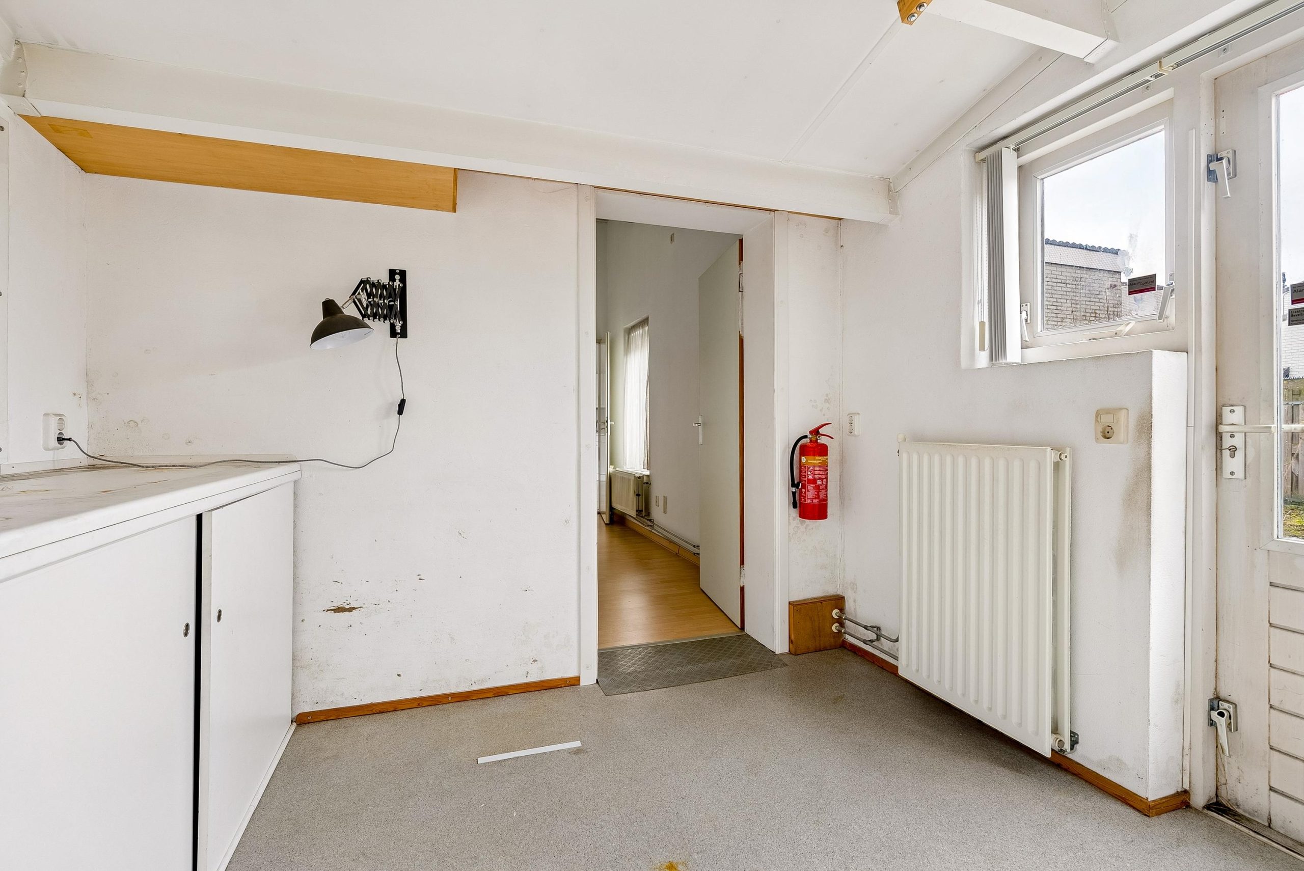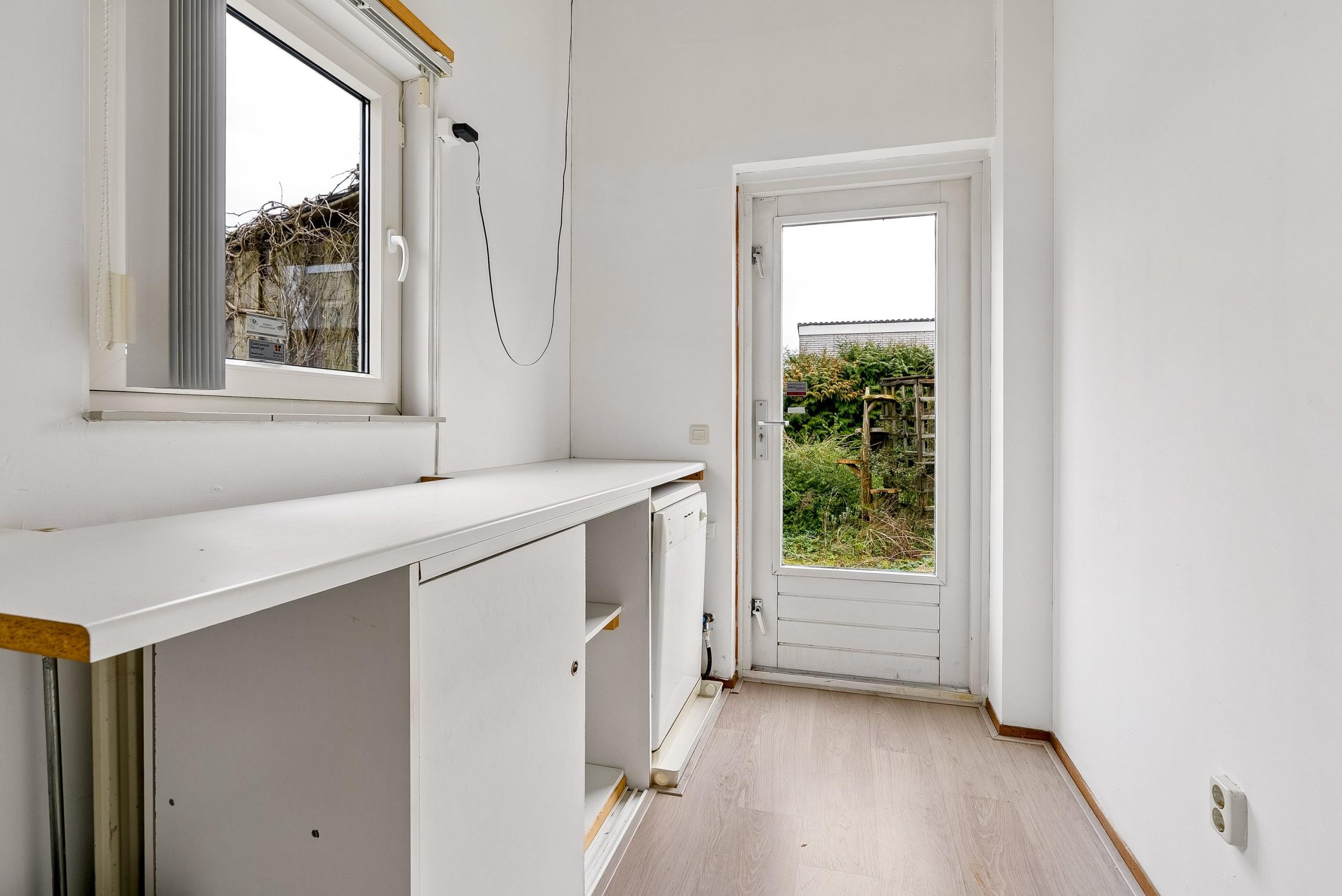 Via de entree kom je in de hal met meterkast en garderobe. Direct links bevindt zich een praktische ruimte die momenteel wordt gebruikt als bijkeuken. Hier is plek voor opbergruimte maar ook eventueel een extra koelkast, vriezer en/of wasmachine en droger. Vanuit deze ruimte heb je tevens toegang tot de tuin.