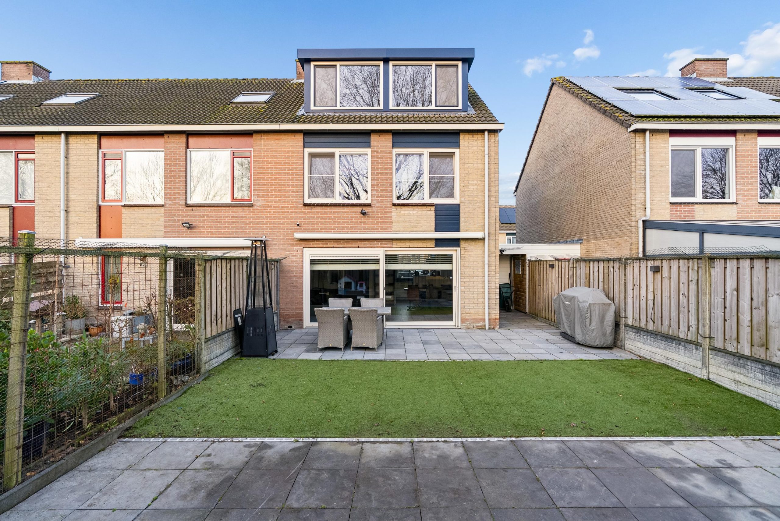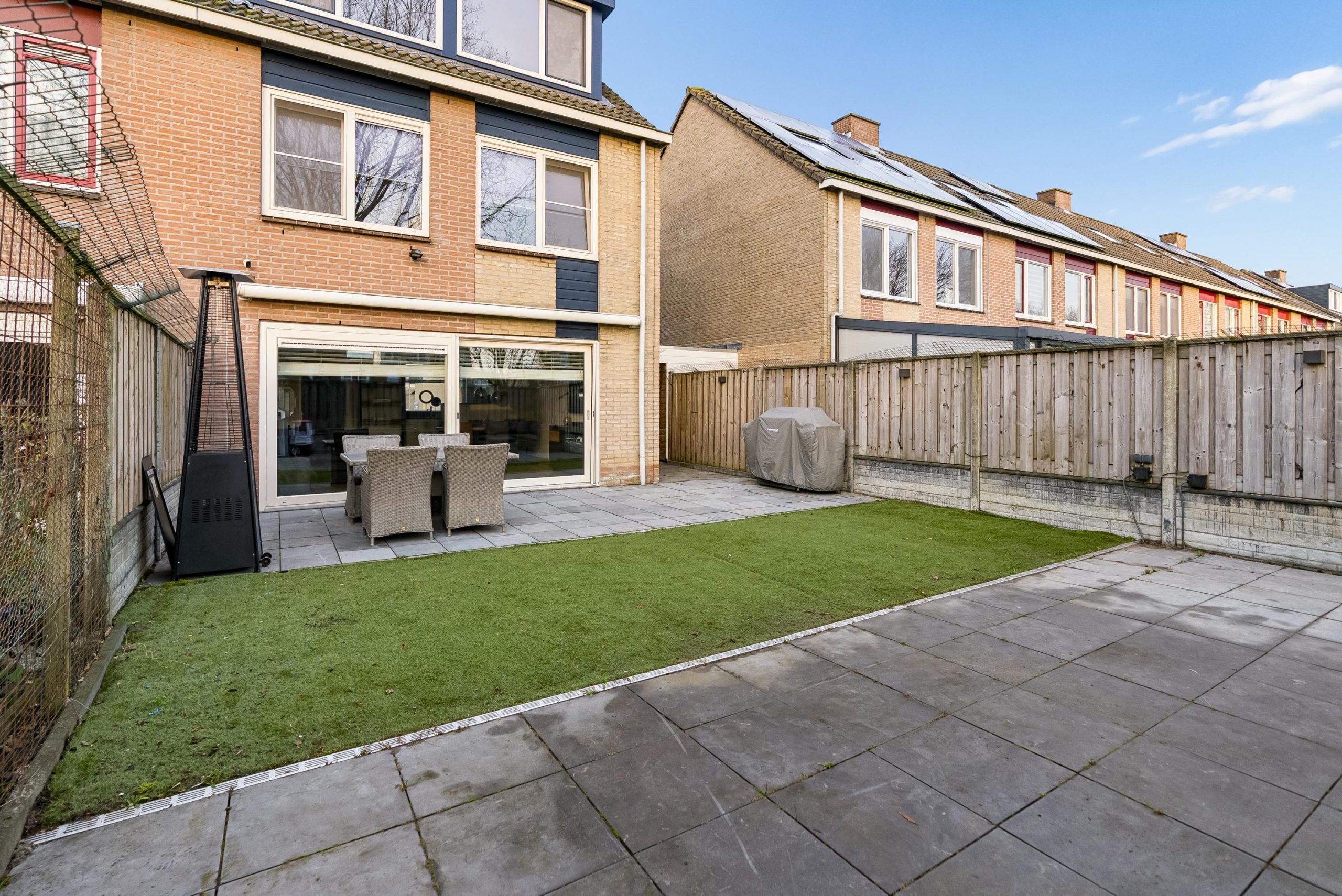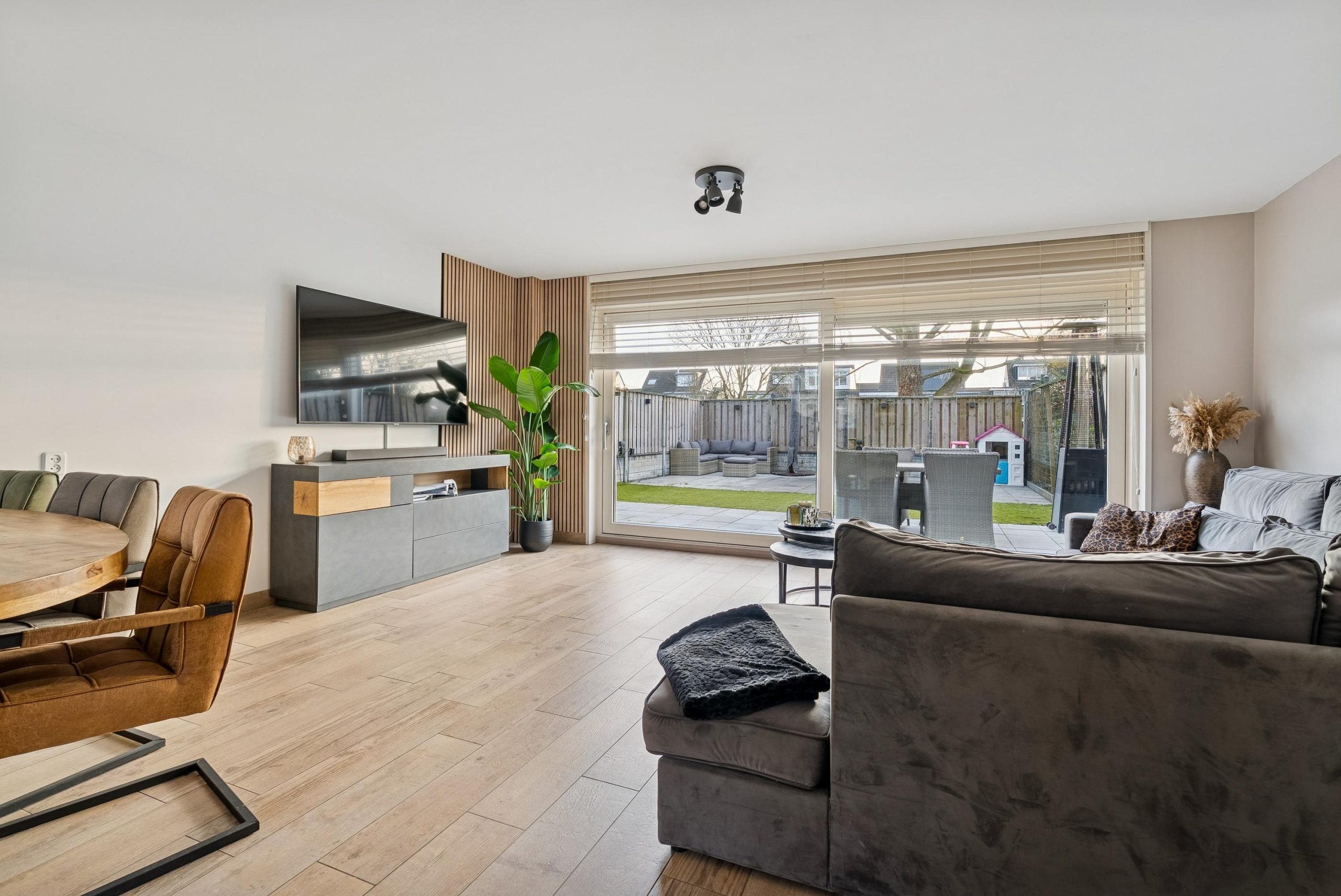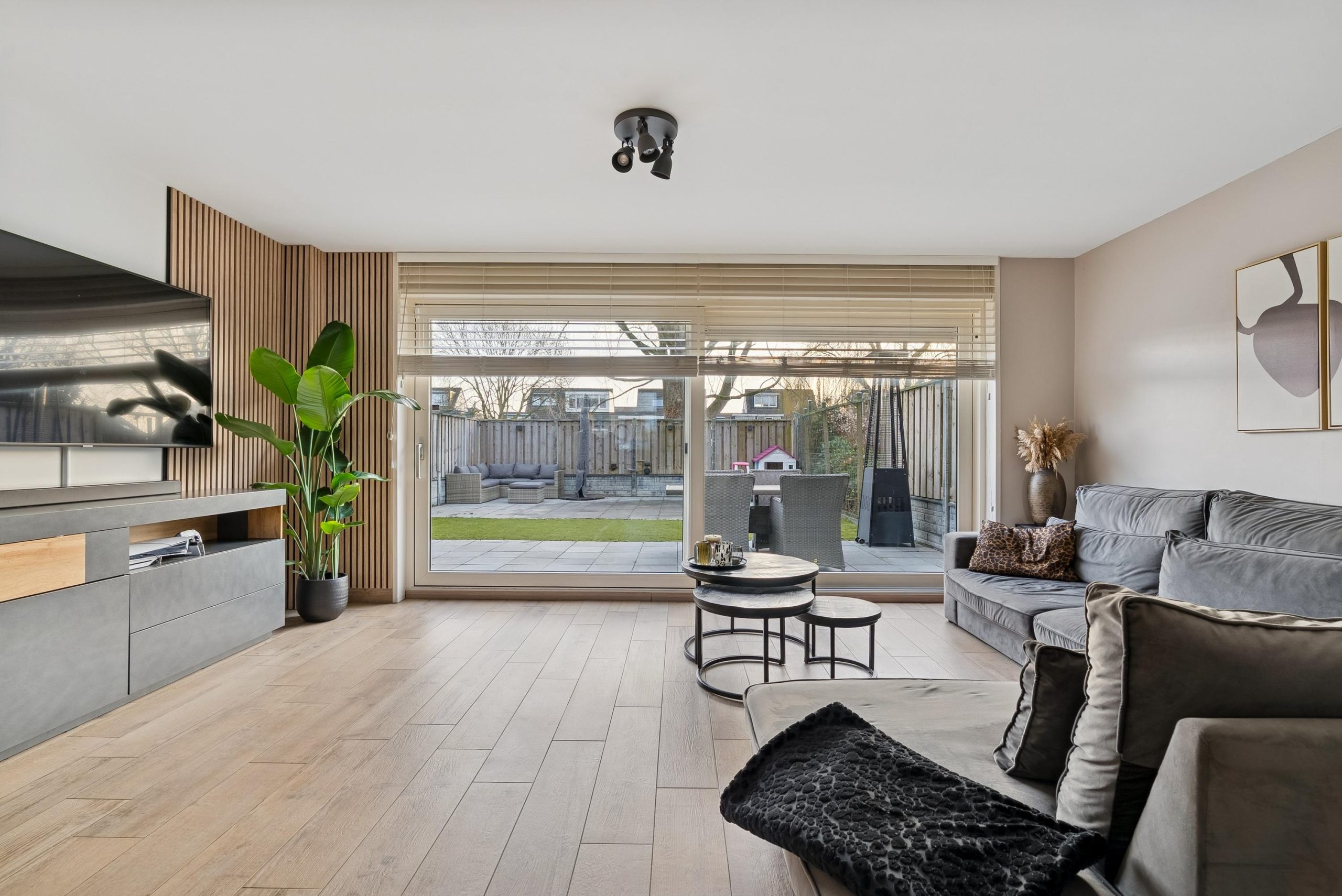Via de schuifpui stap je de ruime achtertuin in. De huidige bewoners hebben extra grond aangekocht, waardoor de tuin dieper en ruimer is dan gebruikelijk – perfect voor lange zomeravonden, spelende kinderen of een gezellige barbecue met vrienden en familie.