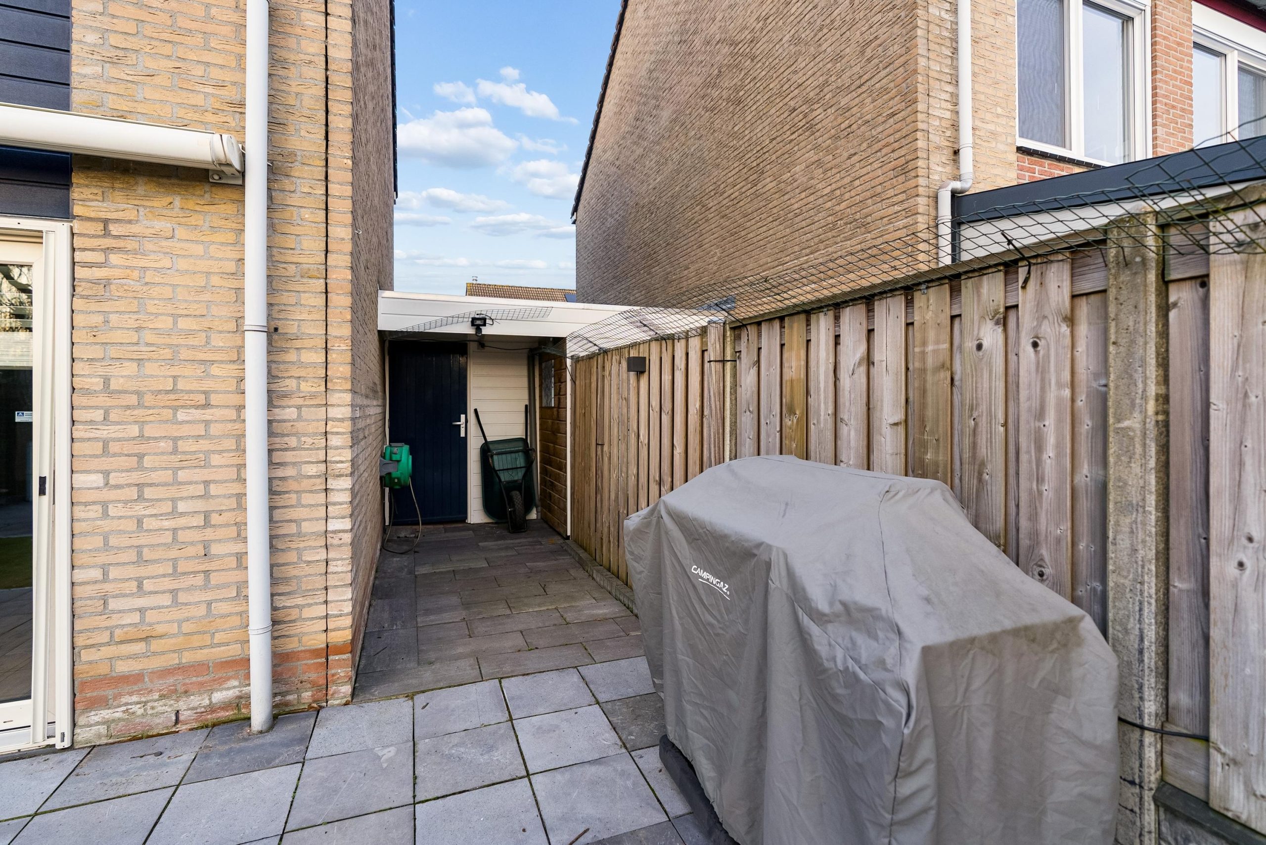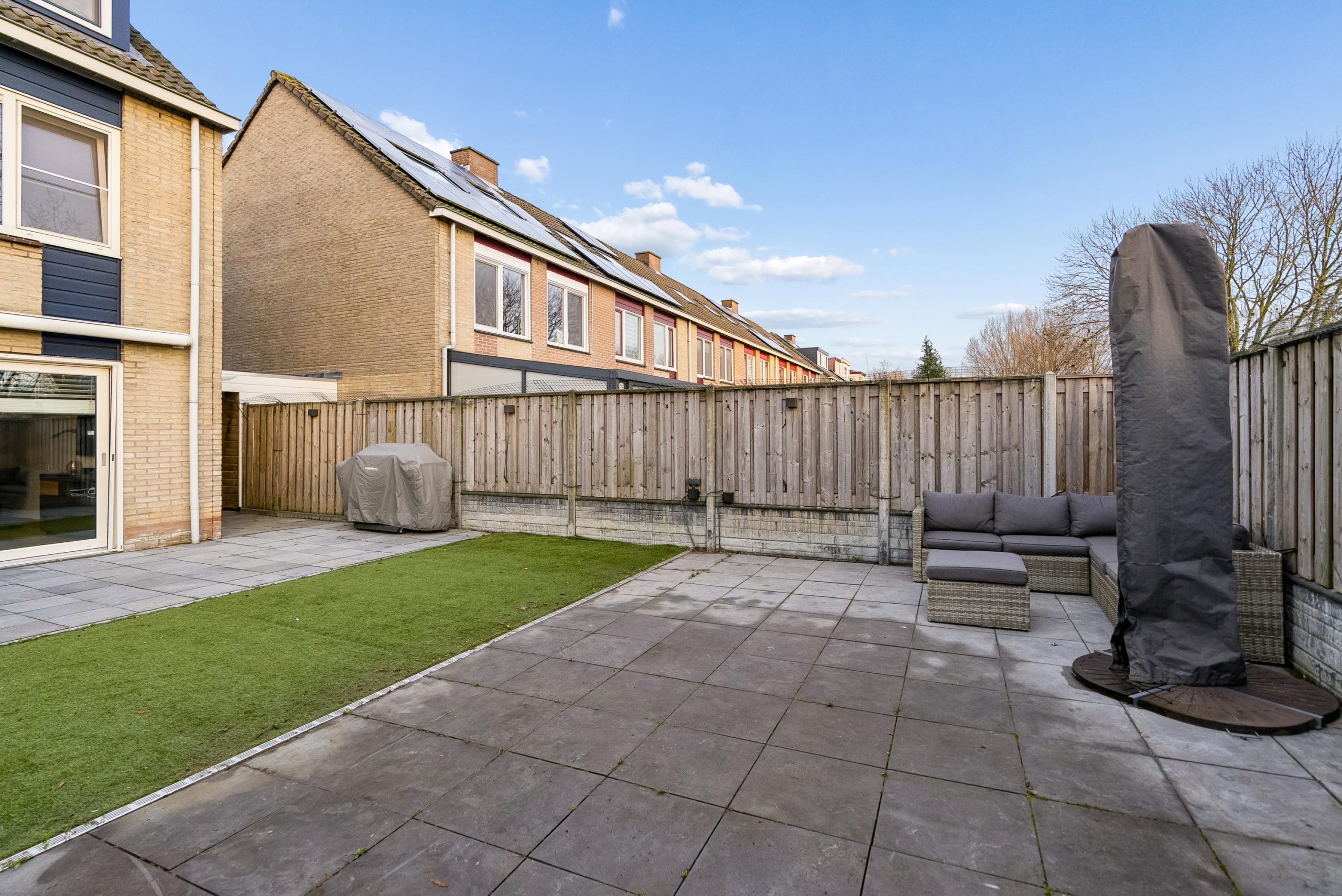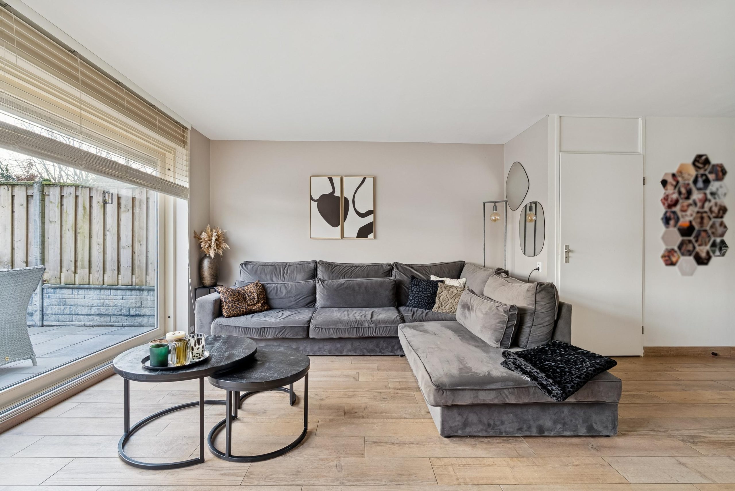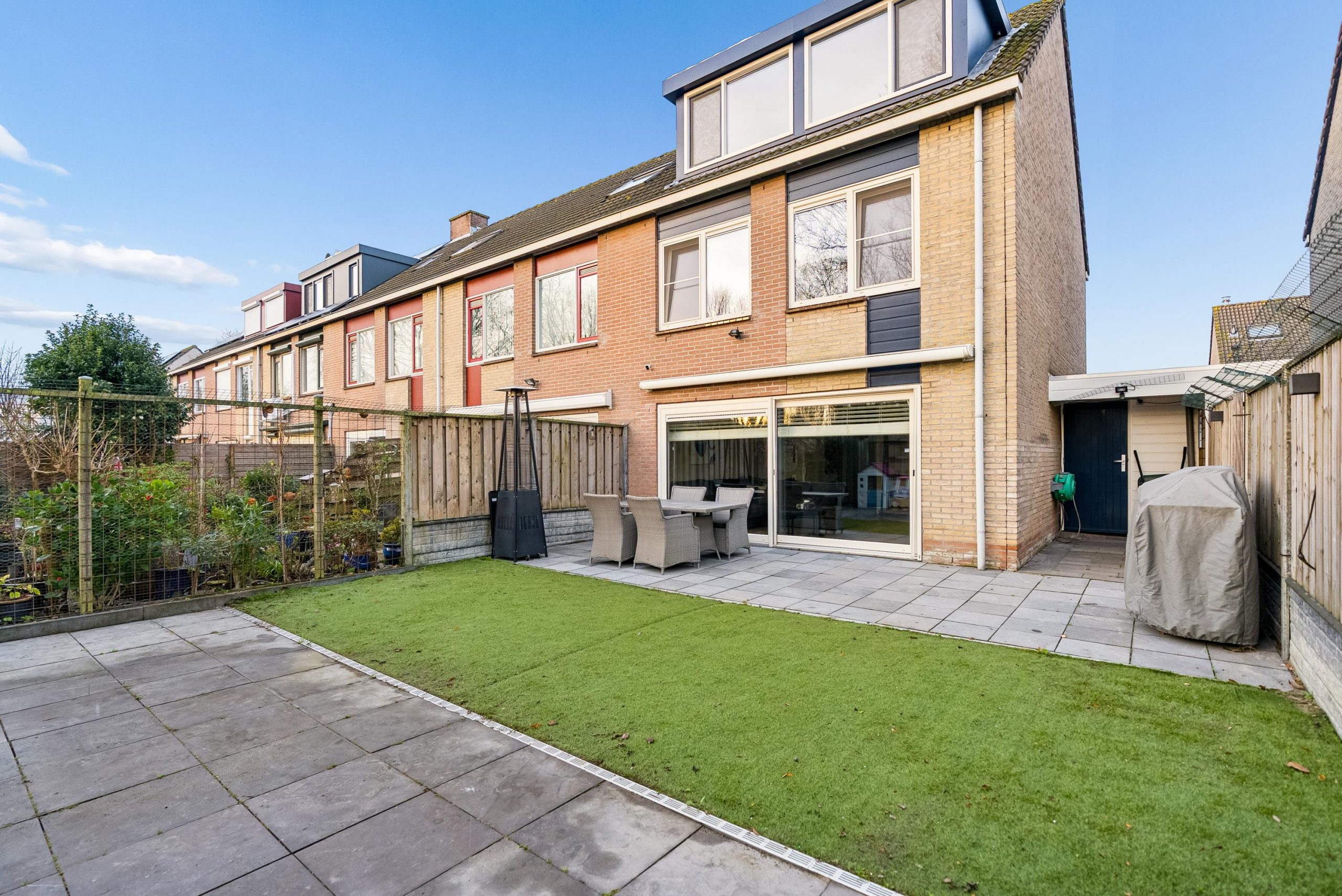 Via de schuifpui stap je de ruime achtertuin in. De huidige bewoners hebben extra grond aangekocht, waardoor de tuin dieper en ruimer is dan gebruikelijk – perfect voor lange zomeravonden, spelende kinderen of een gezellige barbecue met vrienden en familie.