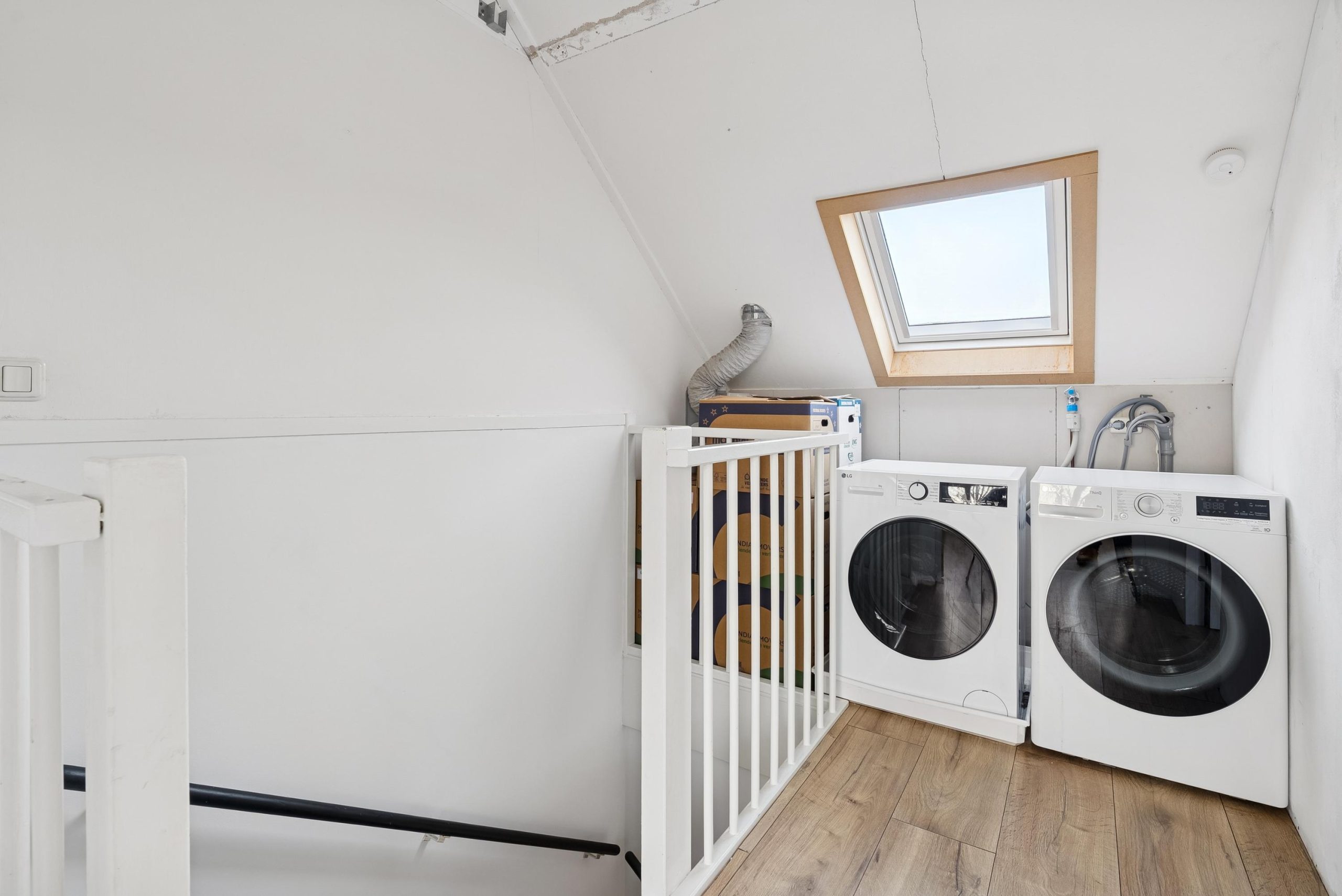Overloop met de wasmachine opstelling en toegang tot de vierde en vijfde slaapkamer. Met name de slaapkamer aan de achterzijde is licht en ruim door de geplaatste dakkapel (2023) over de gehele breedte van de woning.