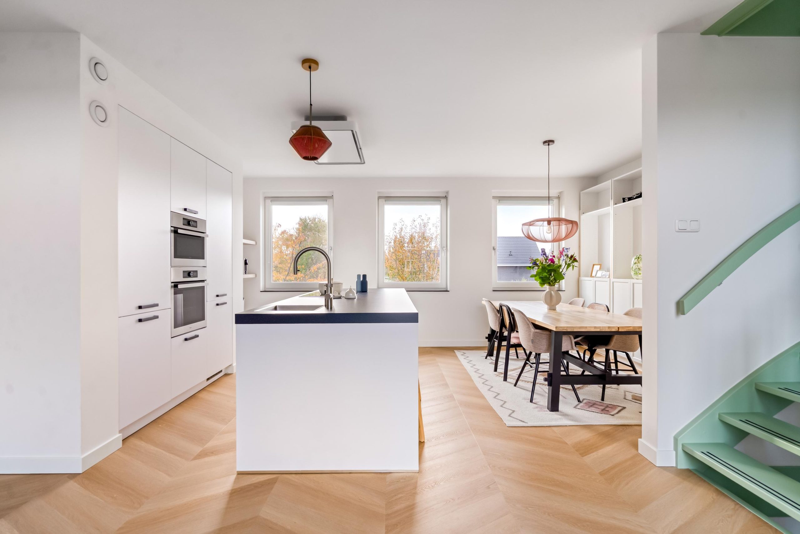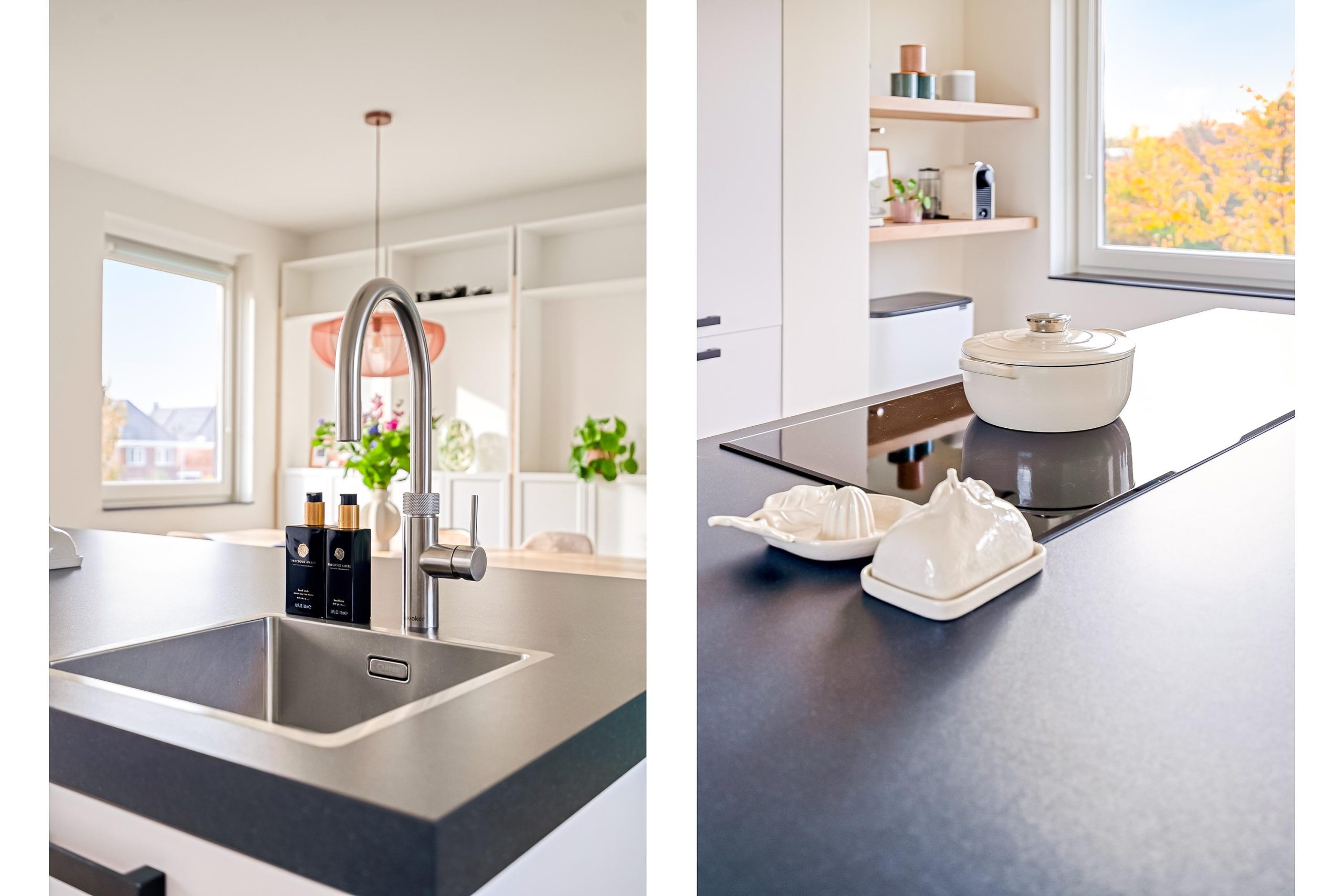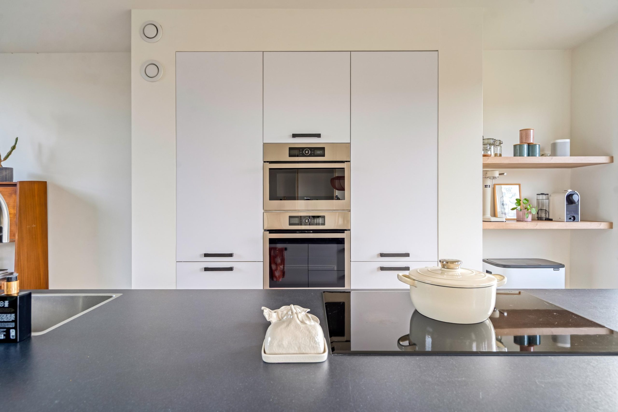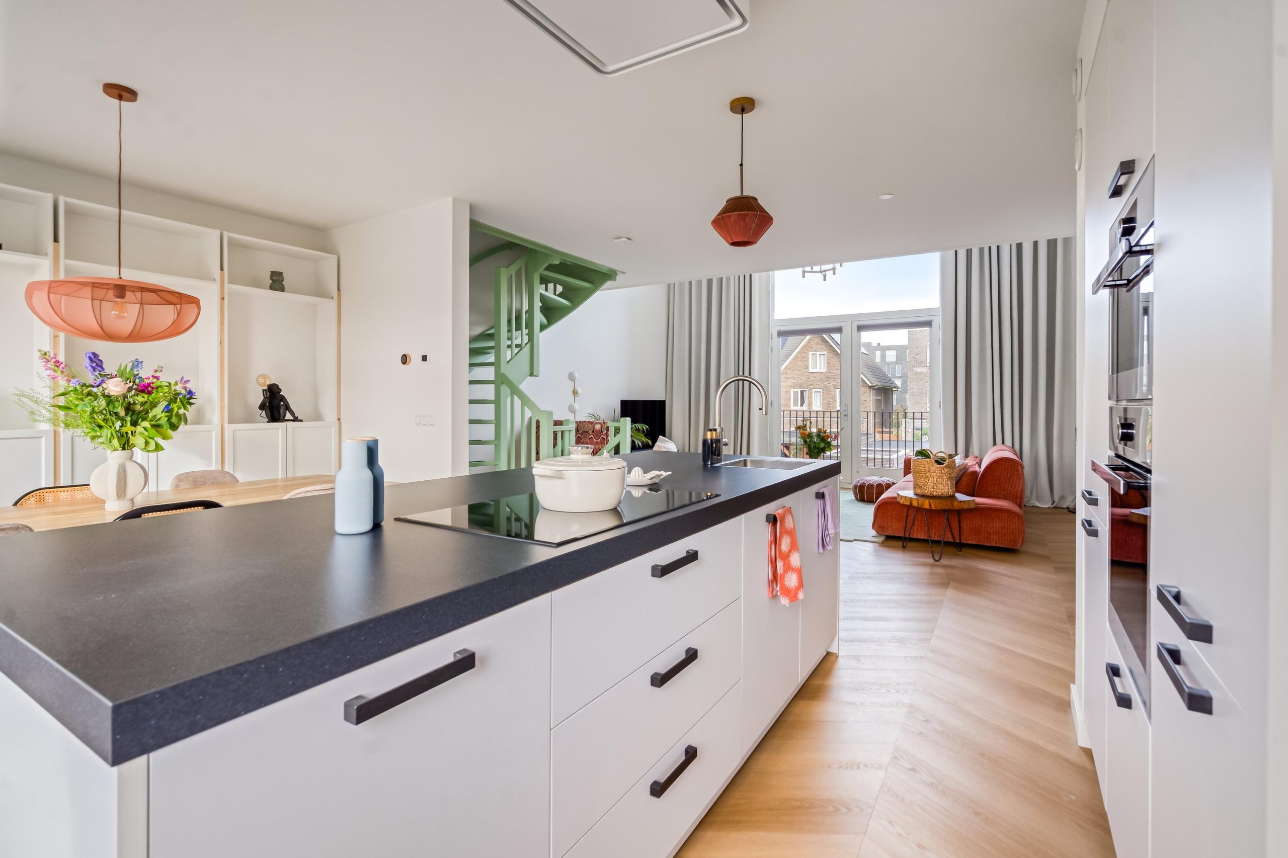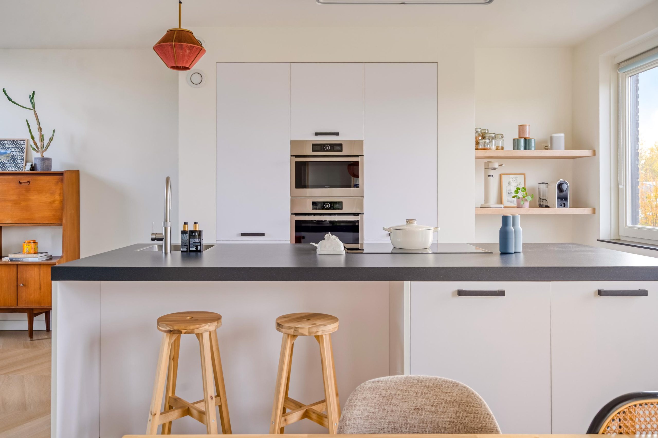 De keuken met kookeiland is ruim opgezet en is voorzien van alle inbouwapparatuur welke je van een moderne keuken mag verwachten, denk aan: koelkast met vriezer, vaatwasser, combi-oven, oven, inductie kookplaat, luxe Novy afzuigkap en een kokend waterkraan van Quooker. Aan het kookeiland heb je een bargedeelte en tevens biedt de keuken veel opbergruimte. Tevens is er nog een hoekje wat je ideaal kan inrichten als koffie corner voor de echte barista!