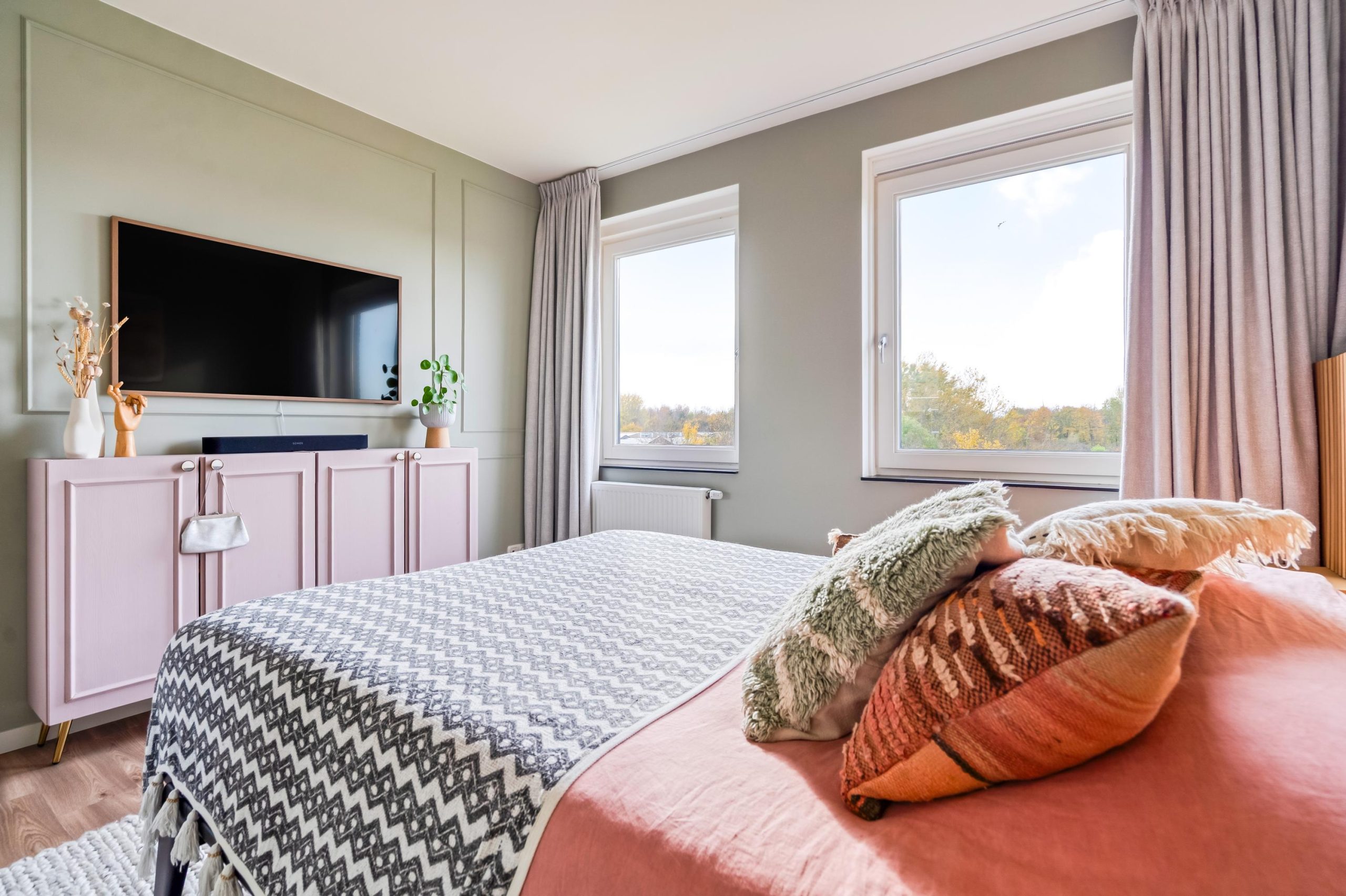 Ook hier is het natuurlijke lichtinval fantastisch. De open overloop is ruim en geeft toegang tot de slaapkamer en de badkamer. Door de "open" ruime overloop met vide heb je verbinding met de woonkamer en kun je deze ruimte ideaal indelen voor bijvoorbeeld je thuiswerkplek of gebruiken voor extra kastruimte. De slaapkamer is ruim en het is hier elke dag wakker worden met prachtig uitzicht.