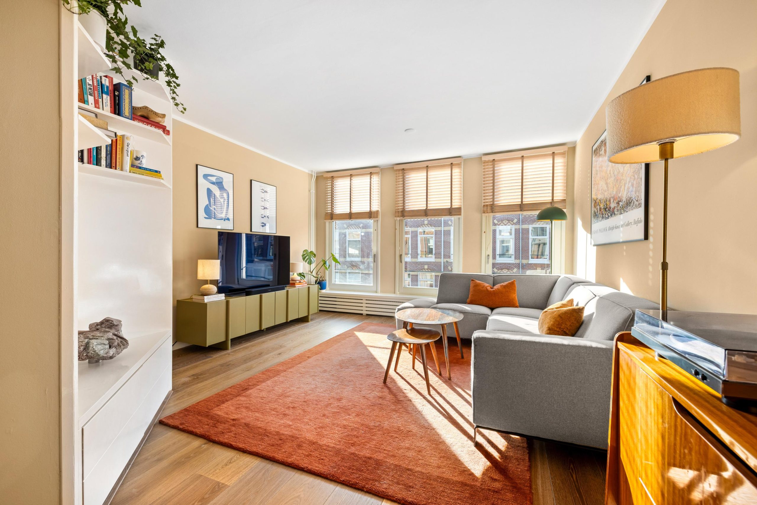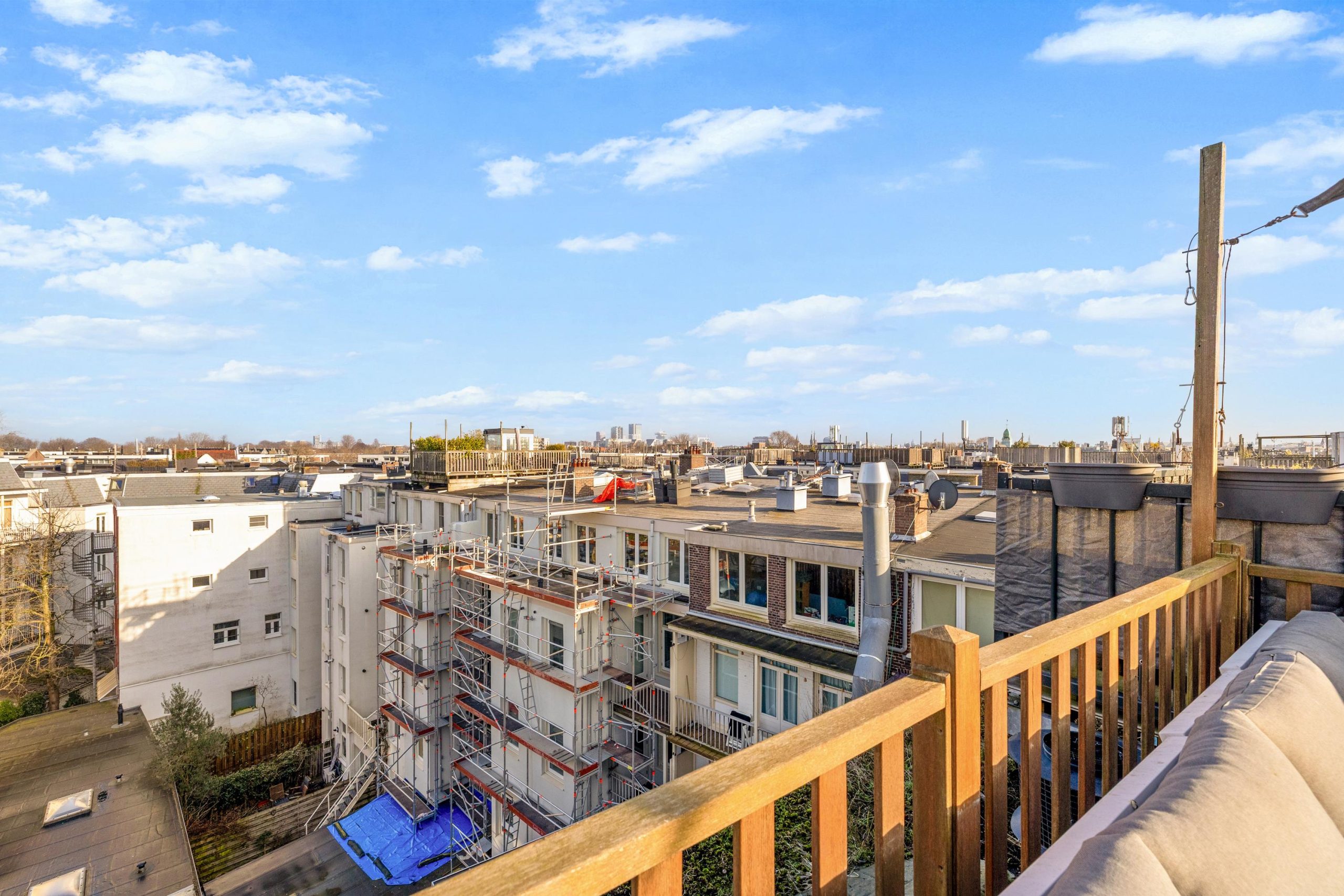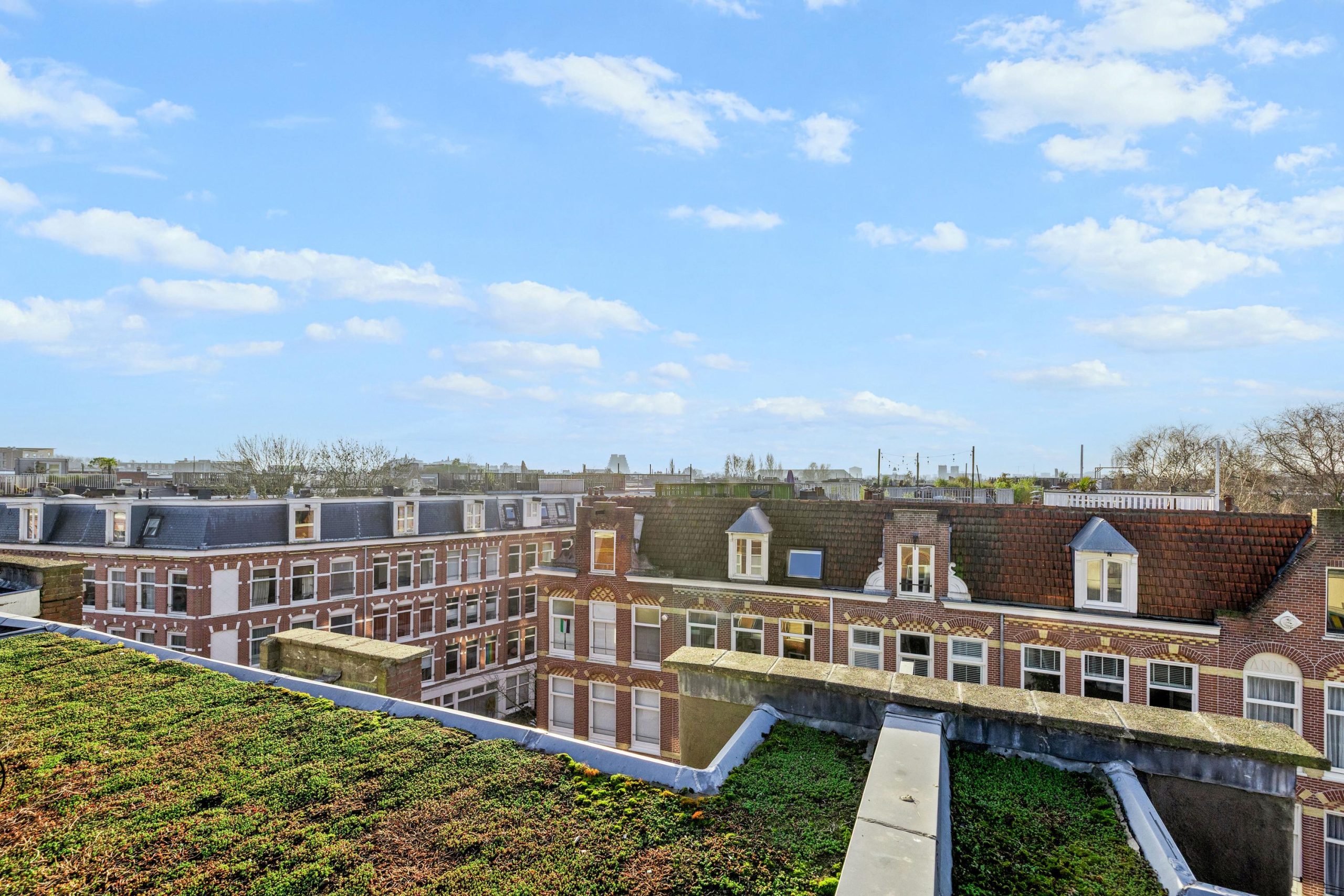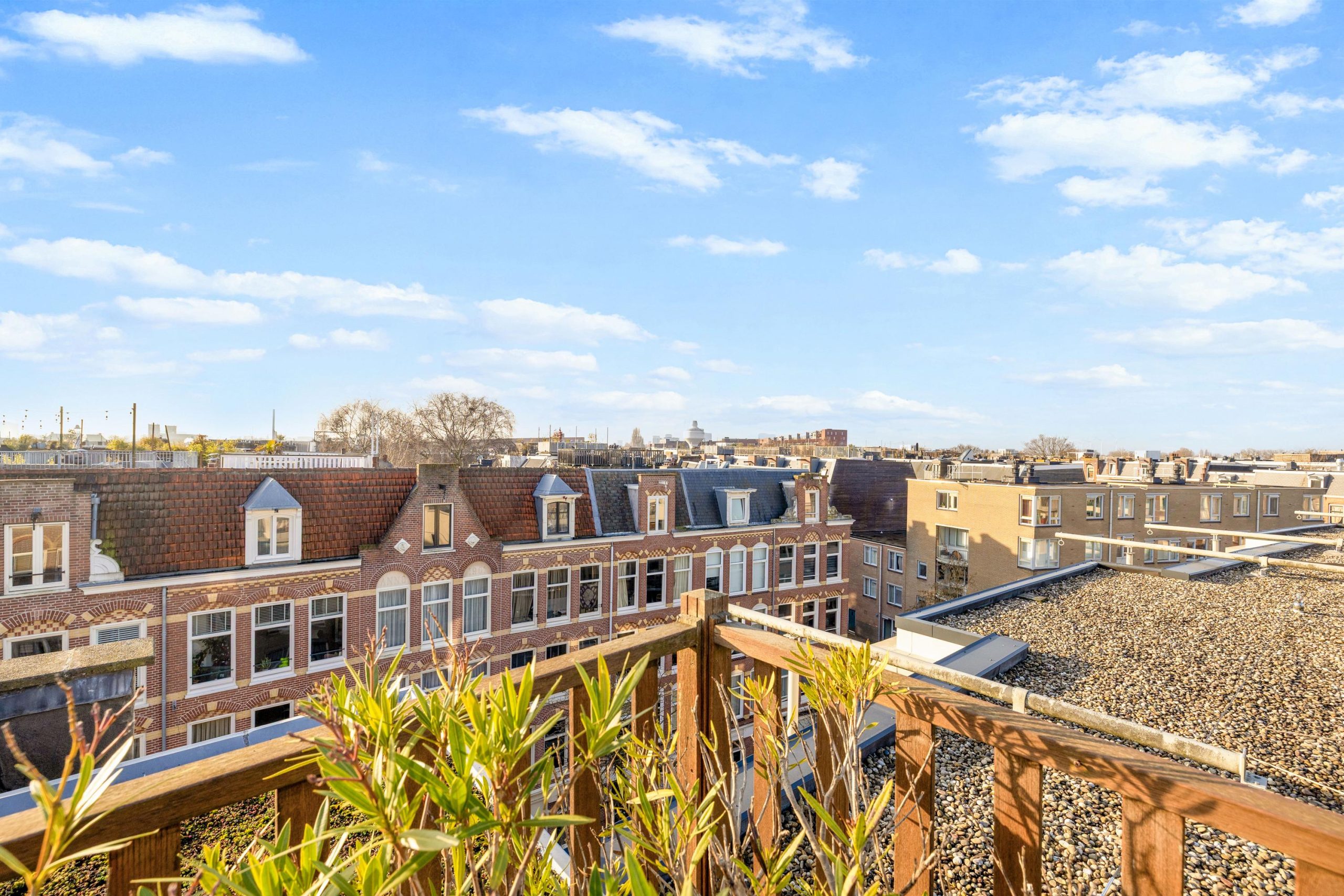 Located on own ground (no groundlease), in the heart of the popular Staatsliedenbuurt, this beautiful double upper-floor apartment is spread over the top two floors. The property has three bedrooms, a balcony, and a generous roof terrace of 30 m².
