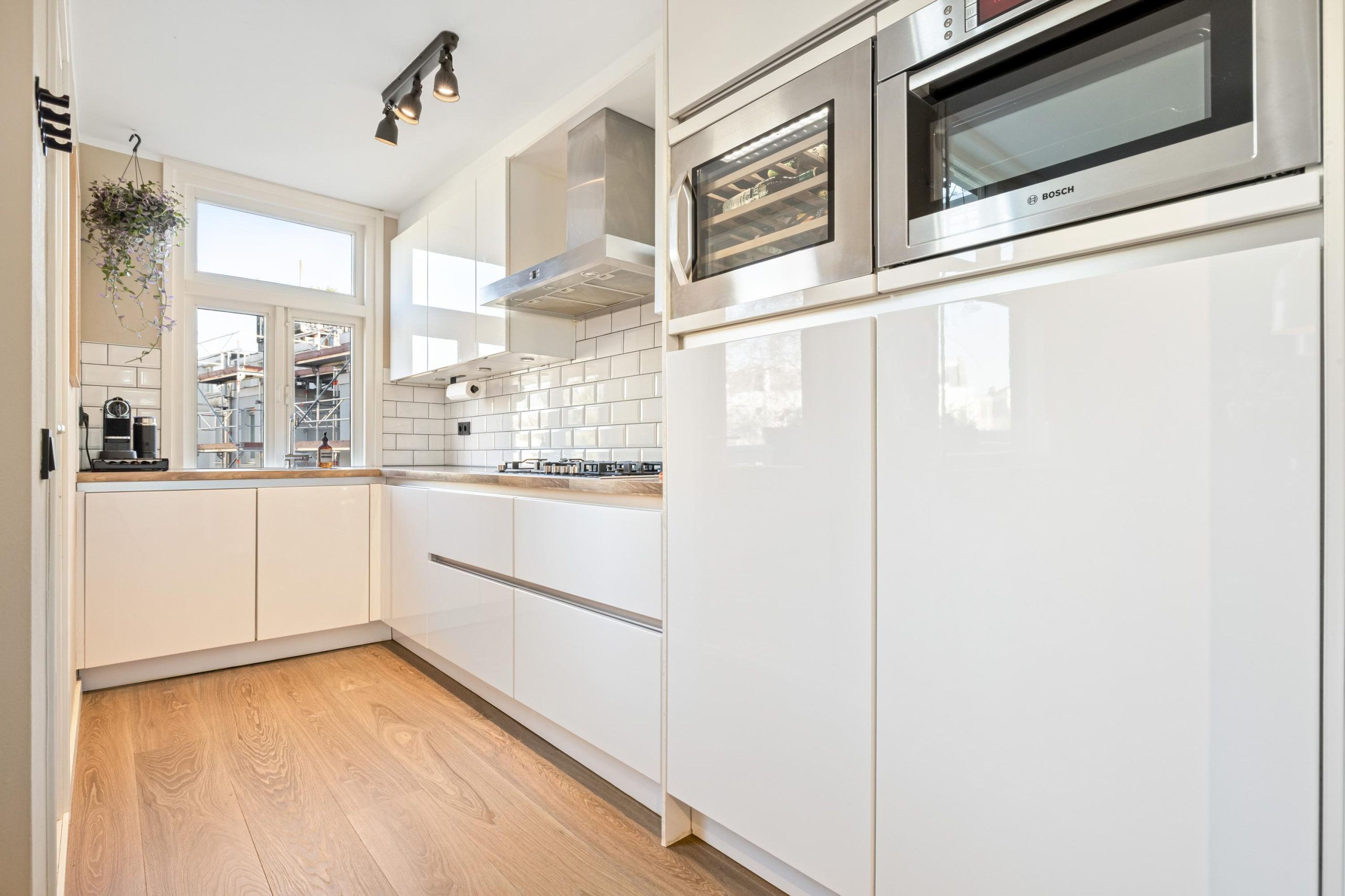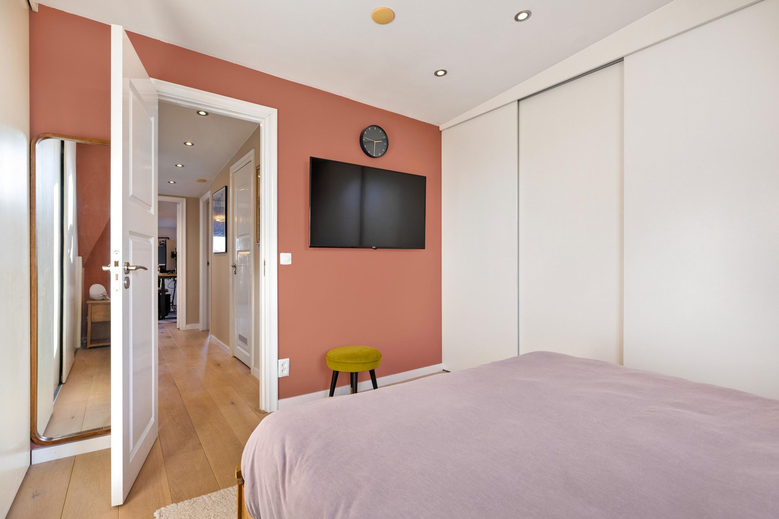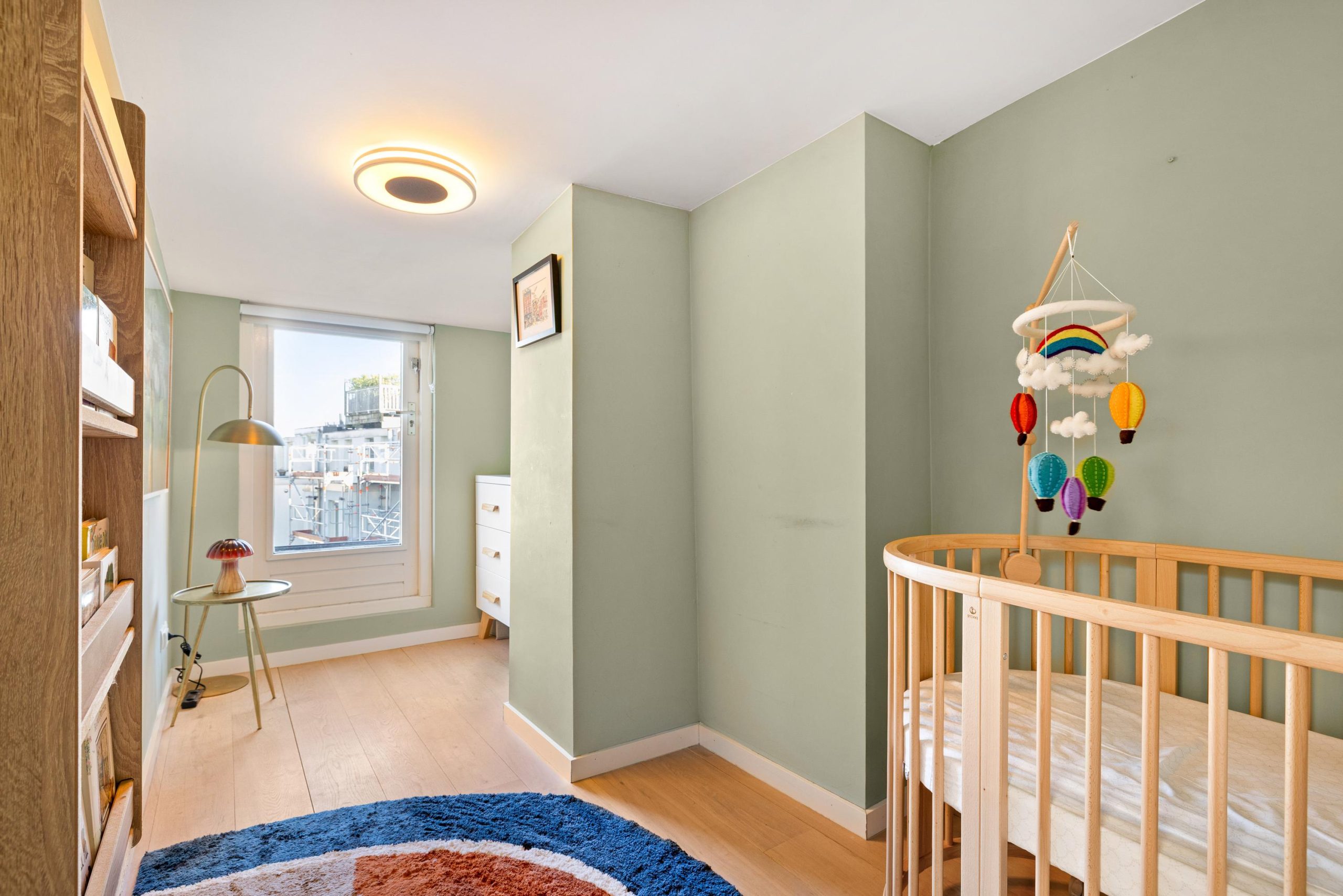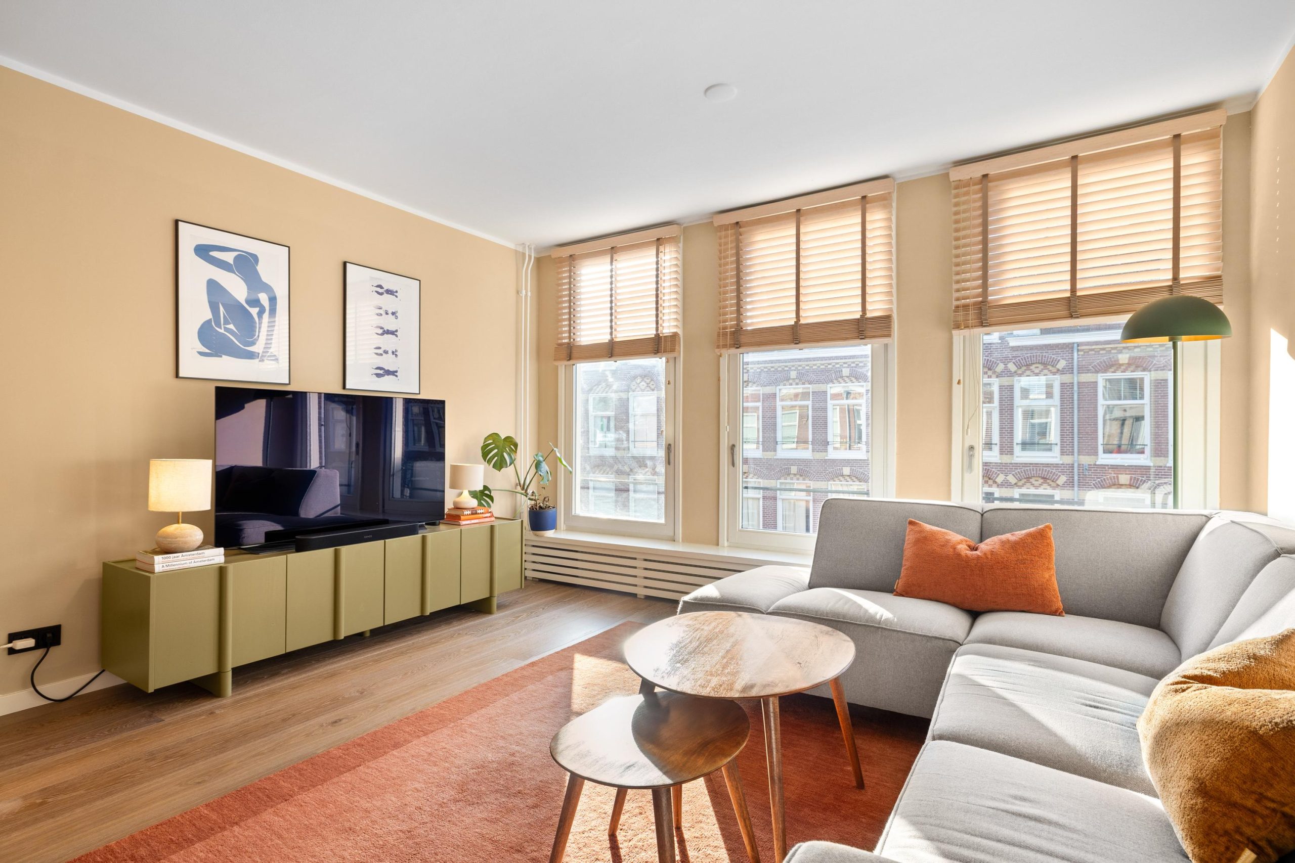 Located on own ground (no groundlease), in the heart of the popular Staatsliedenbuurt, this beautiful double upper-floor apartment is spread over the top two floors. The property has three bedrooms, a balcony, and a generous roof terrace of 30 m².