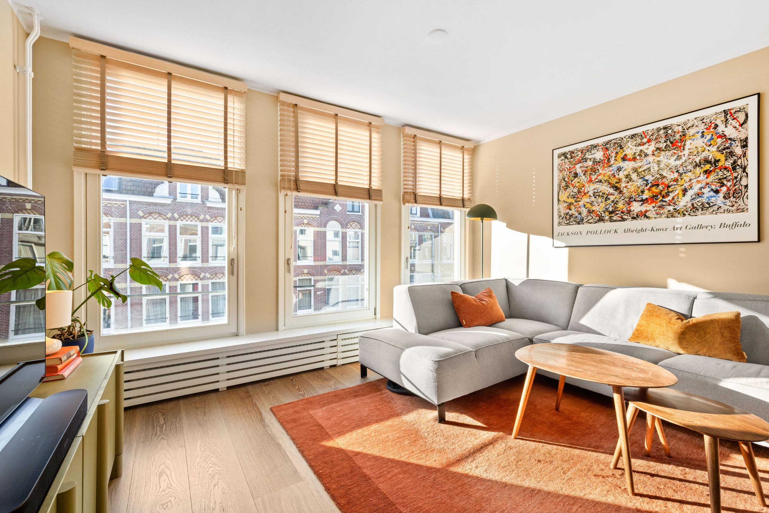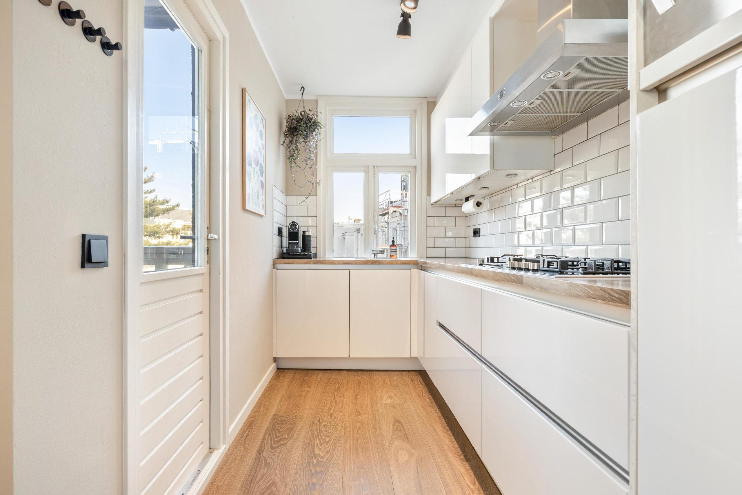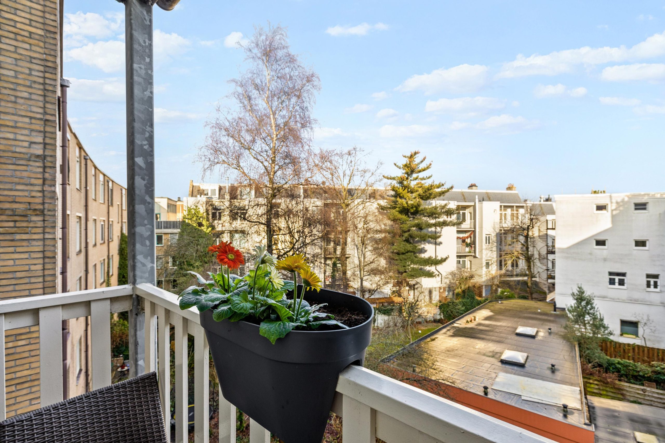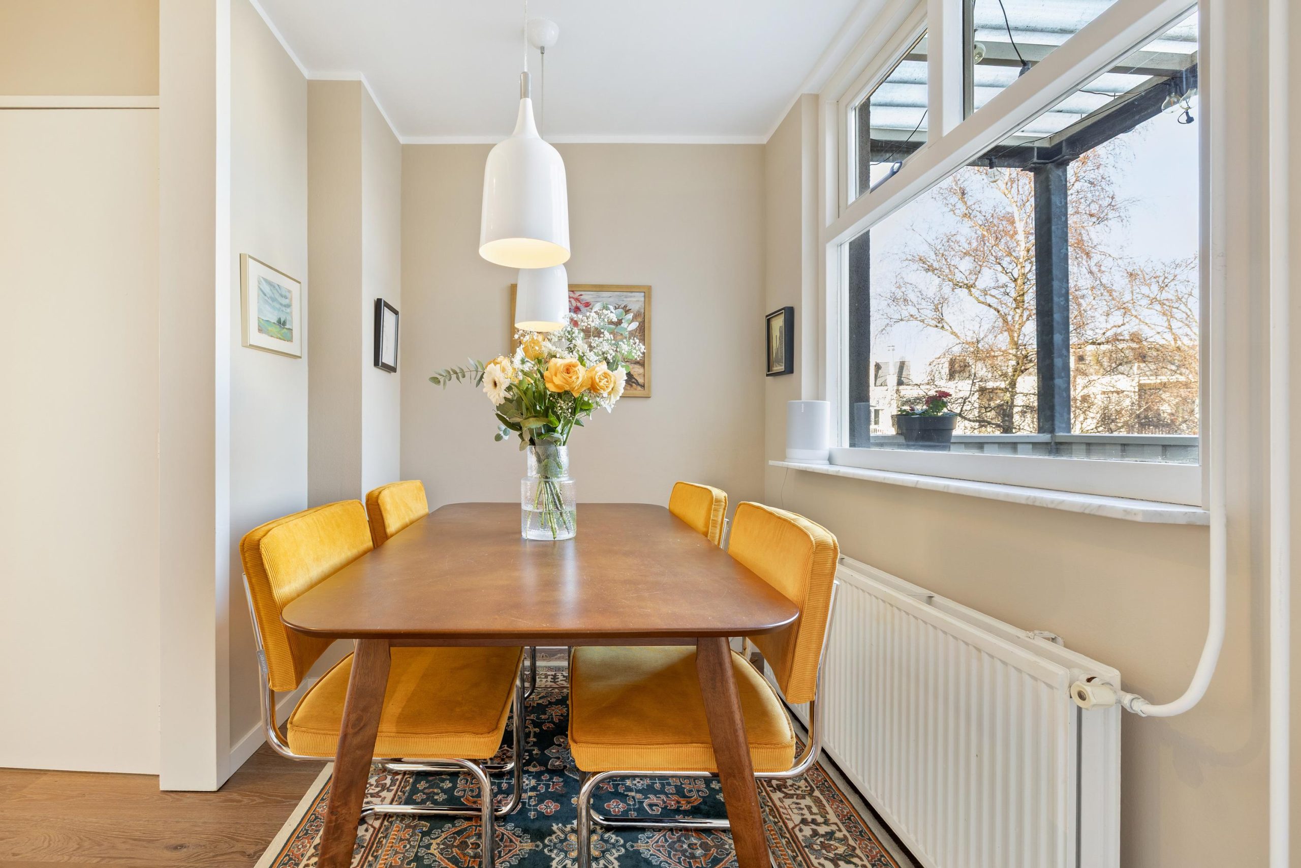 Located on own ground (no groundlease), in the heart of the popular Staatsliedenbuurt, this beautiful double upper-floor apartment is spread over the top two floors. The property has three bedrooms, a balcony, and a generous roof terrace of 30 m².